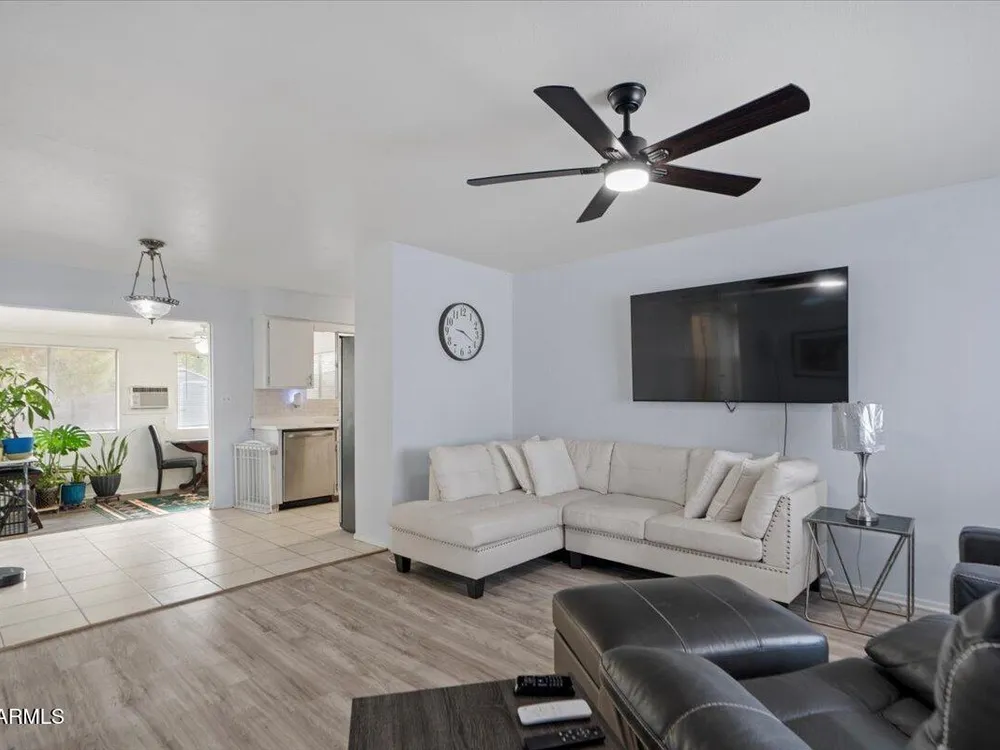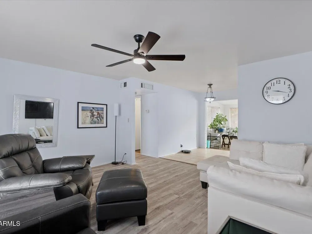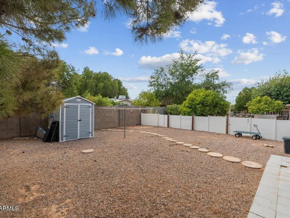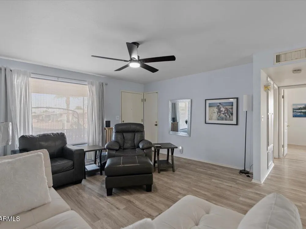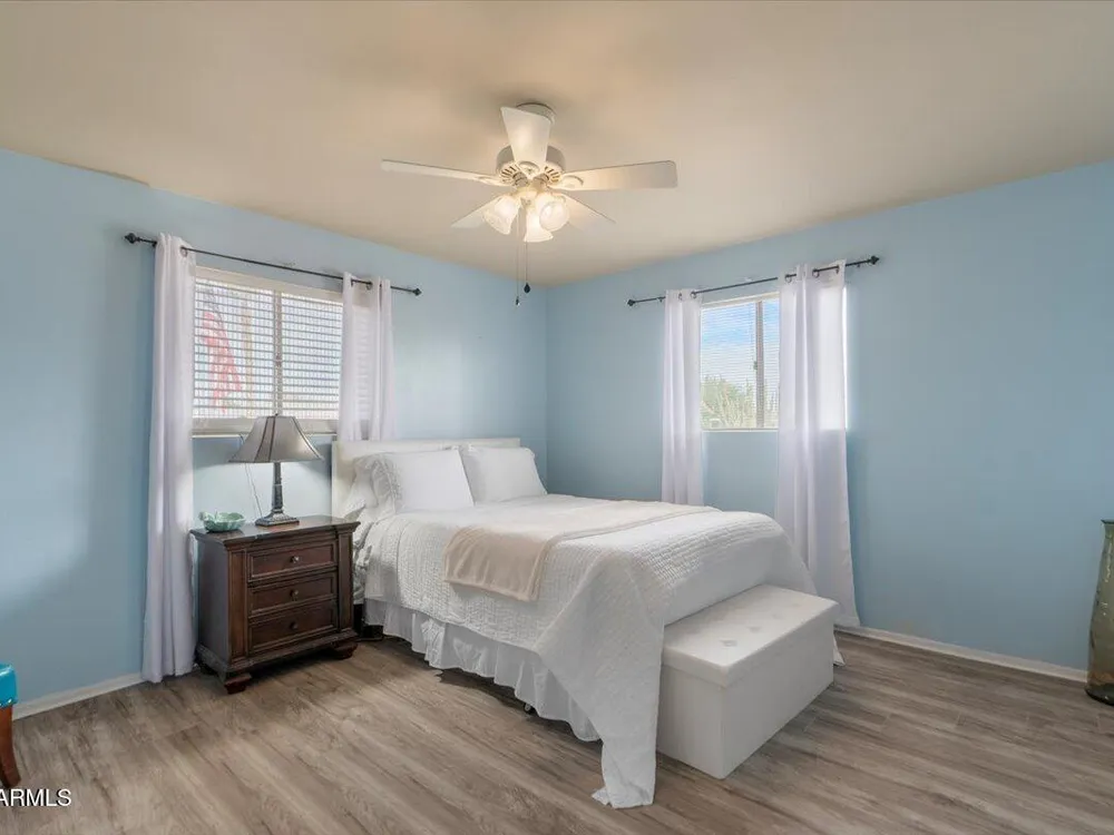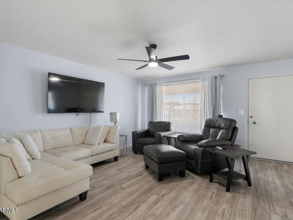 This home will wow you! Turn key home with RV hookup (both water and sewer hookup!), This home is just waiting for you to move in and enjoy the many upgrades including easy to maintain vinyl plank floors throughout most of the home, new living room fan, fresh paint, updated bathroom and kitchen with upgraded stainless steel appliances! The yard is a sanctuary with a huge pine tree providing abundant shade a bounty of gorgeous roses and flowers beckon you home. Pet friendly fencing and patio to keep your fur family safe. Enjoy the enclosed, air conditioned or easy breezy Arizona room which can be used as a third bedroom. This active adult community will keep you hopping with events, pickleball, tennis court, heated pool and spa and so much more with optional HOA.