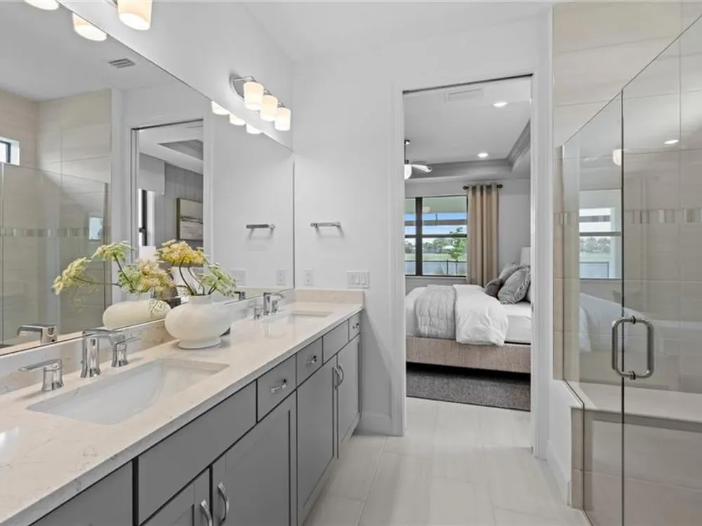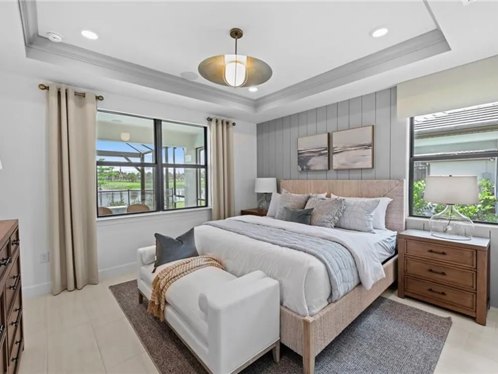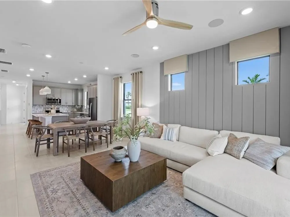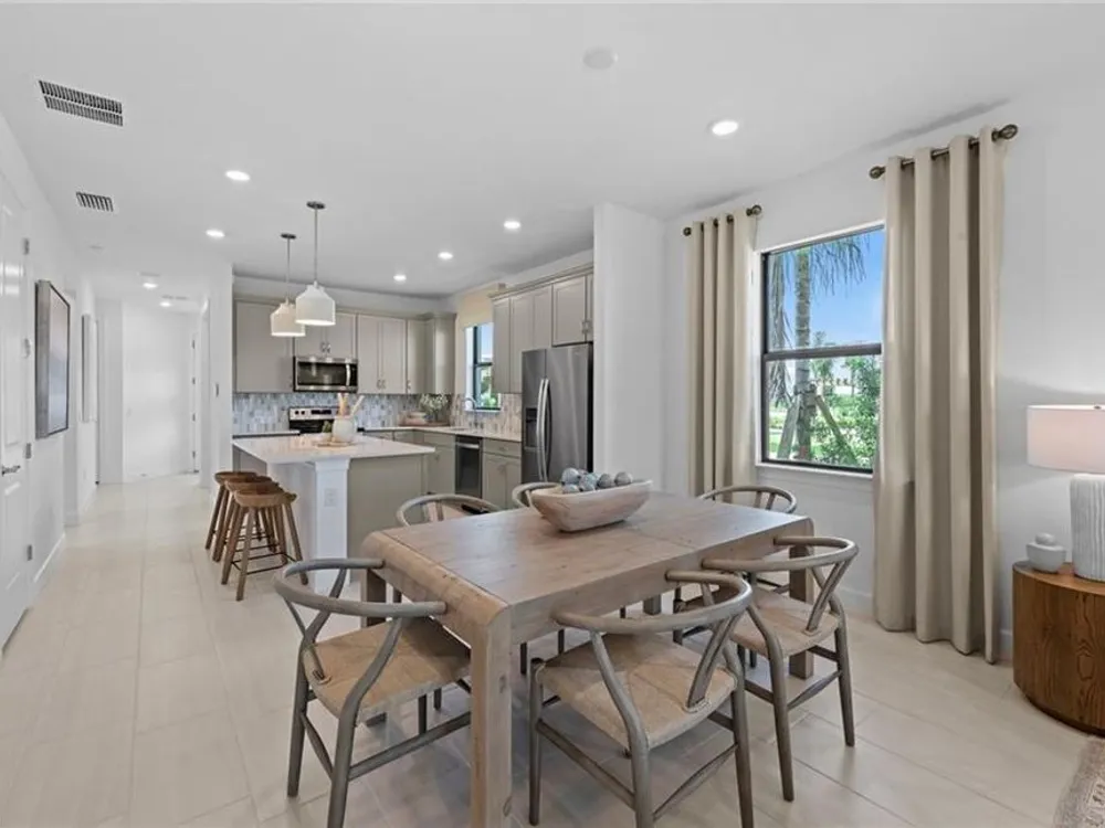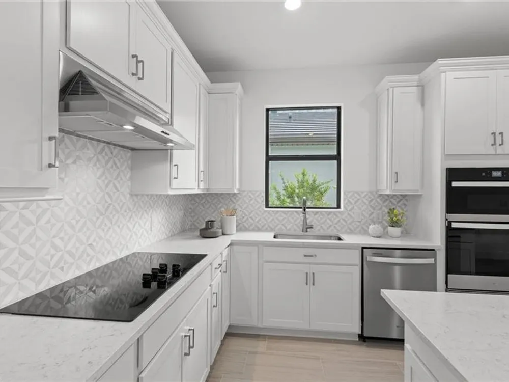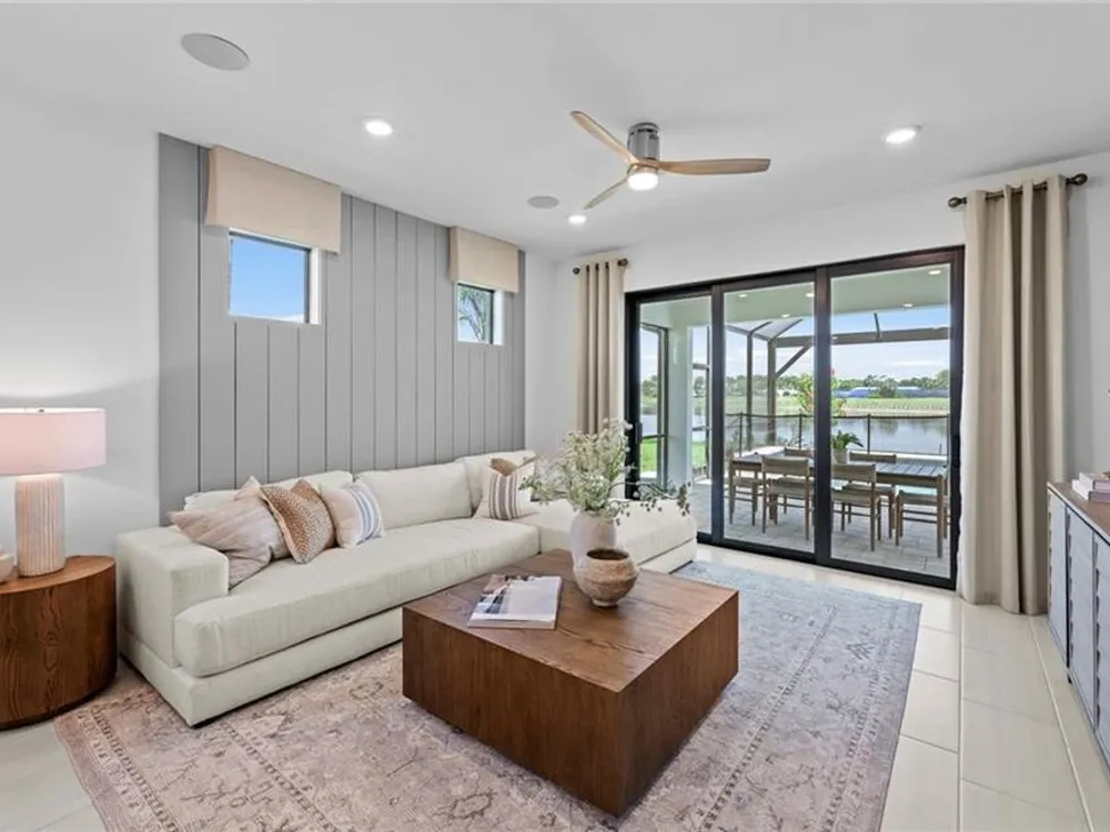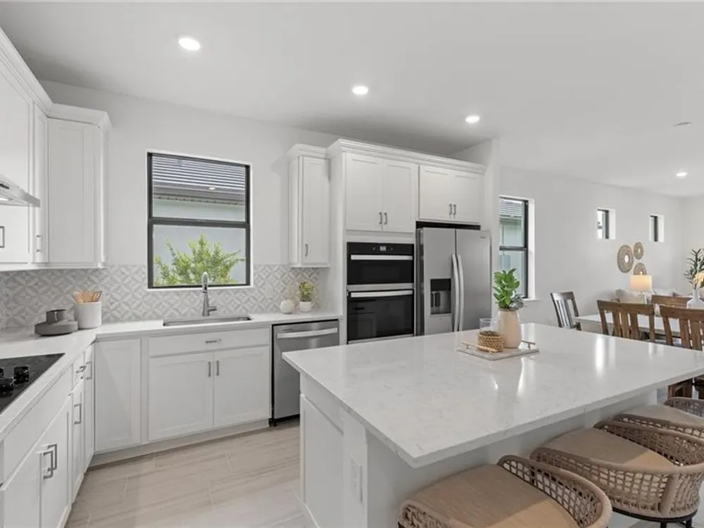 Welcome to this beautifully appointed Contour floorplan featuring 2 bedrooms, 2 bathrooms, and a versatile den, ideal for a home office or guest space. Designed with comfort and style in mind, this home showcases white cabinetry with quartz countertops, built-in kitchen appliances, and elegant 12" x 24" tile flooring throughout. Every detail has been thoughtfully considered, including 8' interior doors, 5" baseboards, and impact windows for peace of mind and energy efficiency. The laundry room features upper cabinets for extra storage, while the garage includes a utility sink, epoxy flooring, and is prepped for convenience and durability. Outdoor living is made easy with a tile roof and pre-wiring for a future pool and spa, creating the perfect opportunity to design your own backyard retreat. This move-in-ready home blends modern finishes with practical upgrades, offering comfort, quality, and low-maintenance living at its best. Located in Del Webb Naples, a premier 55+ resort-style community, residents enjoy access to over 30,000 square feet of amenity space across two stunning clubhouses: The Oasis Club and Grand Hall. The community is home to an 18-hole championship golf course (optional membership), two resort-style pools including an 8,000 sq. ft. beach-entry pool and a lap pool, a fitness center, movement studio, golf simulator, fire pit lounge, and The Rusty Putter Bar & Grille. Outdoor enthusiasts will love the 12 lighted pickleball courts, tennis courts, bocce ball courts, community garden, and miles of walking and biking trails. With a full calendar of events—including game nights, fitness classes, arts & crafts, and social gatherings—Del Webb Naples offers an unmatched lifestyle designed for relaxation, recreation, and connection. Live the active adult lifestyle you’ve dreamed of in a beautifully upgraded new home.