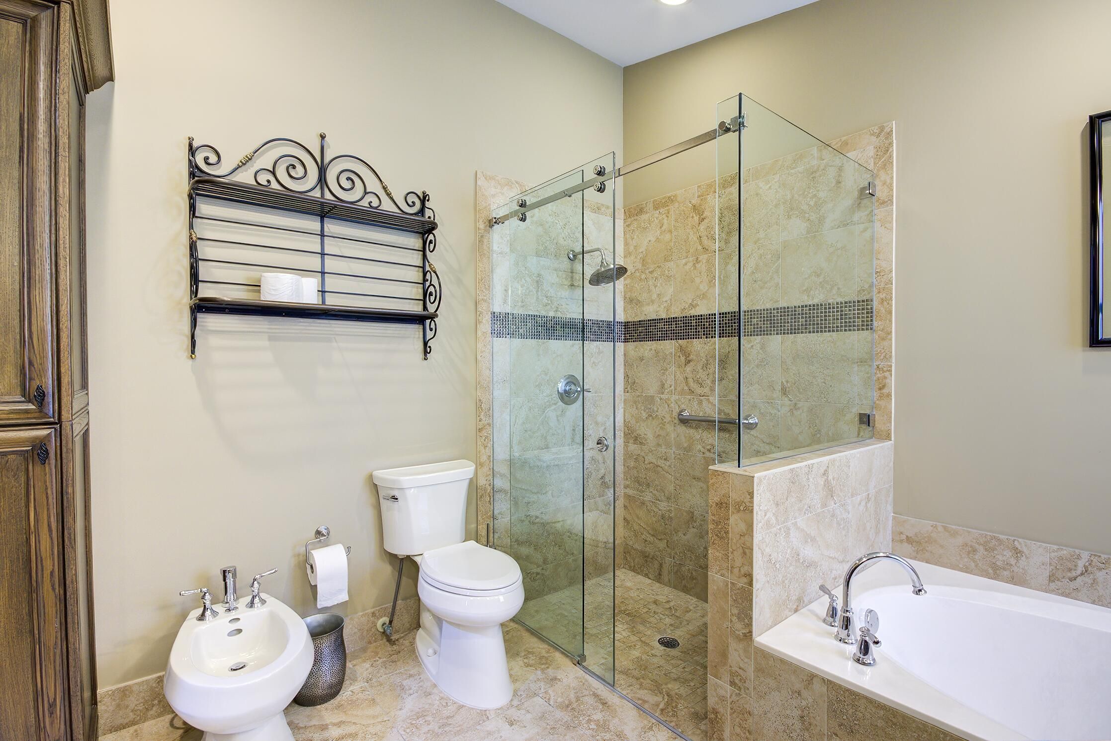- Entrance Foyer, High Ceilings, Kitchen Island, Walk-In Closet(s), Custom Mirrors, Bidet, Dual Sinks, Separate Shower, Soaking Tub