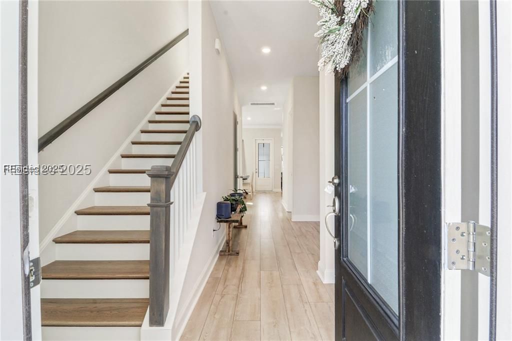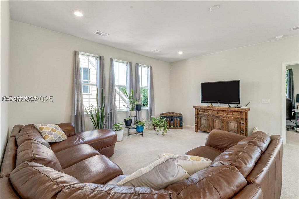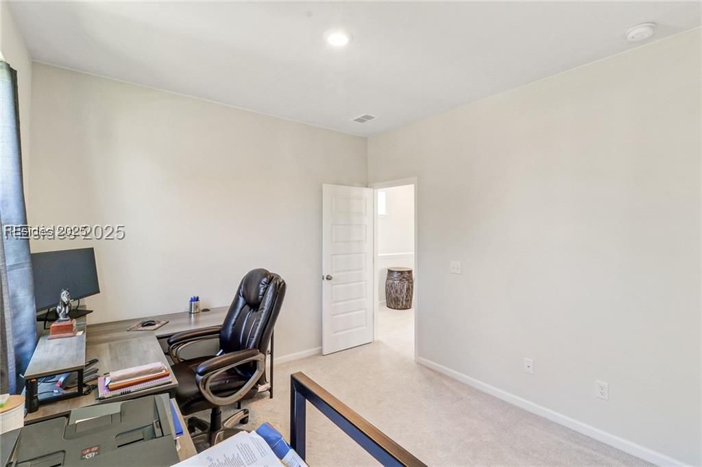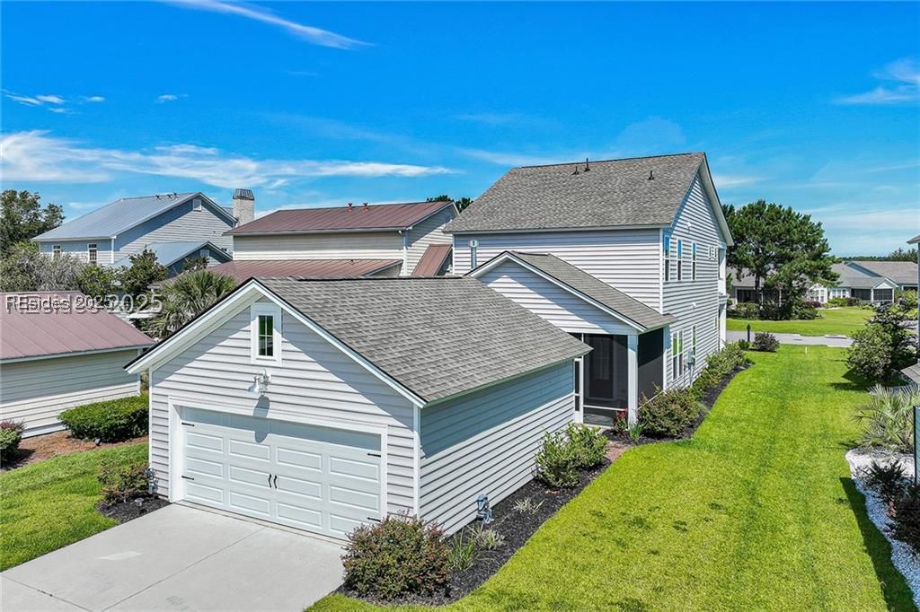 This 4BR/2.5BA home in Hilton Head Lakes offers a functional layout with the primary suite conveniently located on the main floor. The second level provides flexible living space with two additional bedrooms, a full bath, private office, bonus room, and access to a second-floor balcony. The kitchen features a gas cooktop, stainless steel appliances, and an eat-in area that opens to the family room, creating a comfortable flow for everyday living and entertaining. Luxury vinyl plank flooring runs throughout the home for low-maintenance living.Enjoy multiple indoor and outdoor living spaces, including a fireplace, screened porch, and upstairs balcony. The detached two-car garage provides additional storage and flexibility. Hilton Head Lakes offers a variety of amenities, including golf, pickleball, pool, and fitness center, and is conveniently located near Bluffton, Hilton Head, and Savannah. Move-in ready and well-maintained, this home offers both space and versatility in a growing community.
