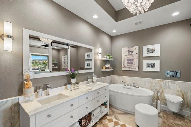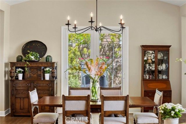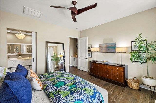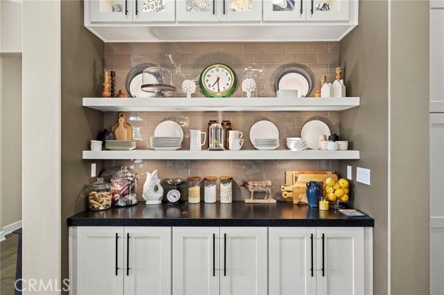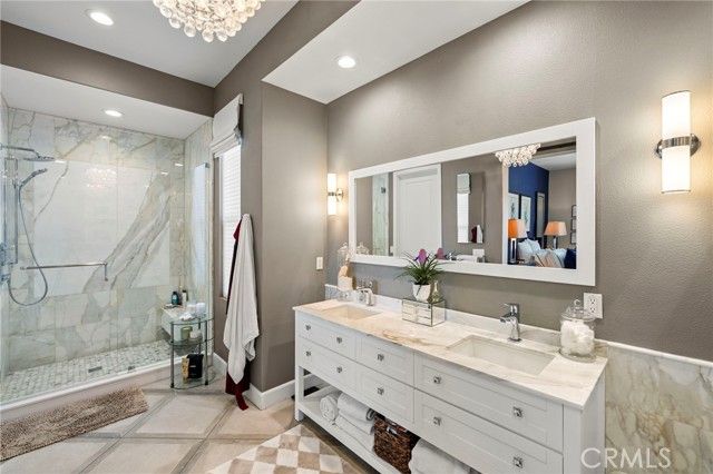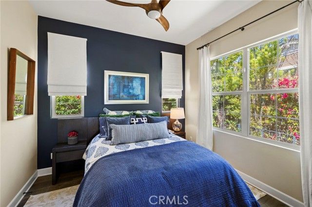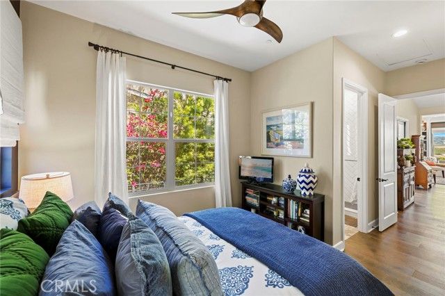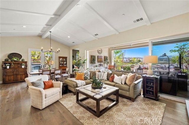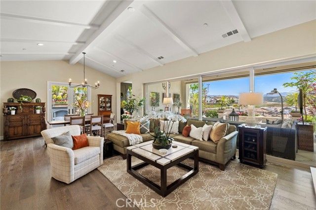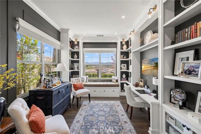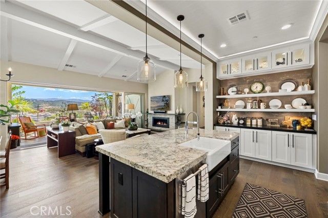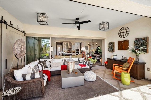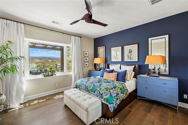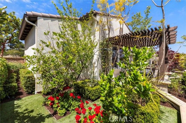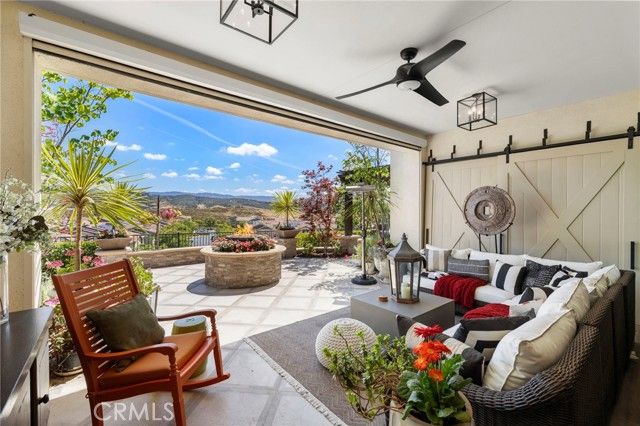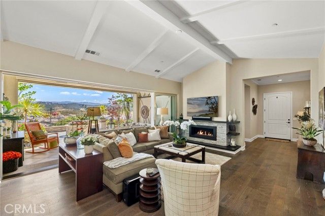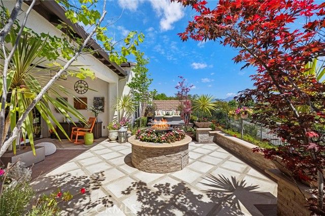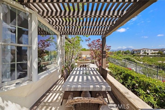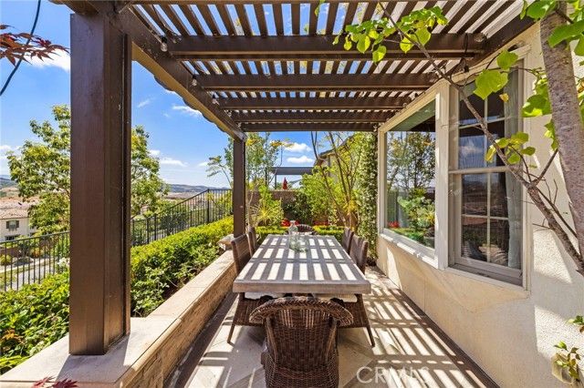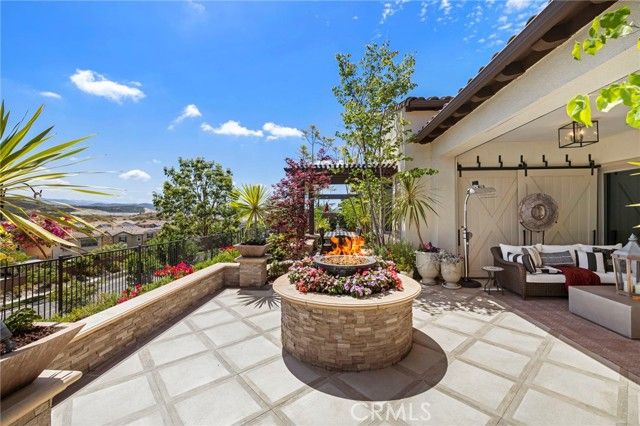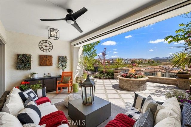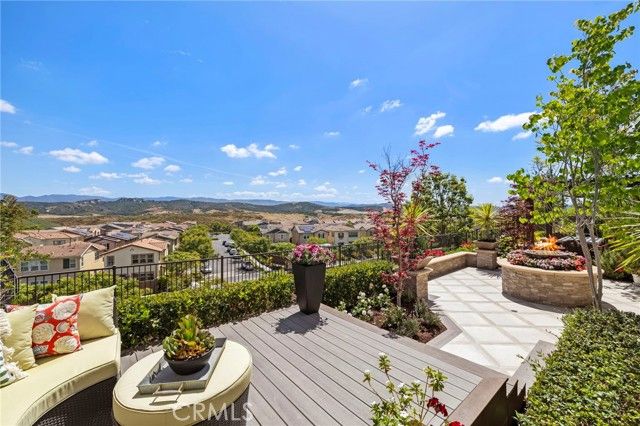 Set along the edge of the community for exceptional privacy & sweeping mountain views, this beautifully upgraded single-level residence offers a rare blend of tranquility & convenience. Just moments from the renowned amenities of Esencia, plus the added benefits of the Gavilan enclave exclusively for those active adults over 55. This home showcases model-quality finishes & thoughtful upgrades throughout. At the heart of the home, a gourmet kitchen features granite countertops with sleek tile backsplash, custom floating shelves & cove lighting, an upgraded stainless steel appliance package & a versatile laundry room with butler’s pantry functionality. Striking two-tone cabinetry & a large center island flow seamlessly into the expansive living room with cozy gas fireplace, highlighted by a vaulted wood-beamed ceiling & ample space for both everyday living & formal dining. Rich hardwood flooring extends throughout, complemented by gorgeous designer tile in the bathrooms. The primary suite offers a peaceful retreat with bay window framing the stunning view, a spacious walk-in closet with custom built-ins & a beautifully remodeled bathroom complete with frameless glass shower with marble inset & dual shower heads, double vanity sinks, chandelier & luxurious soaking tub. On the opposite side of the house is the secondary bedroom or dual master also with walk-in closet & remodeled ensuite bathroom. A flexible bonus room, currently styled as an office or den, features custom built-ins & opens to the main living area, enhancing the home’s open-concept feel. Step outside through expansive sliding glass panels to a beautifully curated entertainer’s backyard designed for effortless indoor-outdoor living year-round. A serene California room invites you to unwind while taking in picturesque views, enhanced by a sun-drenched deck, trellis-covered dining area perfect for al fresco gatherings & a charming garden that adds warmth & character to this private outdoor retreat. Two-car attached garage with direct access, built-in storage & epoxy flooring. Residents enjoy an elevated 55+ lifestyle with access to Gavilan’s resort-style amenities, including a clubhouse with a staffed bar, outdoor kitchen & BBQ area, picnic spaces overlooking bocce ball courts, a fully equipped fitness center, yoga studio & a saltwater pool & spa. Ideally located near scenic hiking trails, tennis, pickle ball, golf, shopping & just a short bike ride to the historic charm of San Juan Capistrano.