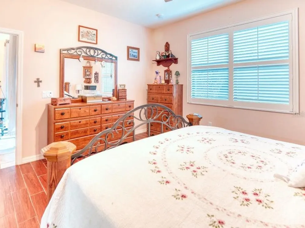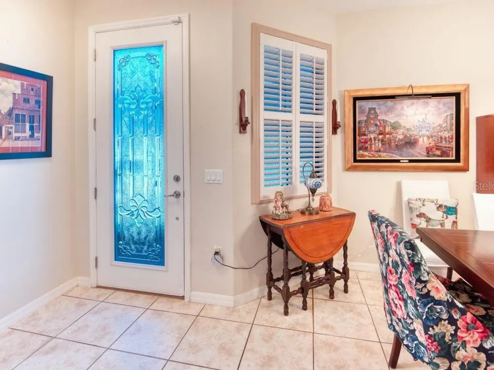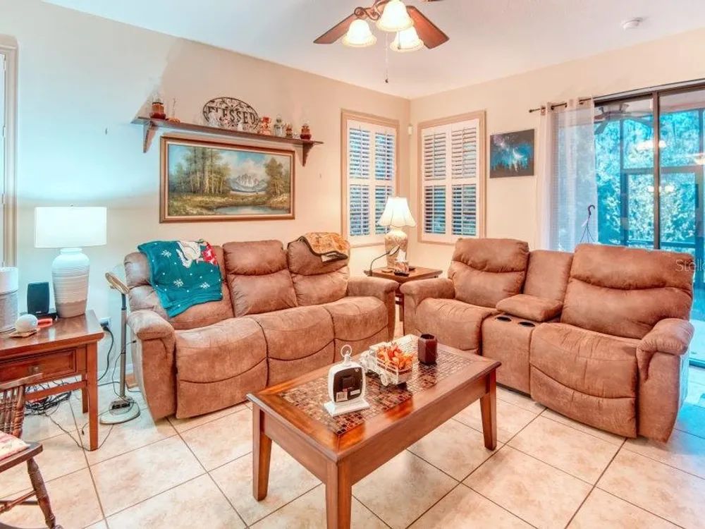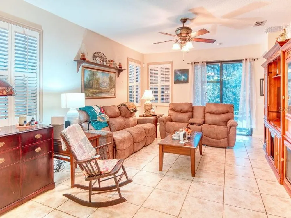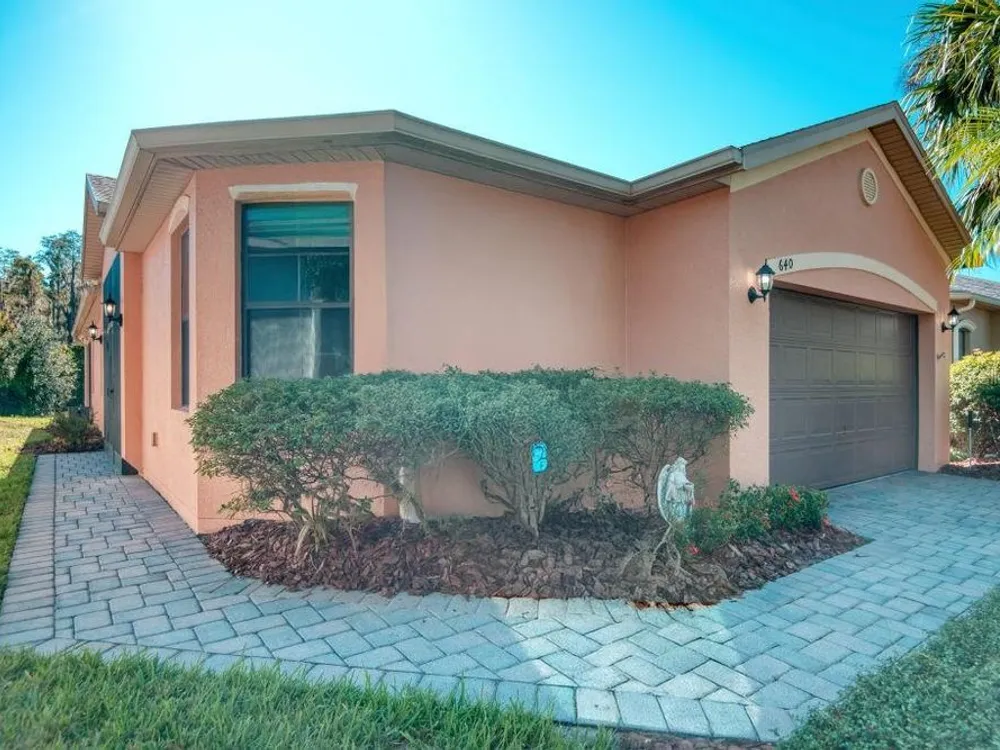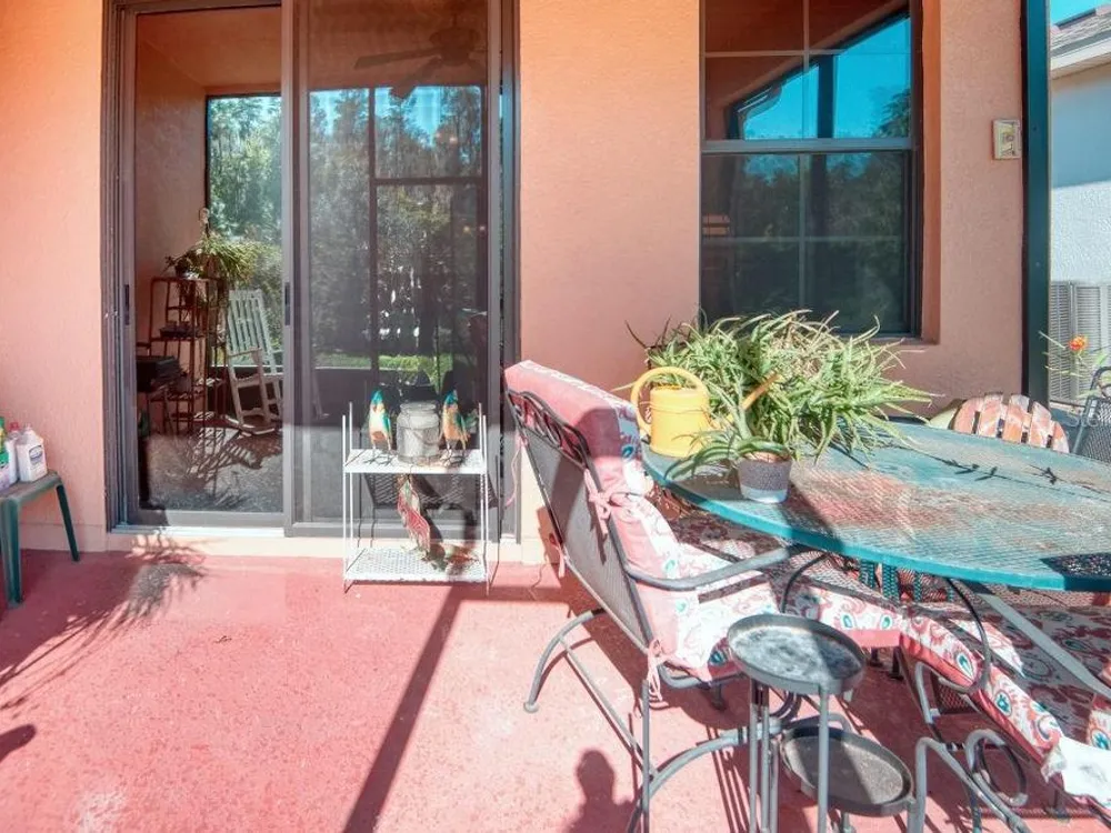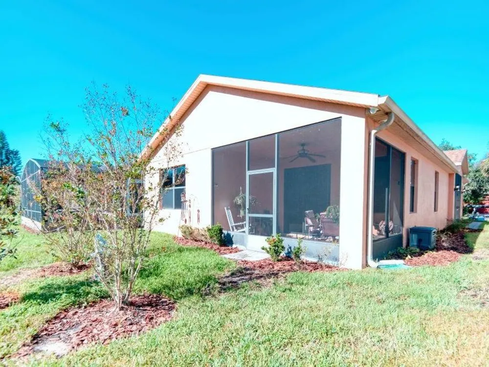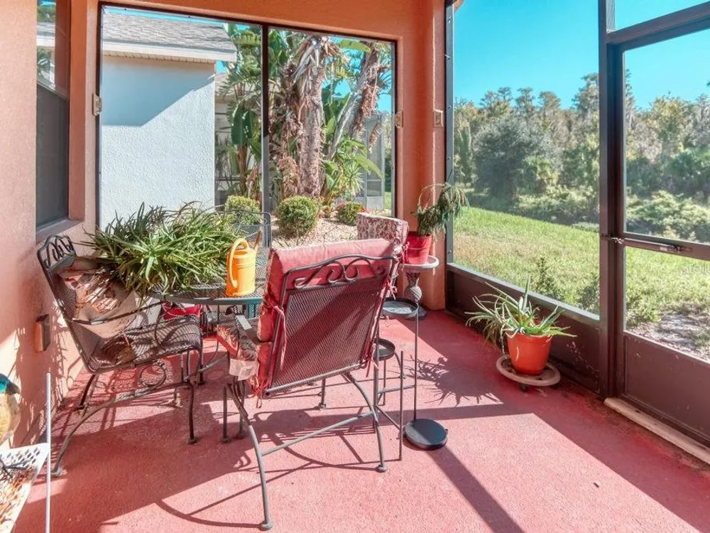Welcome Home! This beautifully maintained Hemingway model 2-bedroom, 2-bath home with a den/study offers comfort, privacy, and modern upgrades throughout—nestled on a serene conservation lot for peaceful views. Enjoy low electric bills with paid-off solar panels and NO carpet—tile flooring throughout and porcelain plank flooring in the primary bedroom. Plantation shutters provide privacy and elegance, while tinted windows help keep the home cool and efficient. The kitchen features granite countertops and a stunning backsplash installed in April 2025. The laundry room offers new cabinets for added storage and functionality. Step through the glass front door into a screened vestibule, and relax on the covered lanai overlooking the tranquil conservation view. Exterior upgrades include gutters, enhanced outdoor lighting, and a professionally maintained landscape. Additional features include a fully installed ADT alarm system with cameras, offering peace of mind and security.This home truly stands out with thoughtful upgrades and attention to detail—ready for you to move in and enjoy! nce and aerobics studios, a business center, 14 heated swimming pools, 2 heated spas, tennis courts, pickleball courts, shuffleboard, bocce ball, billiards room, art gallery, 3 restaurants and 2 championship 18-hole golf courses, driving range and putting course. Every day offers something new to explore and enjoy! This home also features easy access to nearby shops,as well as a brand new shopping center that caters to all your needs (including Sprouts) dining, and health care, offering the perfect balance of privacy and lifestyle.