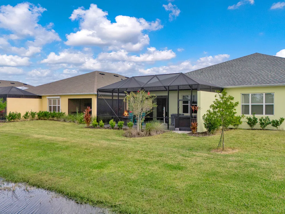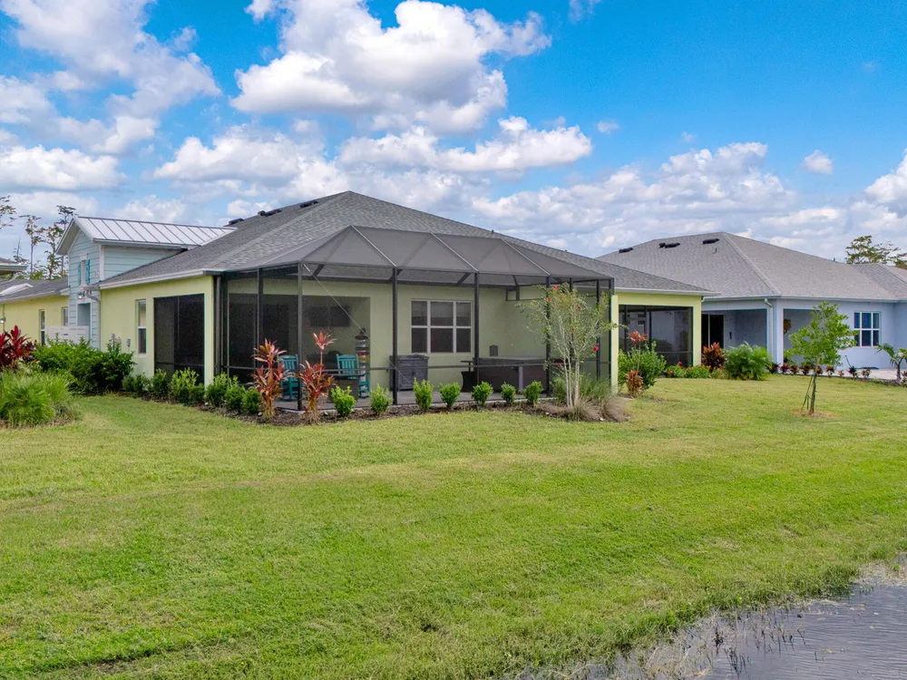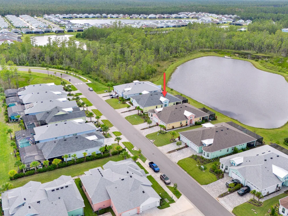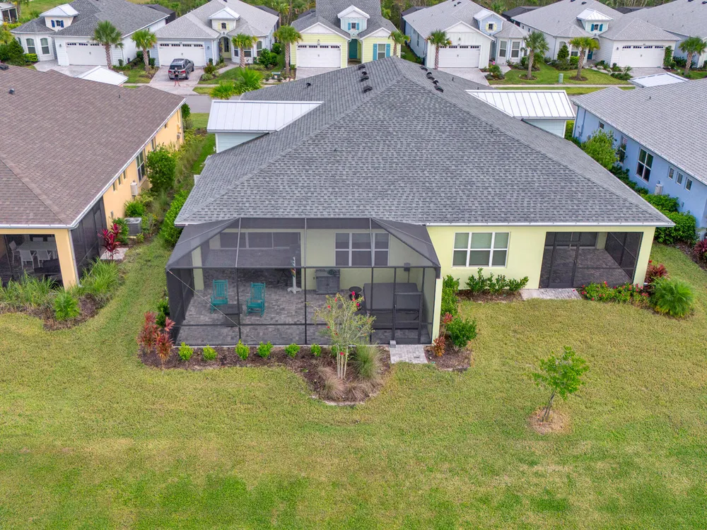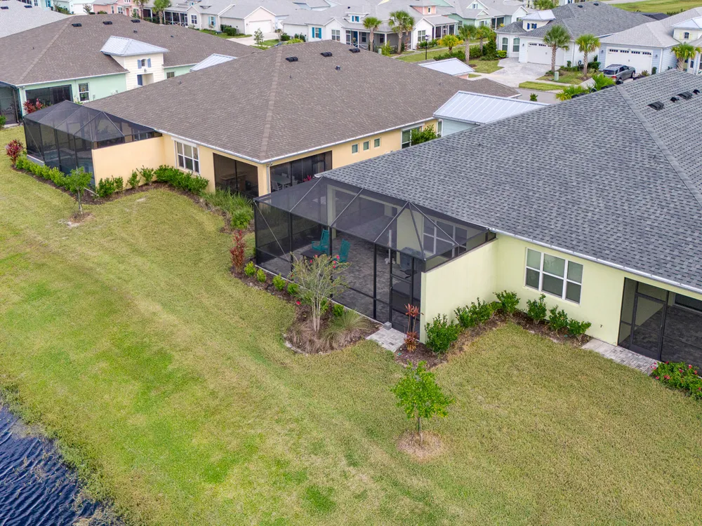 Looking for an Extended Screened Lanai with a peaceful and serene location on a Pond with trees but yet close to the action of the vibrant and fun Town Square? This Antigua Villa offers such a pretty view, you will be happy to call it home. But wait, it comes with a Hot Springs Hot Tub to enjoy the FLorida nights. Privacy screens, laminate flooring and tile throughout. 2 Bedrooms / 2 Baths with Den. Pocket door for guest area creating additional privacy. Cabinets in Laundry room, Granite countertops throughout. Overhead racks in garage with long driveway. Monthly HOA fee includes roof replacement and exterior paint reserve. When you are ready to leave your serenity, quick golf cart ride to all the action. Bar and Chill, Fitness Center, lap pool, sports pool, pickleball, tennis, bocce. That is where you also pick up the bus to the private beach club with pool and attendant that puts out chairs and umbrellas for you. Life is great at Latititude Margaritaville.
