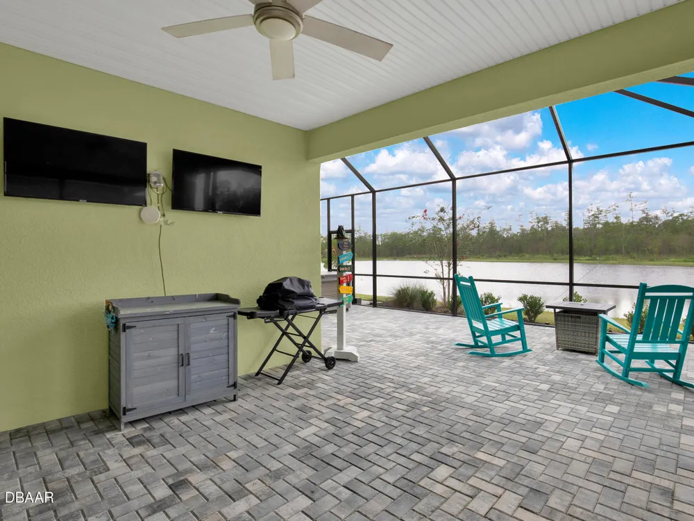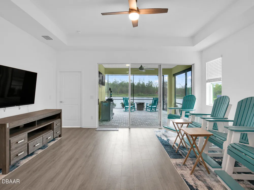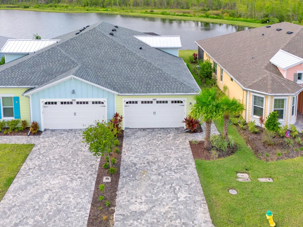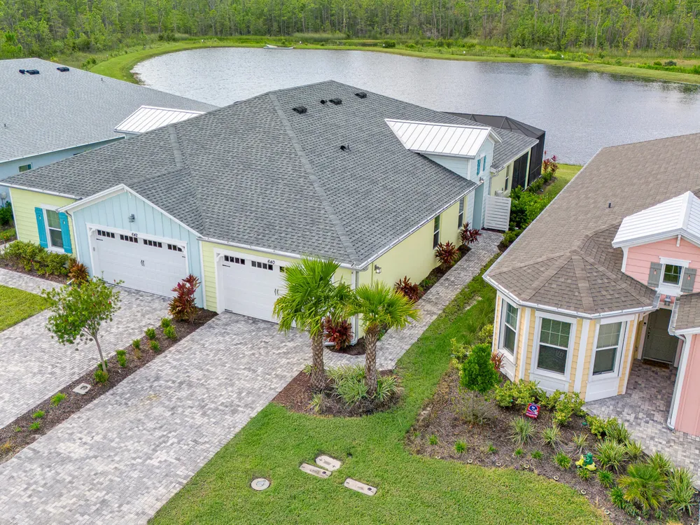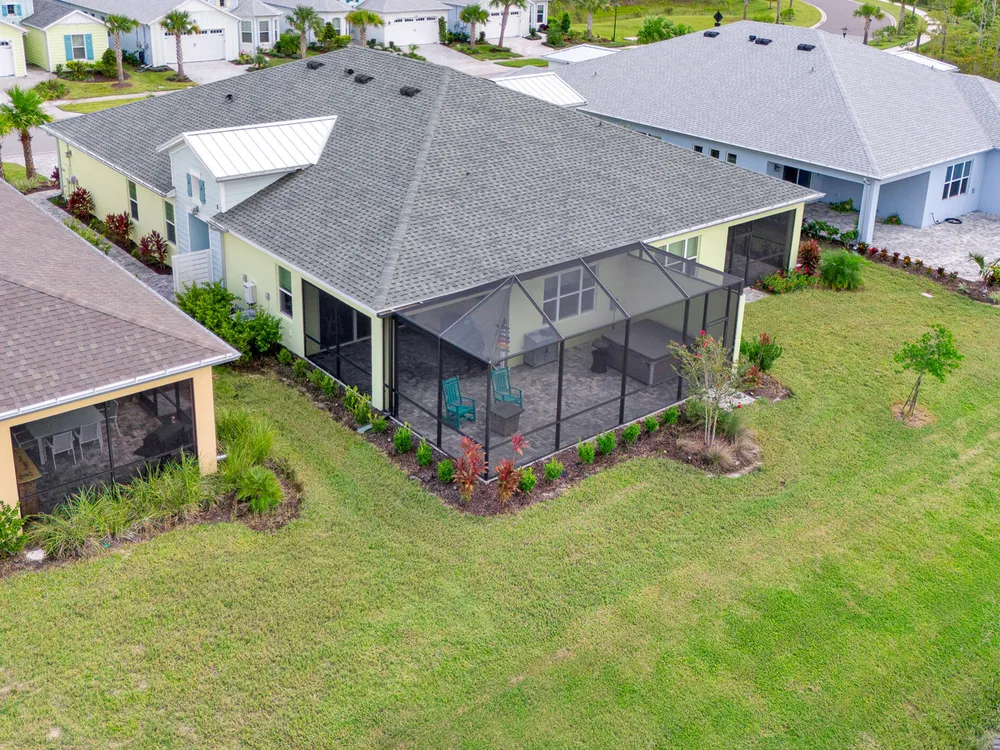 Looking for an Extended Screened Lanai with a peaceful and serene location on a Pond with trees but yet close to the action of the vibrant and fun Town Square? This Antigua Villa offers such a pretty view, you will be happy to call it home. But wait, it comes with a Hot Springs Hot Tub to enjoy the FLorida nights. Privacy screens, laminate flooring and tile throughout. 2 Bedrooms / 2 Baths with Den. Pocket door for guest area creating additional privacy. Cabinets in Laundry room, Granite countertops throughout. Overhead racks in garage with long driveway. Monthly HOA fee includes roof replacement and exterior paint reserve. When you are ready to leave your serenity, quick golf cart ride to all the action. Bar and Chill, Fitness Center, lap pool, sports pool, pickleball, tennis, bocce. That is where you also pick up the bus to the private beach club with pool and attendant that puts out chairs and umbrellas for you. Life is great at Latititude Margaritaville.