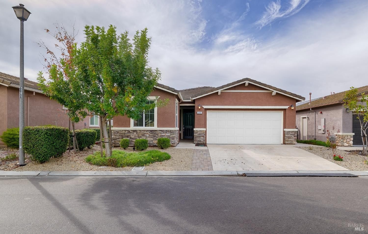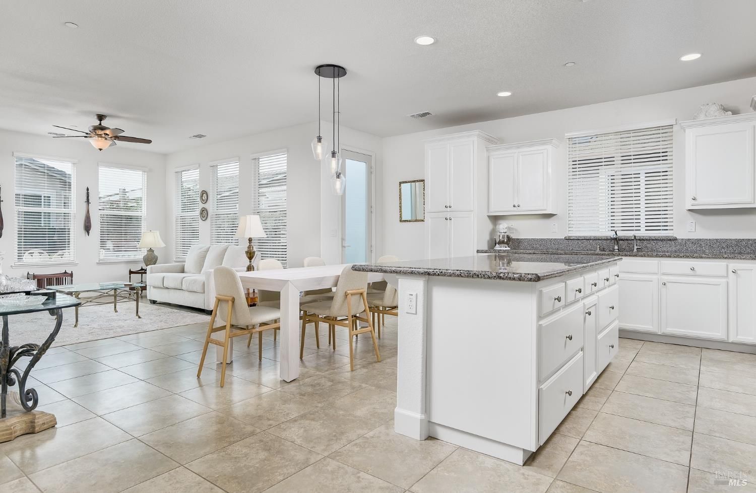 Dreaming of a White Christmas? It would look good in this nice bright Solana plan with light floor tile and a fully upgraded white kitchen! Enjoy an open kitchen to dining and living areas with lots of natural light and views of the tastefully designed rear yard. The kitchen features an abundance of upgraded cabinetry, large island for additional seating with quartz counters, stainless appliances and contemporary pendant lights finishing the look. This home has two bedrooms and two baths with a tech area/den and two car garage. You will appreciate the openness! The primary bedroom continues with a large picture bay window and ensuite bath with large closet. The yard is low maintenance with ample patio for entertaining. Washer and Dryer are included. Ceiling fans, and prepaid solar into 2035, which is a real benefit with rising energy bills. This plan has been a favorite at Trilogy at Rio Vista, a gated 55+ community with so many amenities like a restaurant and cafe, 2 clubhouses, tennis, pickle ball, indoor and outdoor pools, tech center, performance center and a newer health and wellness center and spa. The development is built around an 18-hole golf course with verdant vistas. This home is priced to sell so come see soon. HOA dues to not include golf play.