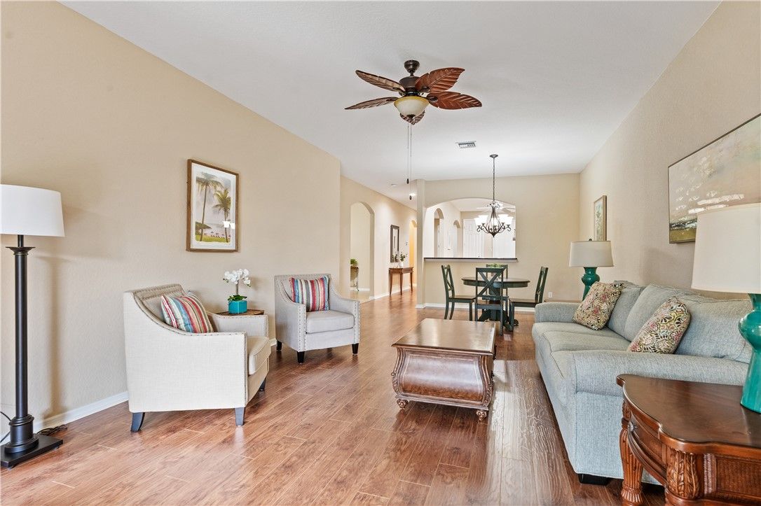 Ready to trade your "to-do" list for a "to-play" list? This 2/2 plus den is the ultimate backdrop for your next chapter. From the arched doorways & plantation shutters to the gorgeous diagonal tile & engineered wood floors, every detail screams sophistication. The kitchen shines w/granite, stainless steel, and a tubular skylight that keeps things bright. Host happy hour on your massive screened lanai or take Fido for a walk around the lakes in this pet-friendly paradise. Whether it’s tennis, billiards, or a pool day, the amenities are endless. It’s not just a home, it’s your new social club!