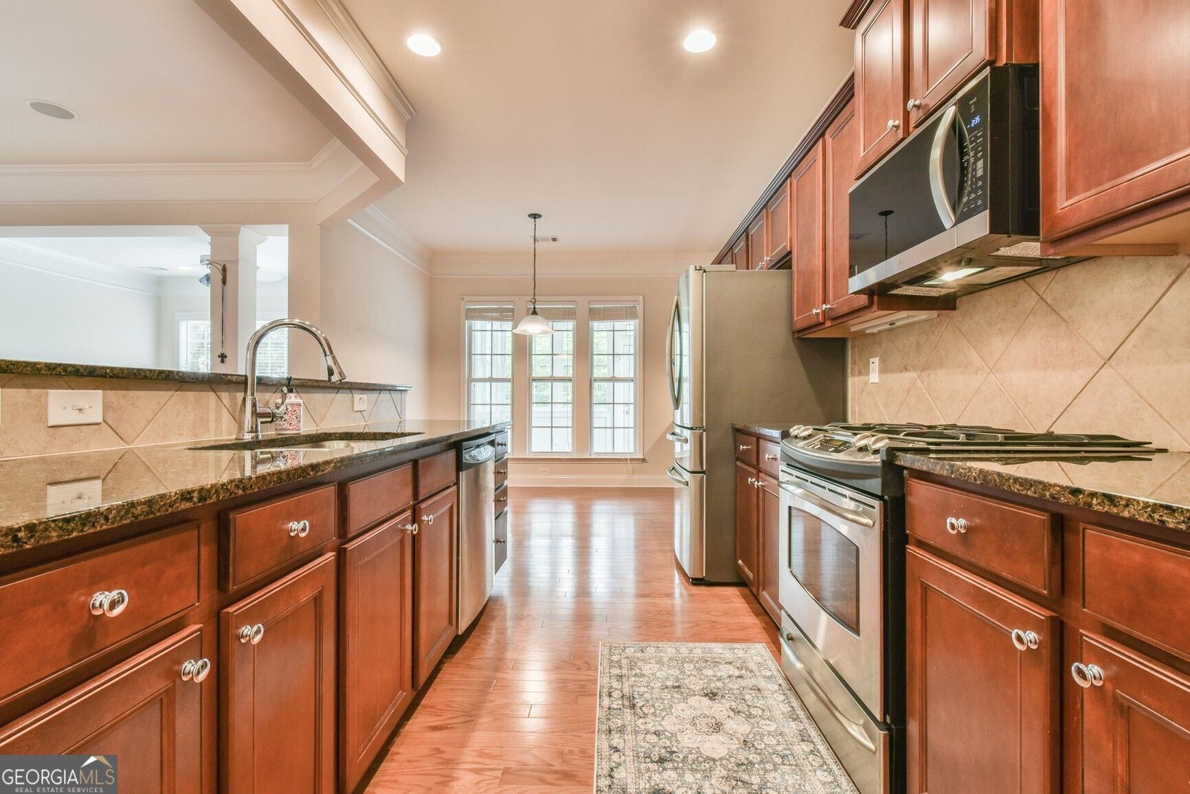 - Dishwasher, Disposal, Dryer, Microwave, Range, Refrigerator, Stainless Steel Appliance(s), Washer