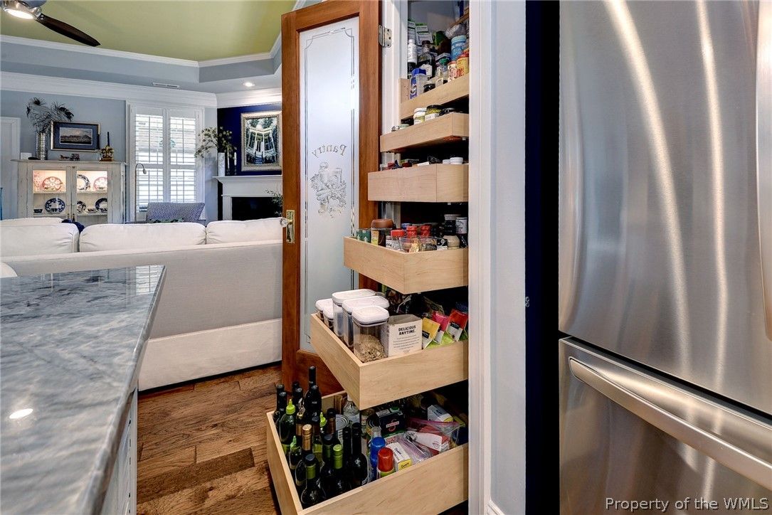 - Bookcases, Built-in Features, Tray Ceiling(s), Ceiling Fan(s), Dining Area, Double Vanity, French Door(s)/Atrium Door(s), High Ceilings, Kitchen Island, Pantry, Pull Down Attic Stairs, Recessed Lighting, Solid Surface Counters, Solar Tube(s), Walk-In Closet(s), Window Treatments, Programmable Thermostat