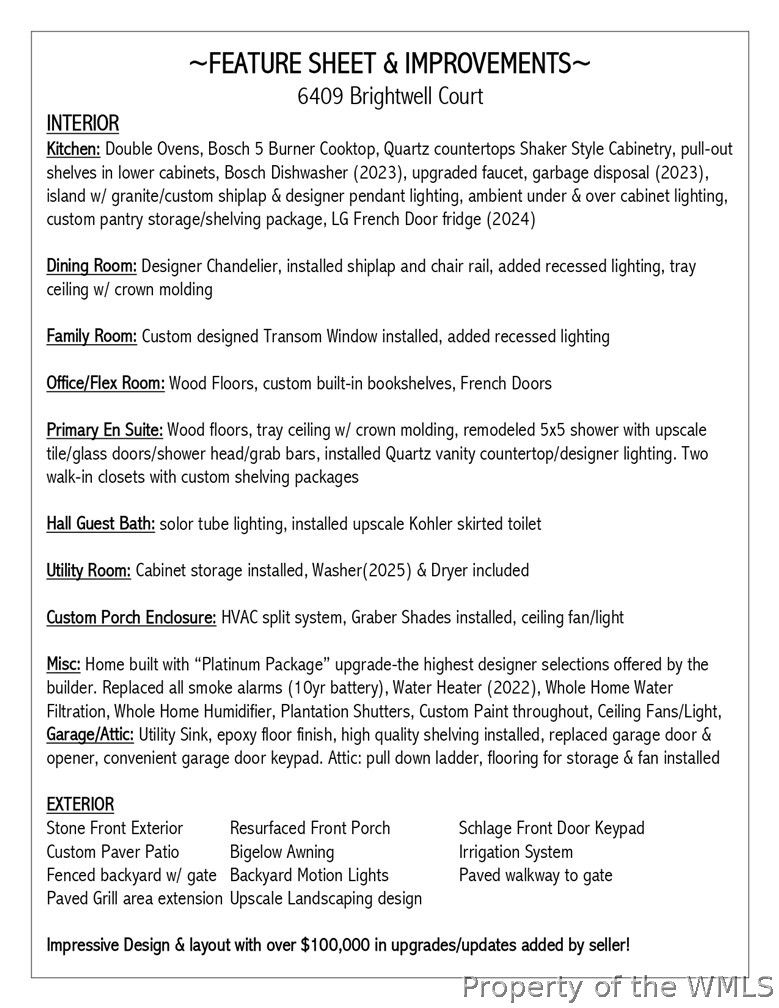 Welcome Home! Nothing can compare to this one of a kind stylishly designed Huntley Model. Inviting curb appeal & porch invites you in for a real treat. An impressive foyer showcases the convenient design- all laid out on one elegant level. The dream kitchen boasts dbl ovens, Bosch 5 burner gas cooktop, Bosch DW, LG French Door refrigerator, upscale quartz counters, upgraded shaker style cabinets with under & over ambient lighting and more! Check out the gorgeous custom Transom Window added to the Fam Room...WOW! The primary en suite features wood floors, 2 closets with classy built-in shelving pkgs, updated shower & vanity. You'll find Two guest bedrooms and an office with gorgeous built-ins. A custom porch enclosure with e-z breeze windows, high quality shades and an HVAC mini-split system provide another fun room for you to enjoy. A custom patio w/ high quality awning, fenced yard, tons of enhanced landscaping providing a delightful outdoor setting for relaxing and entertaining. Quality touches inside and out and Move-In-Ready for you. Enjoy living in Williamsburg's premier 55+ resort style community.