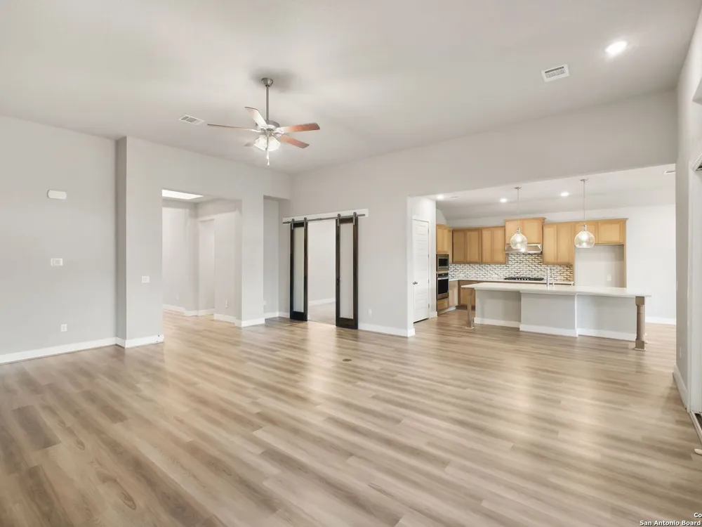 OPEN HOUSE Sat Oct 11 from 12-4!!!!! This stunning ranch-style home offers 3,450 square feet of luxury living, complete with builder upgrades, a 3-car garage, and serene greenbelt views. The grand covered back patio is perfect for game nights, entertaining friends, or enjoying family meals outdoors. Inside, the entryway opens to a private study, two bedrooms with a Jack-and-Jill bathroom, a half bath, a mudroom, and a spacious laundry room. The living area sits at the heart of the home, featuring a cozy fireplace. A flex room with stylish wood-and-glass barn doors can serve as an office, playroom, game room, or second living area. The gourmet kitchen boasts stainless steel appliances, including a gas cooktop, built-in oven, microwave, dishwasher, and a large island with bar seating. Just off the kitchen, the dining area is accented by a decorative chandelier.The primary suite is a true retreat, featuring a private thermostat and a spa-like ensuite bath with a freestanding tub, double-entry walk-in shower, two separate vanities, a built-in full-length mirror, a private toilet room, and dual walk-in closets. Additional highlights include: * Owned water softener system * Tankless water heater * 3-car garage with shelving and interlocking tile flooring * Xeriscaped front and back yards with drought-tolerant plants, stones, and pavers This home combines elegance, function, and comfort in every detail-ready for you to make it yours! Amenities include: fitness center, yoga lawn, children's pool, and a lazy river for some fun and relaxation.