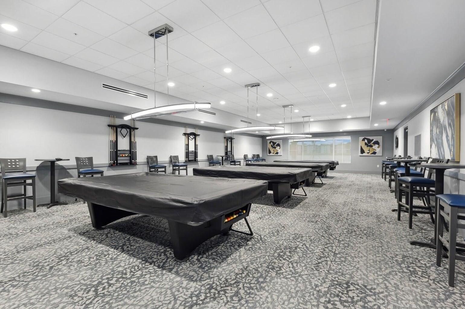 - Includes: Billiard Room, Clubhouse, Fitness Center, Game Room, Indoor Pool, Jogging Path, Pool, Sauna, Spa/Hot Tub, Tennis Court(s), On Site Manager/Engineer, Bocce Court, Restaurant, Community Room, Library, Pickleball, Street Lights, Gated