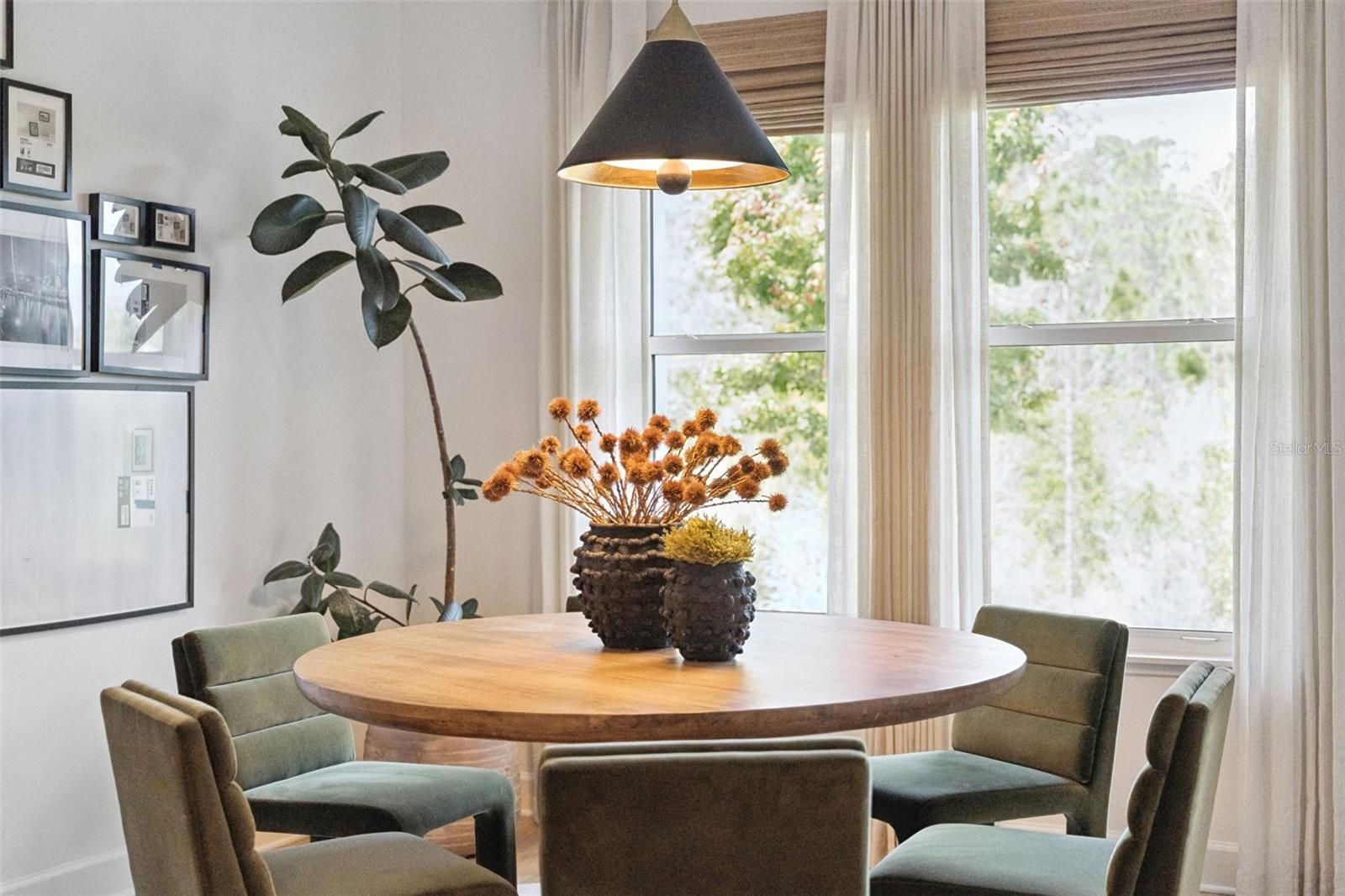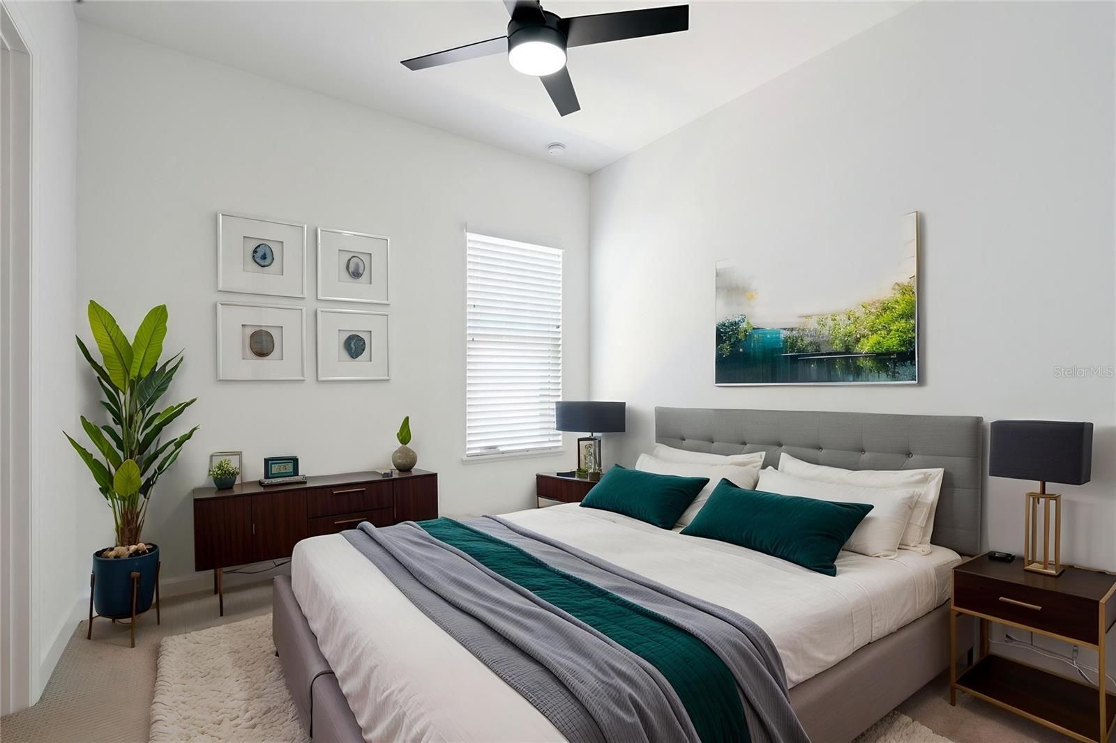 - Ceiling Fan(s), Eat-in Kitchen, High Ceilings, Kitchen/Family Room Combo, Open Floorplan, Stone Counters, Thermostat, Walk-In Closet(s), Window Treatments