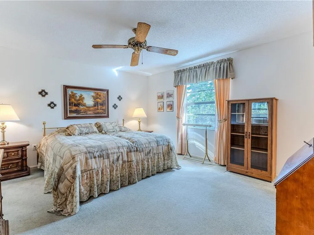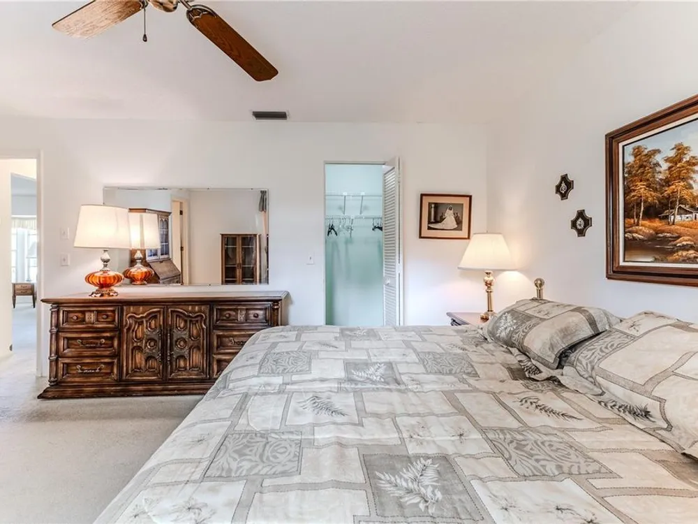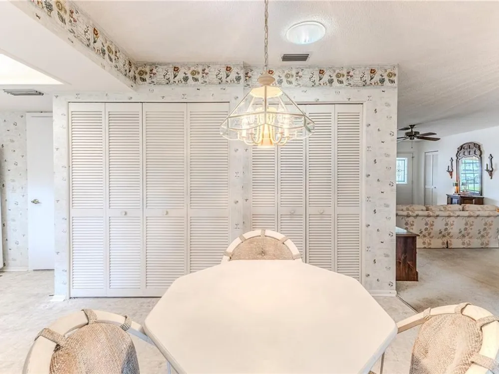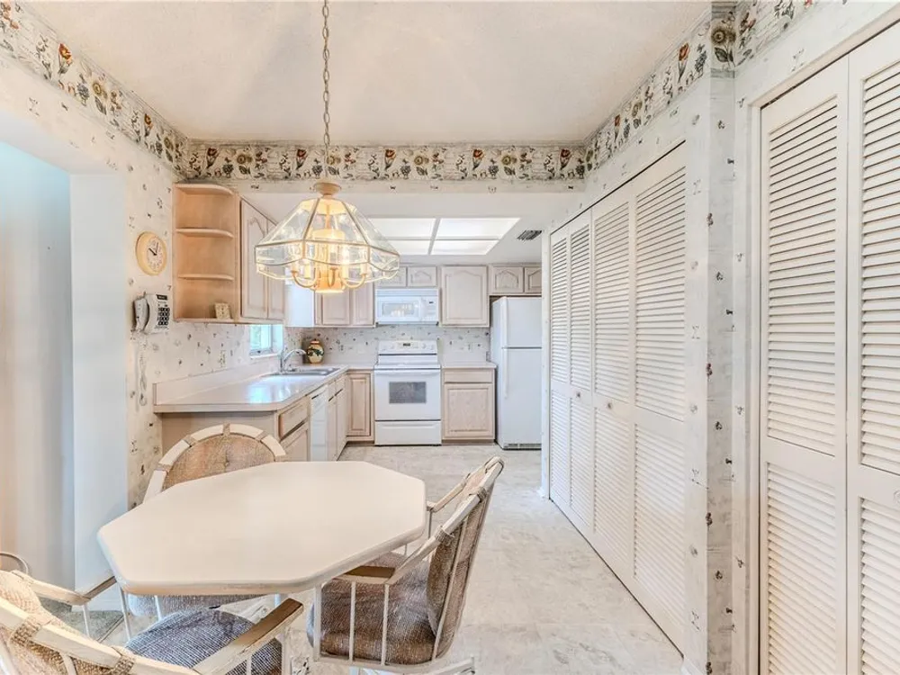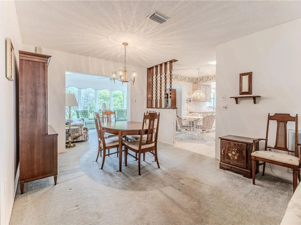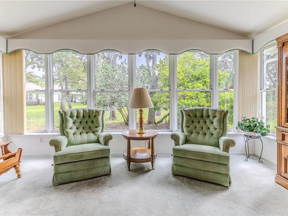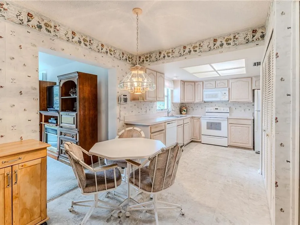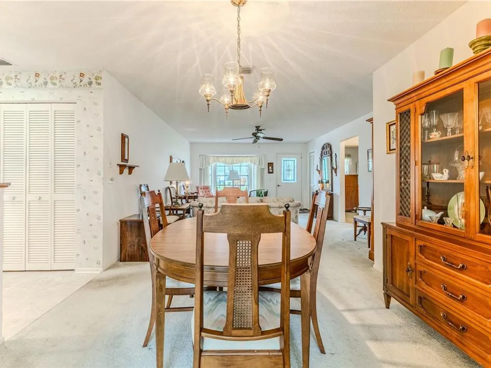 Welcome to this inviting 2-bedroom, 2-bathroom, 2-car garage home that offers a spacious and functional layout. Recent updates include a new roof in 2023, and the HVAC system was replaced in 2025, giving peace of mind for years to come. Step inside to find a living room and dining room combination, perfect for entertaining or everyday living. A separate family room with vaulted ceilings and a wall of windows provides an open, airy feel and fills the space with natural light. The kitchen features an eat-in area, solar tube, a double sink with a view of the garden, and a wall pantry for extra storage. A convenient closet houses the washer and dryer, keeping laundry within easy reach. The primary bedroom boasts an oversized walk-in closet, ceiling fan, and an en-suite bath with a step-in shower. The guest bedroom is generously sized with two large closets and easy access to the full hall bathroom, complete with tile flooring and a bathtub/shower combo. The garage includes a utility sink and work bench. Timber Pines is an award winning, guard-gated, 55+, deed-restricted community offering a resort-style lifestyle: three 18-hole golf courses, a 9-hole pitch & putt, tennis, 12 pickleball courts, two community swimming pools, country club restaurant and bar, fitness center, billiards, performing arts, and over 100 social clubs and activities. With its thoughtful floor plan, abundant natural light, and key system updates, this home is move-in ready and a fantastic opportunity to make your own.