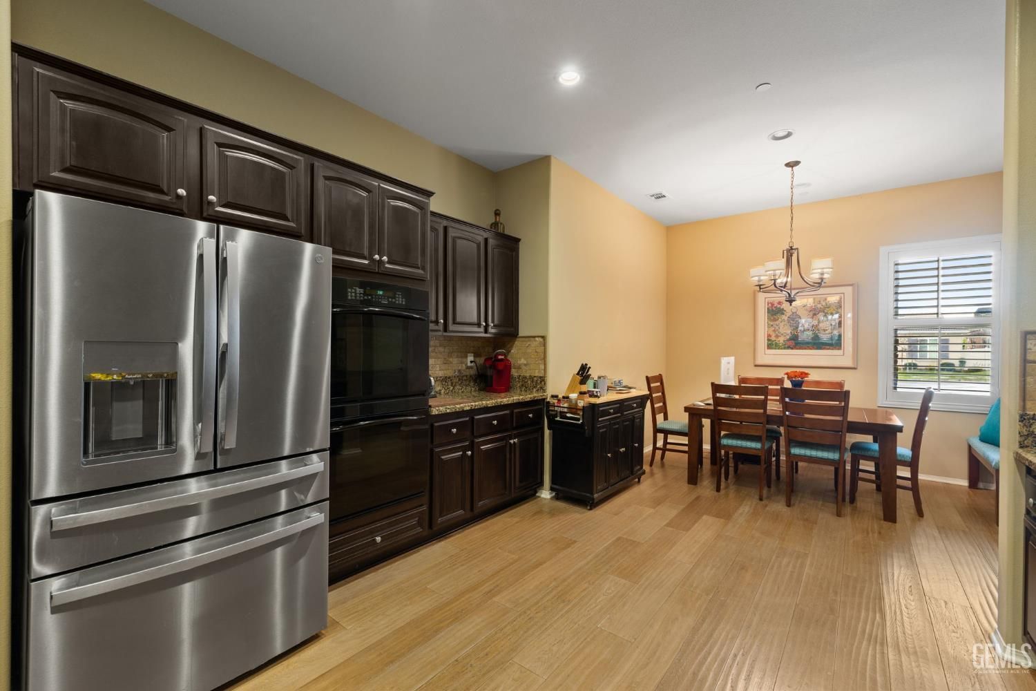Gorgeous Adult 55+ gated community! Split wing floor plan with tons of upgrades include Shutters throughout, beautiful wide plank flooring and custom front and back screen doors to let the afternoon breeze in. Spacious great room open to kitchen featuring rich dark brown cabinets, granite countertops, built in double ovens, gas cooktop and breakfast bar seating along with informal eating area. Pass by the custom Barn Door to the Bonus room perfect for 2nd living area or office with 1/2 bath for guests. Primary suite offers spacious bedroom with builder upgraded bay window for additional square footage. Primary bath has double sinks, garden tub, separate shower and large closet. Formal dining, 2nd bed and bath, 2 car garage with additional 3rd golf cart garage. Serene backyard with Pergola, manicured foliage ready for spring blooms all on great CDS. Community grounds features a Cafe, Ballroom, Theater, Game Room, Gym, Pickle Ball, Tennis, BBQs, pool and spa.