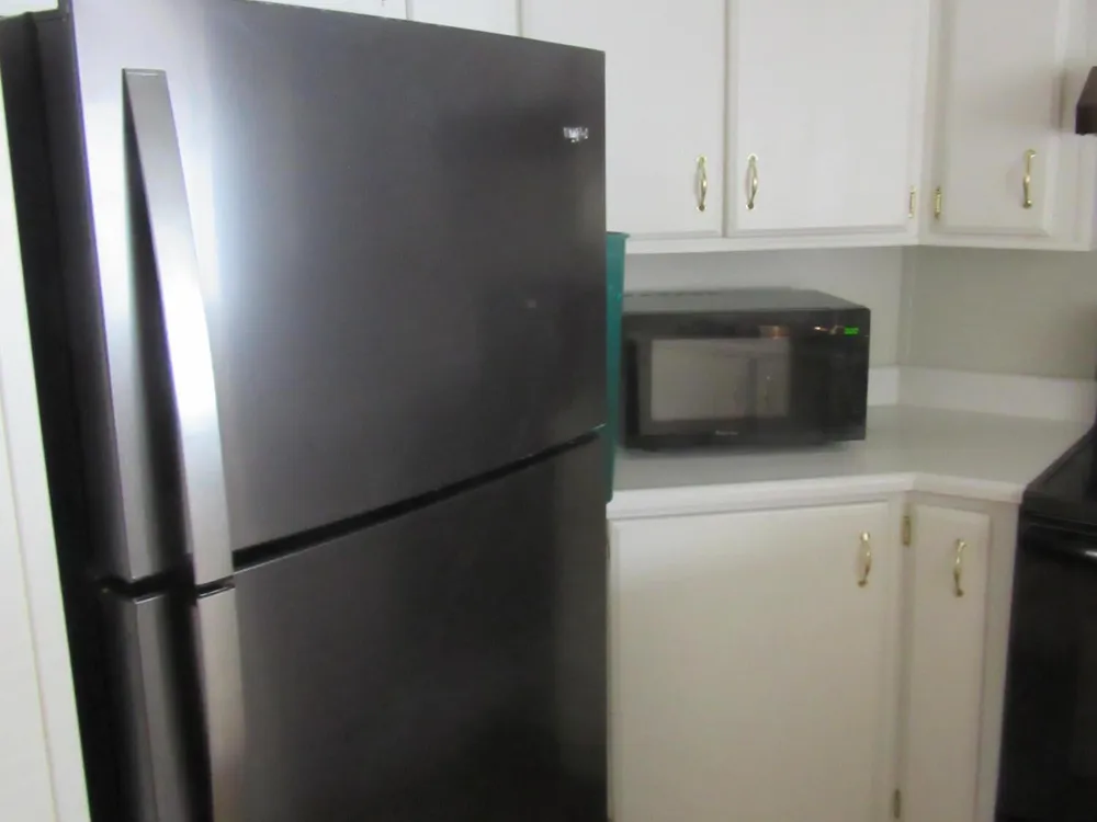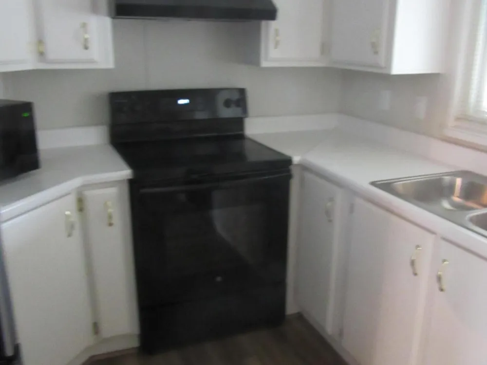 Well maintained Manufactured home on the golf course at the 16th Green. Split Floorplan. Large living room has Built-in Corner hutch with glass doors on top and closed cabinets on the bottom for storage. Kitchen has white cupboards, pull out shelf in corner cabinet. Newer Appliances and wood like plank floors. Carpet flooring in Living room and bedrooms. Master Bathroom has new vanity and new toilet. Guest Bedroom has walk-in closet. Hall Linen closet features pull out shelving. 2024 New Dual Pane Windows by Anderson Renewal. New Roof and new A/C approximately 2020. Carport flooring is Paver Stones. Large Back Patio reaching across full length of home, with great golf course views. .