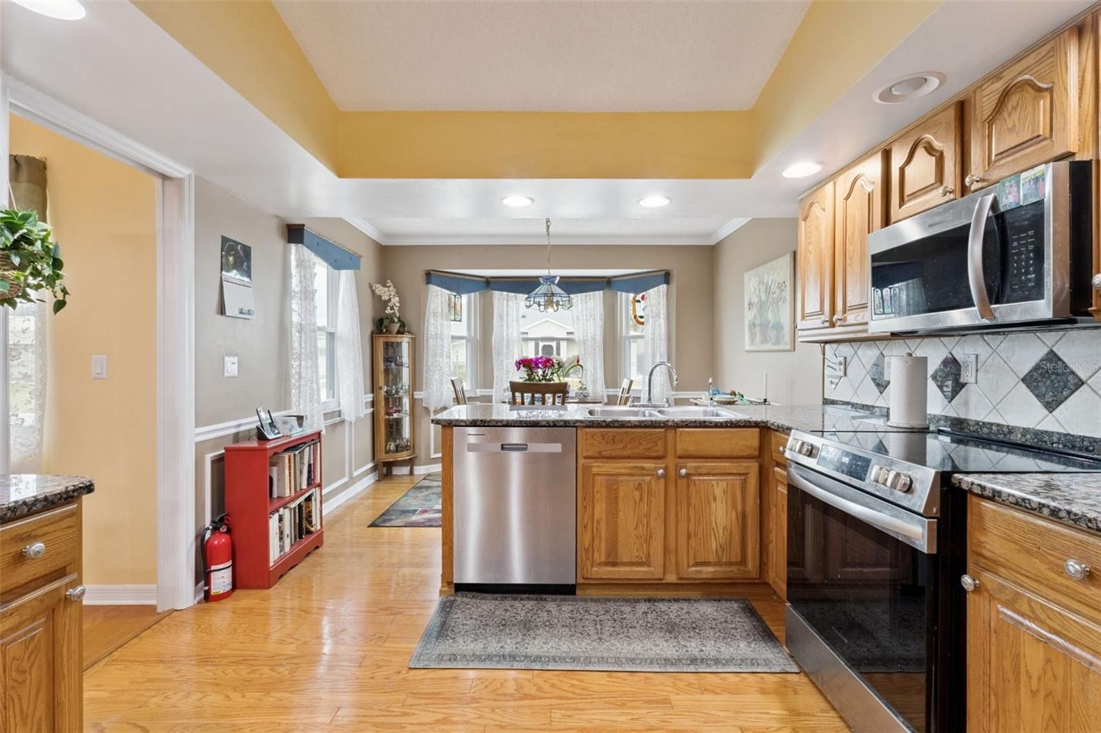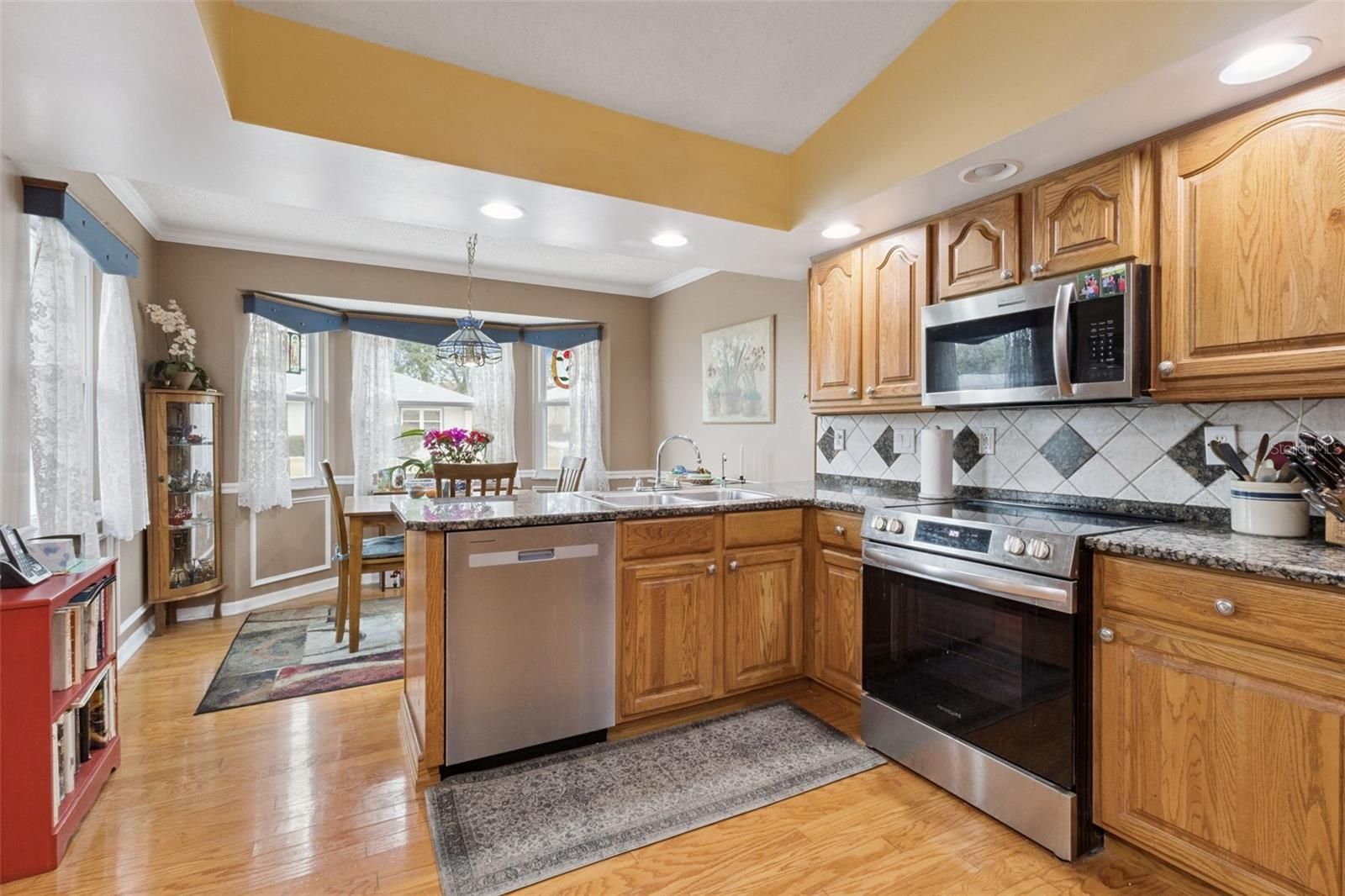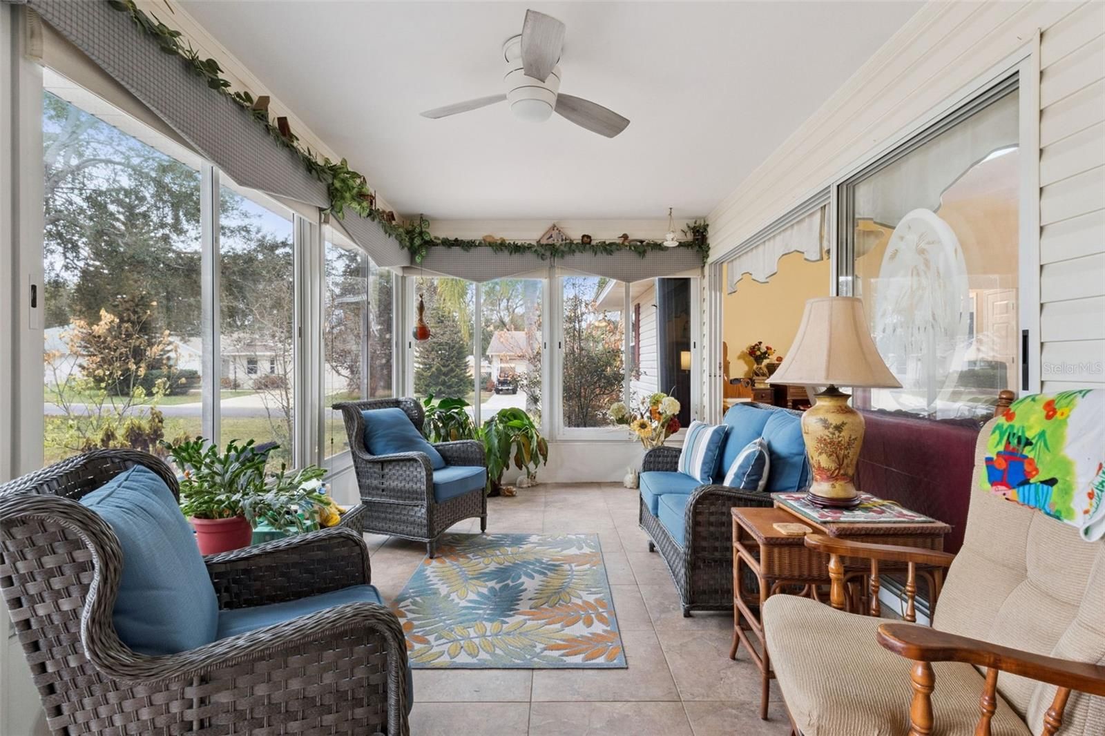 3 bedrooms | split floor plan | 2 full baths on a CORNER LOT in sought after GATED community of Highland Lakes awaits new owners. UPDATED kitchen with GRANITE countertops, oak cabinets, tile backsplash, new electric range (2025), all stainless-steel appliances convey | Bay Window Dinette/Nook space | HARDWOOD flooring | over-sized 2 car garage boasts 535 sf of man-cave space | DOUBLE PANE WINDOWS throughout (2020) | Brick paved driveway and walkway | Primary retreat includes His & Her walk-ins with a window in Her closet | ensuite RENOVATED bath (2019) with tall vanity, CORIAN countertop, jetted soaking tub, separate shower, crown molding | Indoor laundry complete with washer and natural gas dryer | Living and dining room combination with new solar tubes for lots of natural lighting | tiled foyer with coat closet | Guest bedrooms share the hall guest bath | dual linen closets off the guest bath | ROOF 2018 | HVAC 2018 | Water heater 2017 | Sunroom with tile floor. Highland Lakes is a gated 55+ community situated in Central Florida just south of Leesburg & offers residents the following amenities: Recreational Clubhouse with two swimming pools; indoor (heated) & outdoor, a softball field complete with concession stand, an indoor arena with a stage for comm. events, complete kitchen, billiard/ping pong rm., 4 tennis courts (2 courts are lighted), 1 indoor tennis court, 8 lighted shuffle board courts, bocce ball courts, 2 outdoor and 4 indoor pickleball courts, 7 horseshoe pits, covered picnic pavilion with picnic tables & grills to barbeque, library, meeting/card room, exercise room/fitness, craft room, golf driving range, RV/boat storage (included in HOA) & has 260 spaces on a secured lot (fenced & lockable), a Craftsmen building/woodworking shop (homeowners can join the club for only $12 annually and use any/all tools available), there's also a Nature Trail within the community & seven lakes scattered throughout Highland Lakes; 4 are used by residents for catch & release fishing! Don't wait............. call now to schedule your private tour!