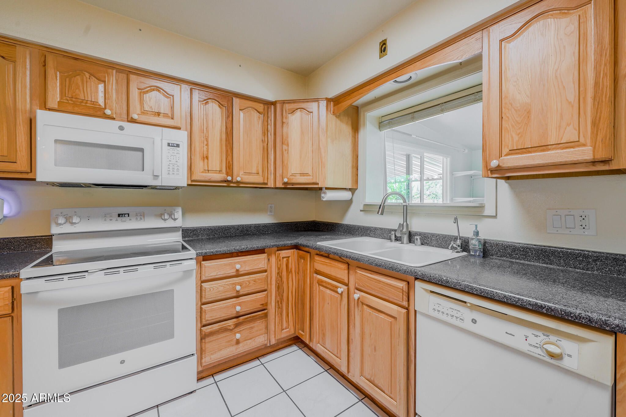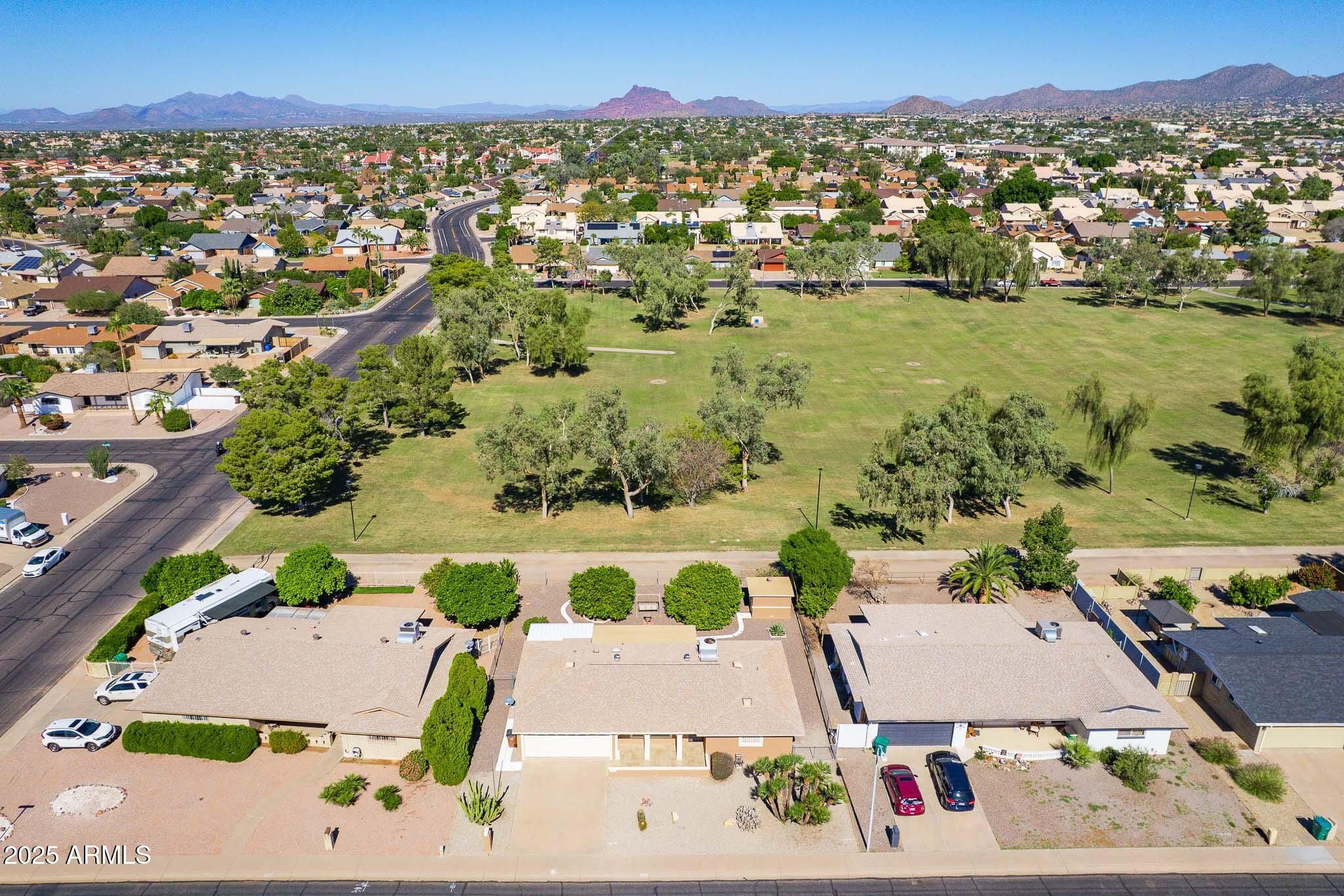 Wonderful, light and airy, 2 bed, 1 & 3/4 bath, 1240sf home on a great lot that backs up to Ensenada park with Mountain Views. It's easy living with No HOA. Optional membership provides great amenities. Ideal floorplan features large great room and open dining area. Cozy kitchen with desk is ideal. Imagine spending your days relaxing in your spacious Arizona room, out on your covered patio, enjoying the generous sized back yard, or puttering in your shed/shop with no homes behind! Large master bedroom with 3/4 bath and 2 closets. Perfect sized 2nd bedroom with full bath nearby. 2 car garage with race deck flooring, adjacent large laundry room and storage. The outstanding location affords easy access to the area's exploring and hiking activities, unique local restaurants, events, and shops