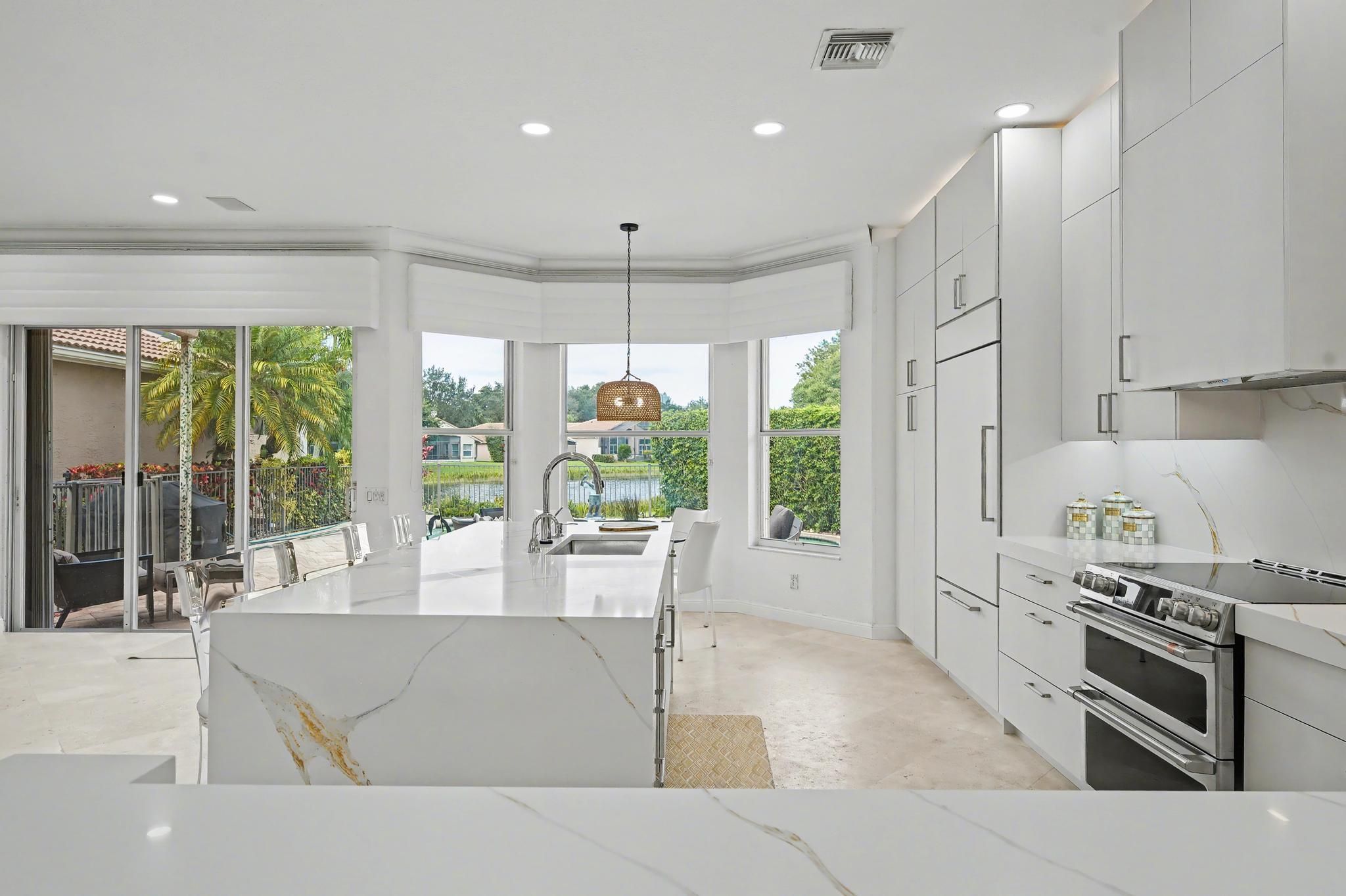 NEW RENOVATIONS 2025! FROM FLOORS TO CEILING, THIS MEDITERRANEAN MODEL IN VALENCIA FALLS, IS TRULY ONE OF A KIND! ON A PRIVATE CUL-DE-SAC, THIS THREE BEDROOM (BED 3 SHOWS AS AN OFFICE) TWO BATH, IN A 55 AND OVER COMMUNITY, FEATURES A BRAND NEW KITCHEN WITH SUBZERO PANEL READY 36 INCH REFRIGERATOR, GE STAINLESS STEEL CAFE DOUBLE OVEN, INDUCTION, COOKTOP, BOSCH STAINLESS STEEL DISHWASHER, SHARP DRAWER MICROWAVE, BEVERAGE, DRAWERS, ZEPHR EXHAUST VENT TO THE EXTERIOR OF THE HOME, QUARTZ COUNTERTOPS WITH WATERFALL, DELTA NO TOUCH FAUCET, NEW TRAVERTINE HONED MARBLE THROUGHOUT, RECESSED LED LIGHTING, NEW WASHER AND DRYER WITH NEW LAUNDRY ROOM CABINETS WITH QUARTZ COUNTERS, CUSTOM LIGHTING THROUGHOUT. ACCORDION SHUTTERS. BEAUTIFUL POOL WITH LAKE VIEW! COME ENJOY THE VALENCIA LIFESTYLE!