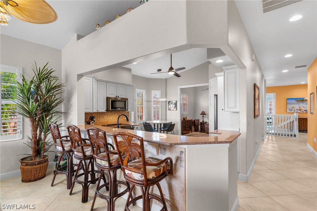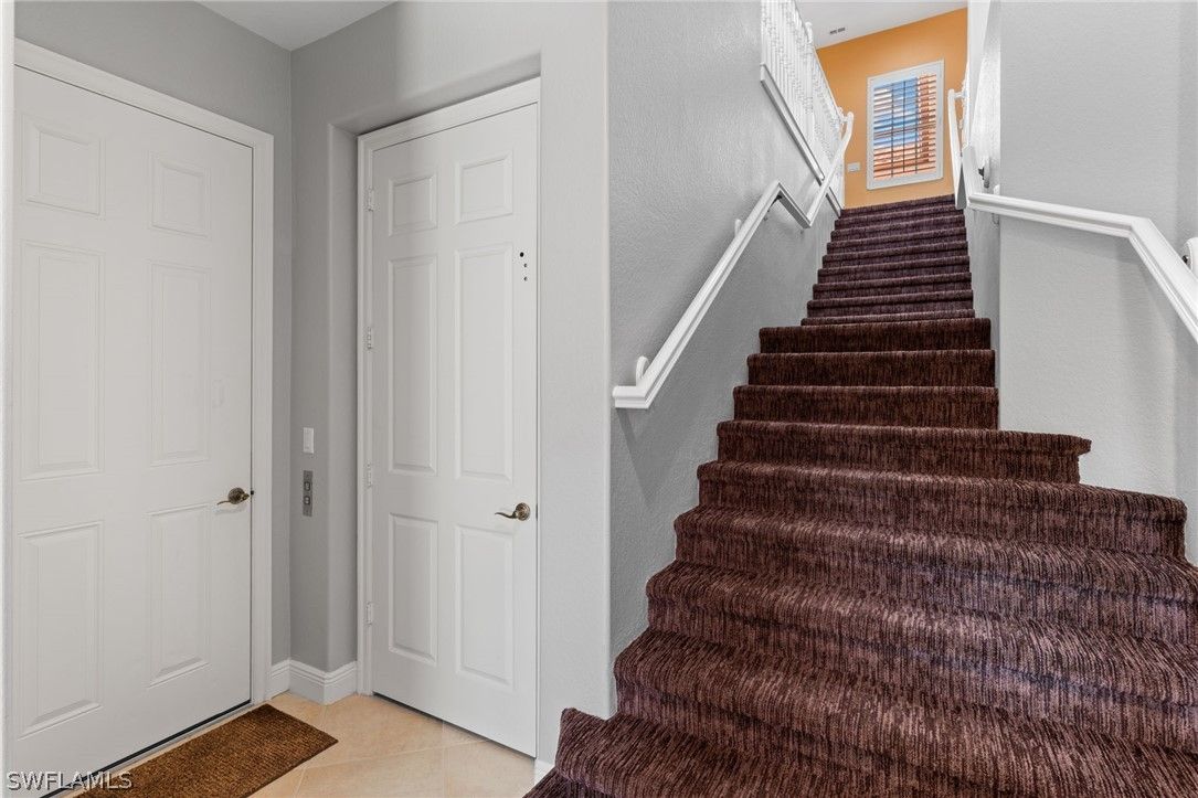 Check out this rarely available 4 “true” bedrooms plus den and 3 full bathrooms Coach Home in Legacy, Lely Resort. This meticulously maintained second-floor unit boasts an expansive 2,686 square feet of living space. This floor plan with a dedicated fourth bedroom and a separate den, provides significant more flexibility for a home office or hobby room. As an upper-level residence, you are greeted by dramatic vaulted ceilings, an abundance of natural light from the many windows and a wonderful lake view from the lanai. A private elevator located inside the ground floor foyer, immediately adjacent to the garage entry, is perfect for transporting heavy groceries, oversized luggage or furniture directly into your main living area. The gourmet kitchen with premium light cabinets, granite counter tops and upgraded Kitchen Aid appliances, is strategically positioned to overlook the main living areas and the lake beyond. A private retreat, located at the rear of the residence for ultimate peace, the primary suite features an impressive footprint while the large windows frame peaceful views of the water, allowing you to wake up to the sun glistening on the lake. The en-suite bathroom features split dual vanities and a large shower. This Coach Home offers the space and privacy of a single-family home with the effortless “lock-and-leave” lifestyle of a condominium. The gated community of Legacy, offers its own “neighborhood-only” amenities, just a short stroll from your door…a renovated clubhouse, heated pool and spa. The clubhouse provides space for neighborhood gatherings, holiday parties, card and Mahjong groups. The Legacy pool is where you truly get to know your immediate neighbors. All the roofs in Legacy were replaced in 2022-2023. The world class resort experience of the Players Club & Spa membership is included with this Coach Home. Featuring, 2 resort style pools, lap pool, well equipped fitness center with trainers and a full array of classes, full-service spa, Har Tru tennis courts with a pro shop, pickleball, bocce ball plus a 2 dog parks. Lely Resort is also home to 1 private golf course and 2 public golf courses.
