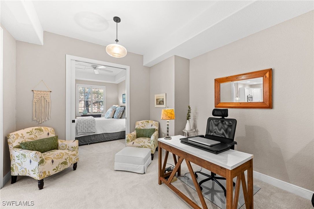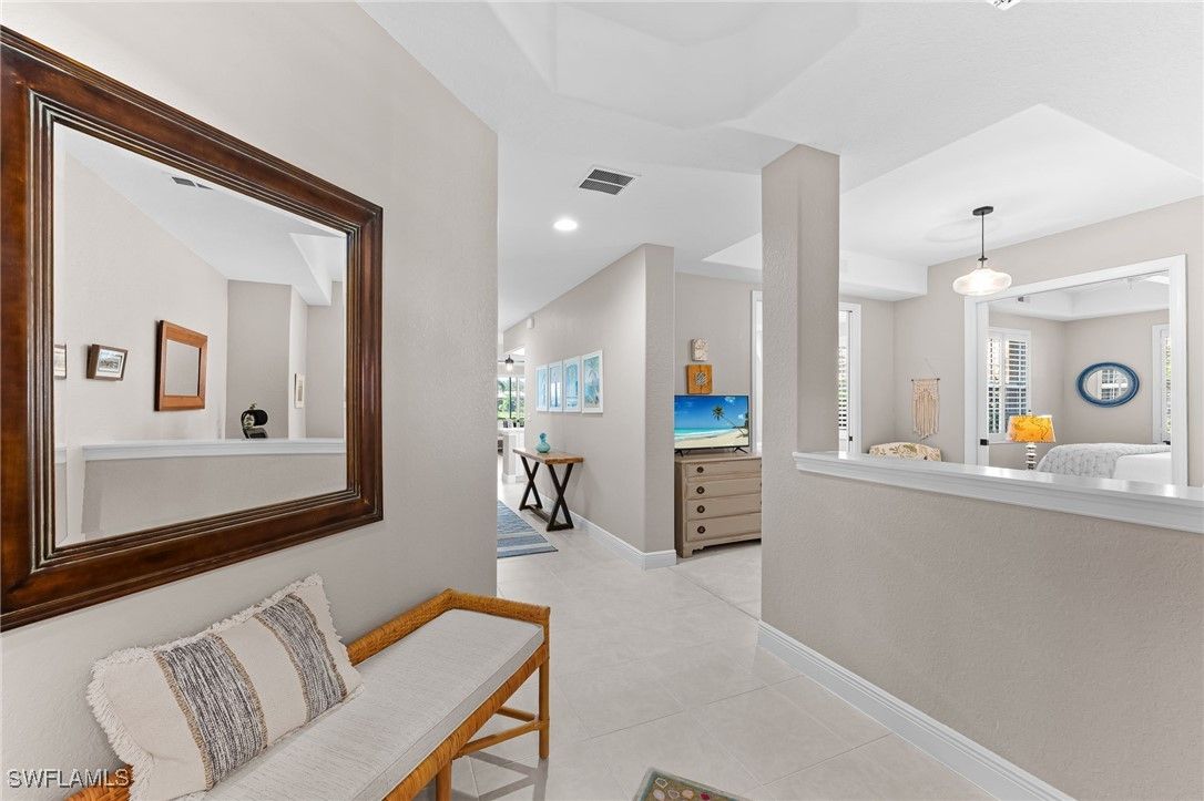 Coastal Elegance Meets Lakeside Serenity in Legacy at Lely Resort. Welcome to your slice of paradise in the prestigious Legacy at Lely Resort. This impeccably maintained, first-floor carriage home perfectly blends modern updates with a bright, airy coastal atmosphere. From the moment you step inside, you are greeted by an abundance of natural sunlight and a direct, peaceful view of the lake. Enjoy a freshly painted interior, updated flooring throughout, and contemporary light fixtures that elevate every room. This property features 2 generously sized bedrooms plus a versatile den that is currently configured as a 3rd bedroom—providing plenty of space for family or overnight guests. The chef inspired kitchen has recently been updated and designed for entertainment. The kitchen flows seamlessly into the open floor plan, ensuring you never miss a moment with your guests. Unique to this floor plan is the inclusion of both a utility room and a large, dedicated laundry room, offering ample storage and organization. Relax on your private lanai and take in the serene lake views that define the Lely Resort lifestyle. Living in Legacy means more than just a beautiful home; it’s a world-class experience. Residents enjoy access to lush landscaping, meticulously maintained grounds, and immediate access to the renowned Players Club & Spa.  As a resident, you unlock the doors to the famed “Eight-time Club of the Year Players Club & Spa. Imagine your weekends spent by the cascading 22-foot waterfall pool, enjoying drinks at the tiki hut, or challenging friends on the premier tennis and pickleball courts. With gourmet restaurants, a state- of-the-art fitness center, a full spa, and three championship golf courses all at your fingertips. This home perfectly blends luxury upgrades with a world-class resort lifestyle. Start living your best life today. Live, Laugh, and Love the Lely Lifestyle where every day feels like a vacation.