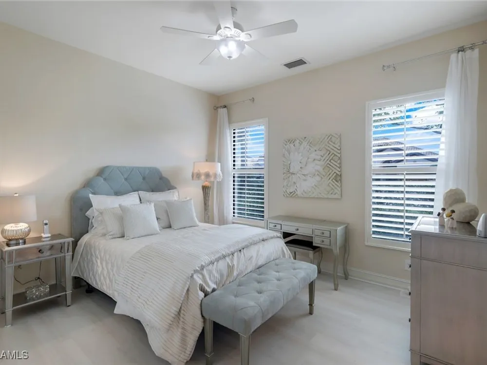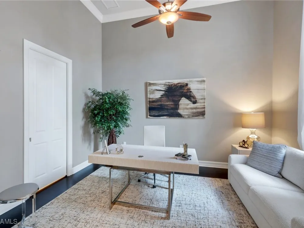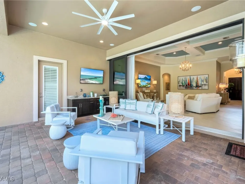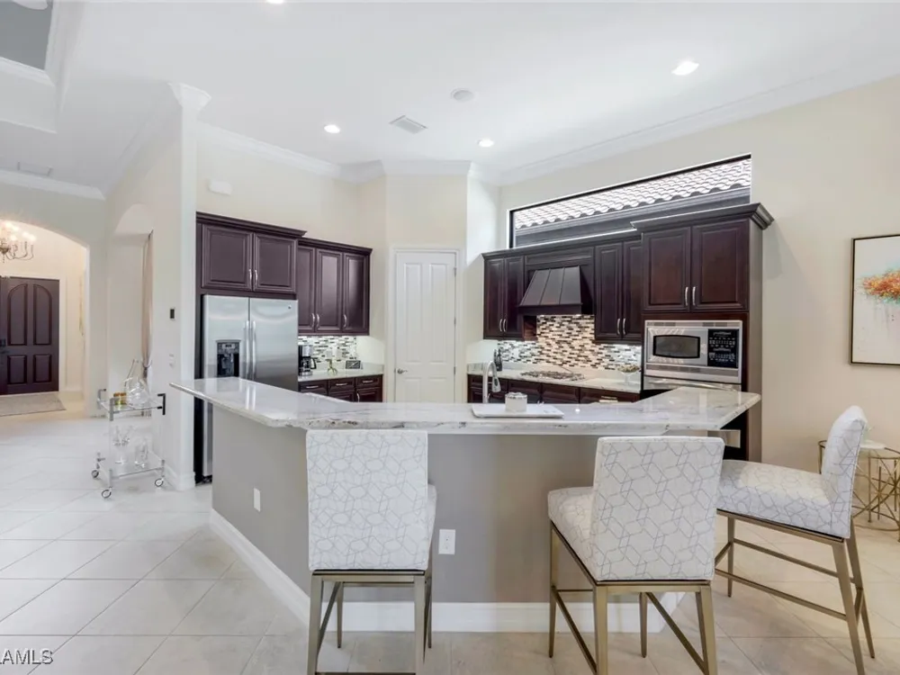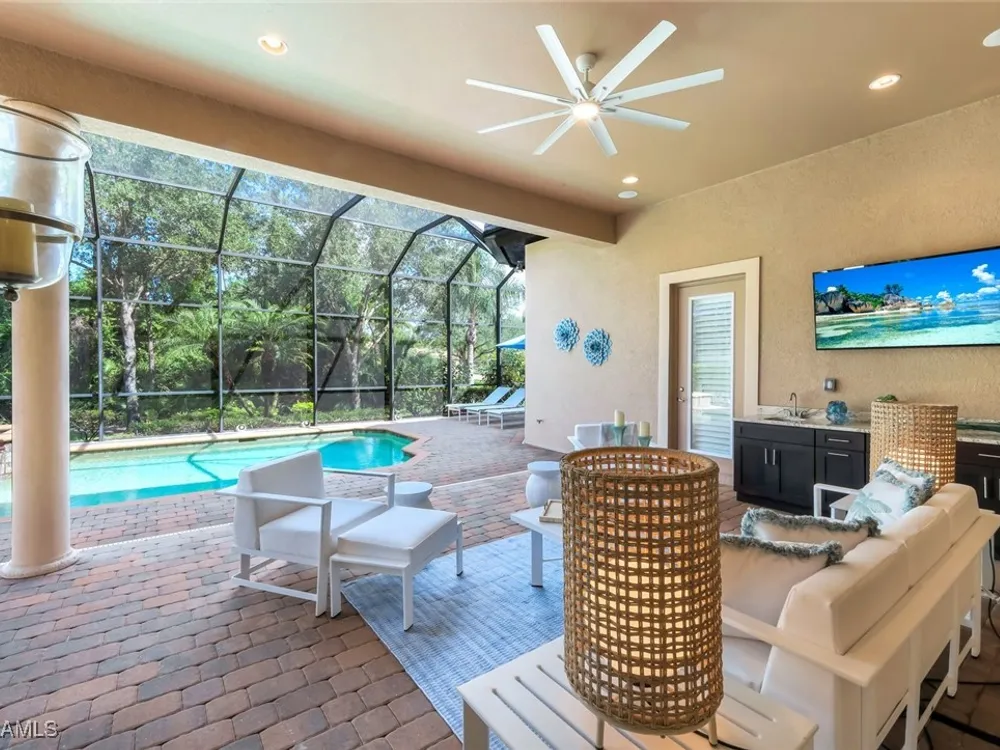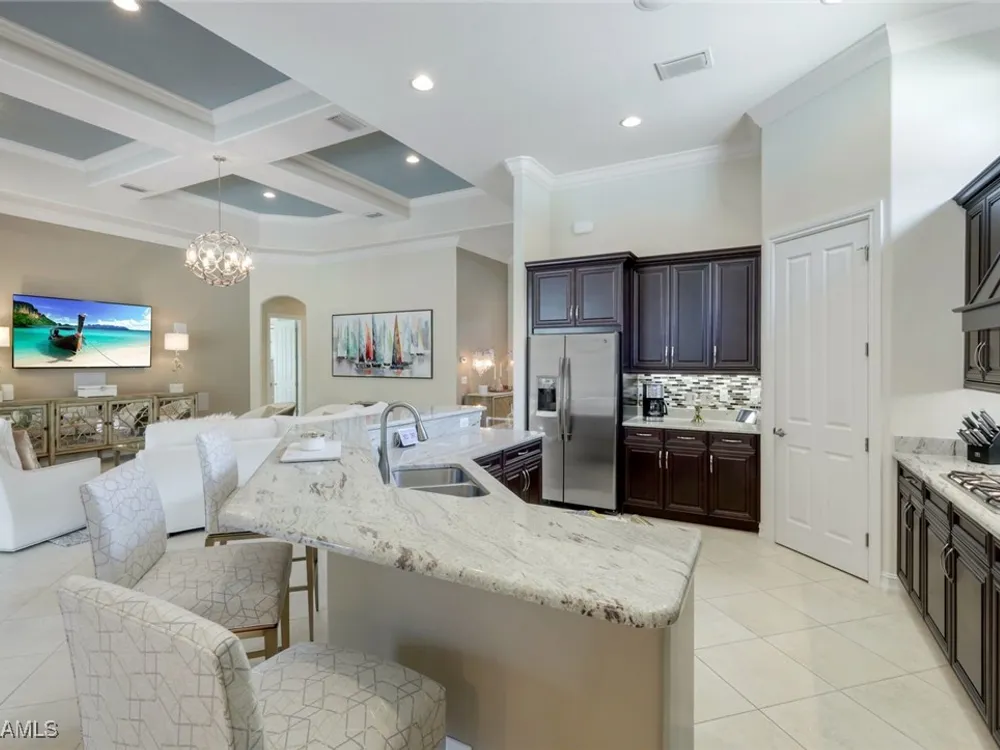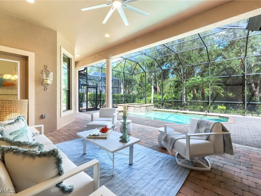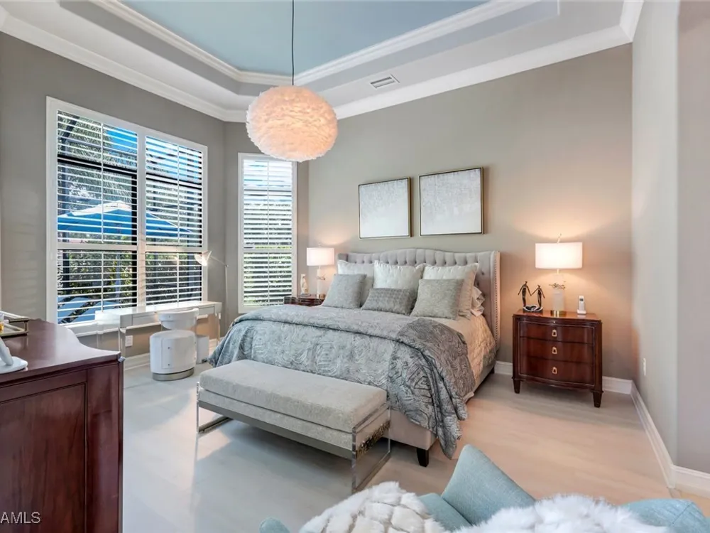 This home is a must see! Stock Development's Jasmine model, featuring gourmet kitchen with gas cook top, impact glass, crown moldings, custom cabinetry and breakfast bar. It has pocket sliders in the great room, designer lighting, chandeliers with dimmers, tray ceilings, and wood plantation shutters. The Master Bedroom, has two walk-in closets, separate tub and an enormous shower. The 4th bedroom, which has a full bath is currently being used as a home office/den but can easily be converted back to a bedroom. Membership in The Players Club and Spa is Mandatory. The Players Club & Spa also features a full-service restaurant with both indoor and outdoor seating, a tiki bar, and a grill, ensuring there’s always a place to unwind and socialize. There is also three resort-style pools, fitness center, full service spa, pickleball and tennis courts.