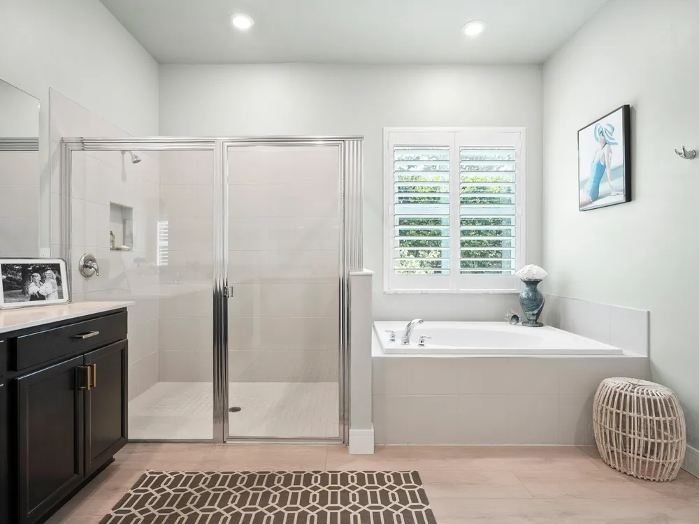 - Built-in Shelving, Closet Cabinetry, Entrance Foyer, Kitchen Island, Pull Down Attic Stairs, Walk-In Closet(s), Family Room, Living/Dining Room, Storm Window(s), Plantation Shutters, Thermal Window(s), Dual Sinks, Separate Shower, Bathtub