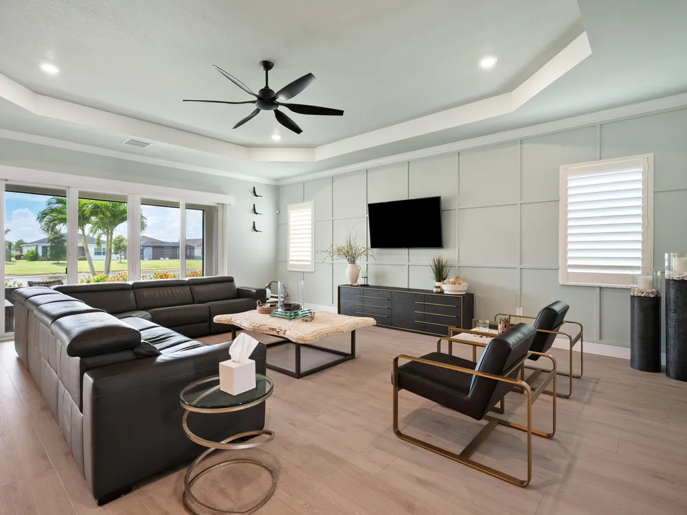 Welcome to this stunning Venice floor plan in Veranda Preserve. This home delivers an unparalleled living experience that is beyond brand new. The exceptional home is situated on a premium, serene lake lot with meticulous upgrades; over $120,000 in custom, high-end add-ons. For the perfectionist, this home is truly a turn-key masterpiece.Step inside Next Gen Smart House to discover a home designed for modern luxury & convenience. Gourmet chef's kitchen features natural gas. Throughout home are designer lighting & fans, 5.25'' base moldings, custom mill work elevate throughout. Crown molding uplifts the family living space. Enjoy ultimate comfort & privacy with premium plantation shutters, screened lanai with remote-controlled sun shade. The outdoor space is a dream, features expanded lanai