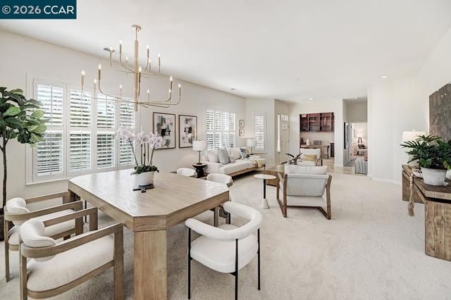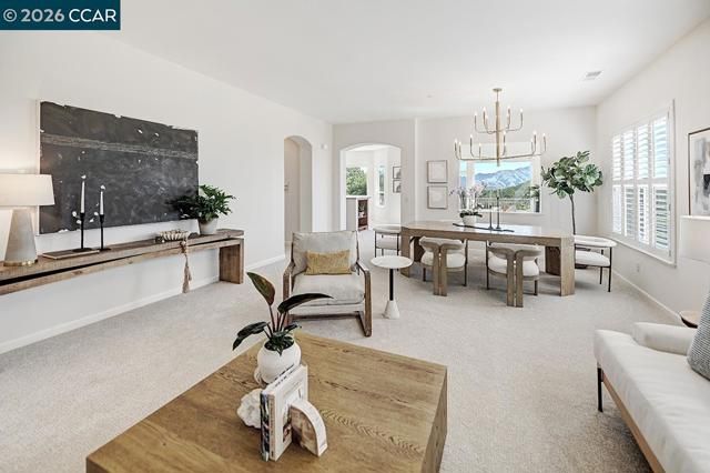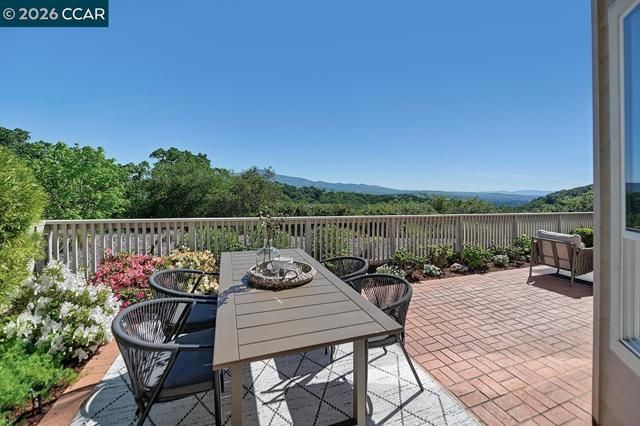Location, location, location! Experience breathtaking, picture-perfect views of Mt. Diablo from one of Rossmoor’s most coveted properties, ideally positioned in the prestigious Eagle Ridge neighborhood. This stunning Fuchsia condominium welcomes you with an inviting foyer that opens to a bright, airy floor plan featuring sweeping east-southeast vistas and abundant natural light. The thoughtfully designed layout showcases panoramic views from the kitchen and family room, creating the perfect setting for both everyday living and effortless entertaining, while the living room is lined with windows and bathed in beautiful southern light. A spacious den, luxurious primary suite, and private guest bedroom with en suite bath offer comfort and flexibility for any lifestyle. Step outside to the expansive brick patio, elegantly framed by blooming hybrid tea roses, where you can relax or entertain while soaking in truly spectacular, unobstructed views. Additional highlights include a two-car attached garage, a generous laundry room, and the ease of single-level living. Tucked at the end of a peaceful court with ample guest parking, this exceptional home offers rare privacy, serenity, and timeless appeal—truly a standout opportunity!