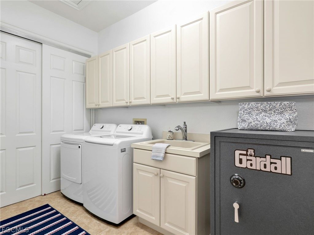 Million-dollar home with a million-dollar view. Enjoy a stunning panoramic south-facing water view across the largest lake in Lely Resort, with two scenic islands that attract an ever-changing variety of birds and wildlife. From your private patio, take in the peaceful setting while also enjoying long-range views of golfers playing the Masters Course. The perspective across the water creates the rare illusion of living directly on the lake. This move-in ready second-floor residence offers exceptional privacy with both a secluded backyard and a spacious side yard perfect for enjoying nature, walking your dog, spending time with the grandkids, or simply relaxing beside the lake. The home is loaded with upgraded features including an in-home elevator, electric storm shutters, impact-resistant doors and windows, security system, front-door intercom monitor, and a whole-home NuTone stereo speaker system. The kitchen is designed for both everyday living and entertaining with granite countertops, stainless appliances, a walk-in pantry, pull-out shelving, corner lazy Susan, and cast-iron sink. Additional highlights include an oversized two-car garage with an attractive epoxy floor, storage room, and second refrigerator, plus an extra-large Gardall combination safe. The spacious primary bath features a make-up vanity, soaker spa tub, upgraded fixtures, and adjustable shower heads. A well-equipped laundry room includes a cabinet sink, full overhead cabinetry, and a new washer and dryer (10/2025). The home is offered tastefully furnished with quality pieces from Tommy Bahama, Theodore Alexander Bromwich, and Crate & Barrel, including a convenient pull-out sofa for visiting family. The Legacy Condominium Association is financially solid and well maintained with new roofs (2023) and exterior painting scheduled for Fall 2026 with no assessments planned. Residents enjoy a lakeside pool and spa, clubhouse with full kitchen for gatherings and BBQs, additional parking, and fiber-optic internet. This home also includes immediate membership to the highly sought-after Players Club & Spa, offering a resort-style lifestyle with a world-class tennis facility, pickleball courts, state-of-the-art fitness center, sauna, lap pool, family pool with waterfall, full-service resort pool with food and beverage attendants, tiki bar for sports viewing, indoor/outdoor happy-hour bar, and a main dining room hosting themed events and social gatherings. Lely Resort is a golf-cart-friendly community featuring two public golf courses and one private club, ideally located just minutes from Marco Island beaches and marinas, the Paradise Coast Sports Complex, the US National Pickleball Center, and the world-class shopping and dining of downtown Naples 5th Avenue and 3rd Street. Come experience this exceptional lakefront setting for yourself.