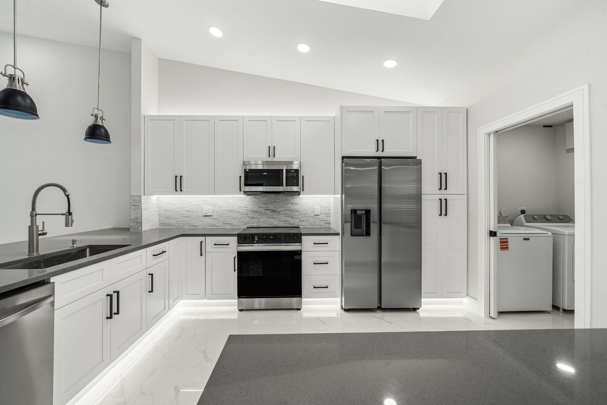 - Cooktop, Dryer, Disposal, Dishwasher, Electric Range, Free-Standing Freezer, Ice Maker, Microwave, Refrigerator, Washer