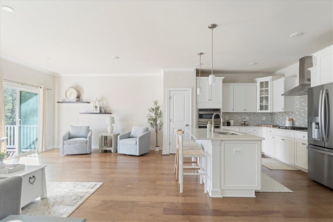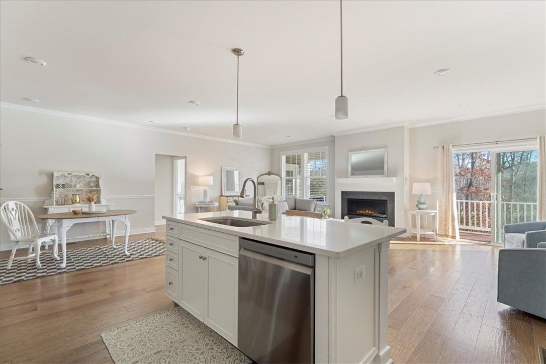 Resort-style living in a sought-after golf course community! Enjoy incredible amenities including a clubhouse with café and bar, library, billiards and poker room, woodworking shop, and spaces to gather for lunch or drinks with friends. Now step inside to an open and airy home designed for comfort and easy living. The open-concept layout flows beautifully into a charming kitchen, perfect for everyday living and entertaining. Wood flooring runs throughout most of the home, with the exception of the basement and an upstairs guest room. The first-floor primary suite offers private access to a peaceful back balcony overlooking a wooded setting, complete with a white picket fence ideal for pets to roam. Sweet, cozy, and inviting, this home is one you won’t want to leave.