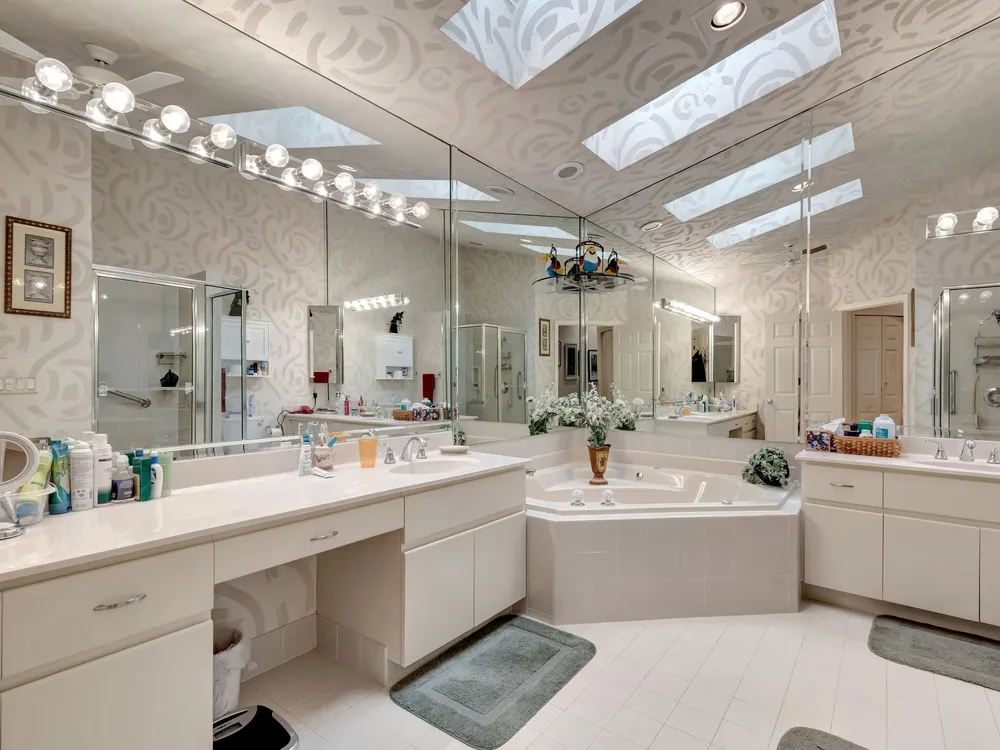 - Bar, Closet Cabinetry, Entry Level Living Area, Entrance Foyer, Split Bedrooms, High Ceilings, Walk-In Closet(s), Wet Bar, Home Office, Living/Dining Room, Dual Sinks, Primary Downstairs, Separate Shower, Bathtub, Whirlpool