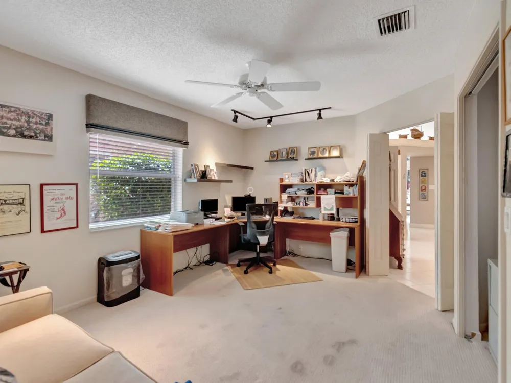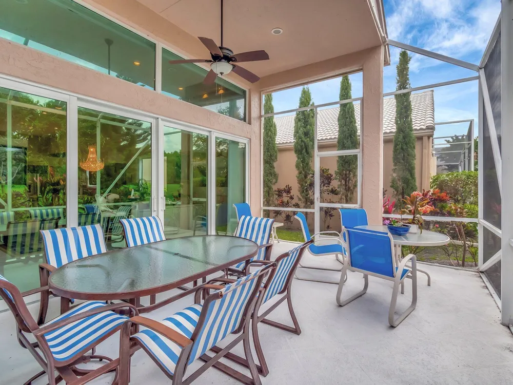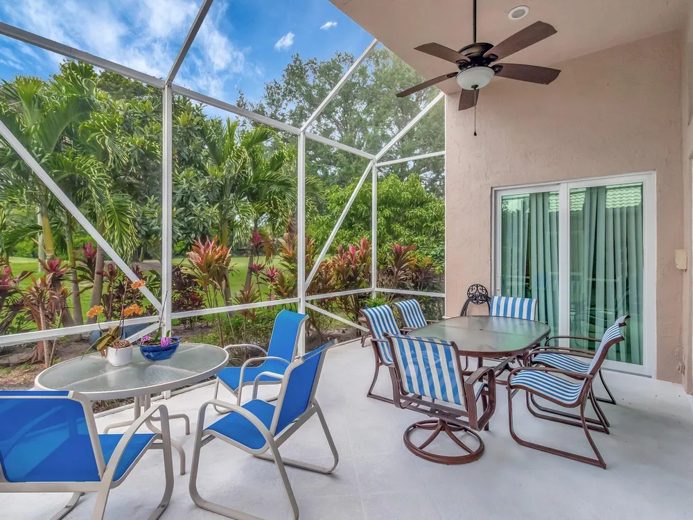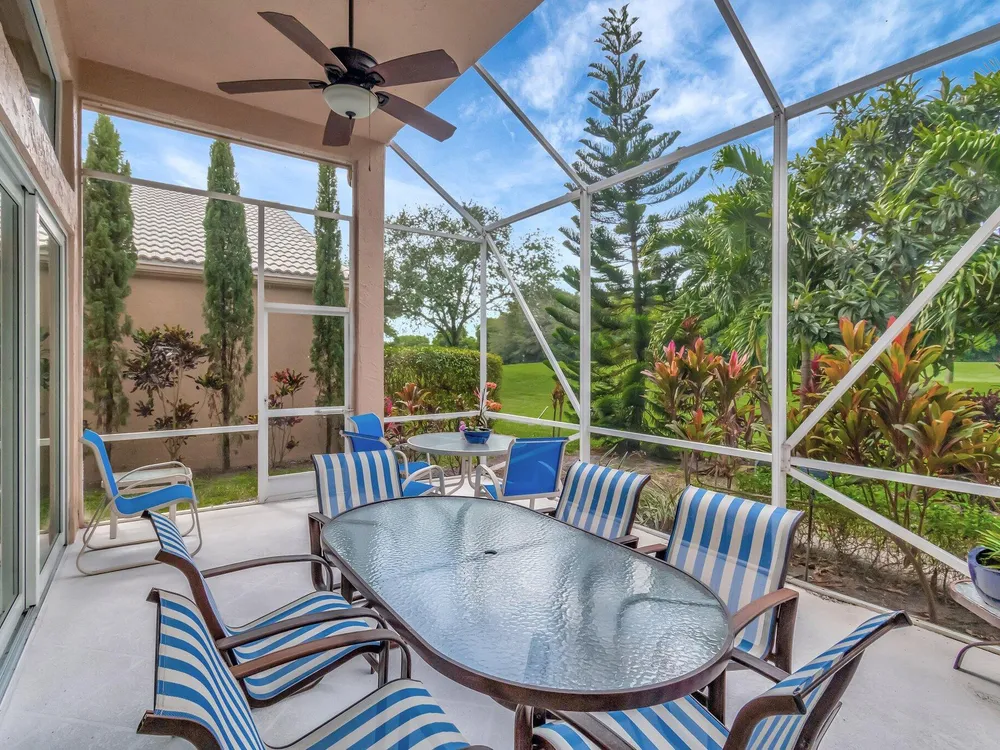 Three bedrooms plus den with three full bath home. Spectacular view of golf course. Impact windows and doors. Light and bright with an open concept floor plan. Screened enclosed patio. Two car garage plus golf cart garage. Long driveway. Extensive lush tropical landscaping .Most of the furniture has now been removed. This community has a beautiful community pool , patio and a clubhouse for socializing and meetings. It is also part of the Indian Spring Country Club community. Joining the Country Club is optional