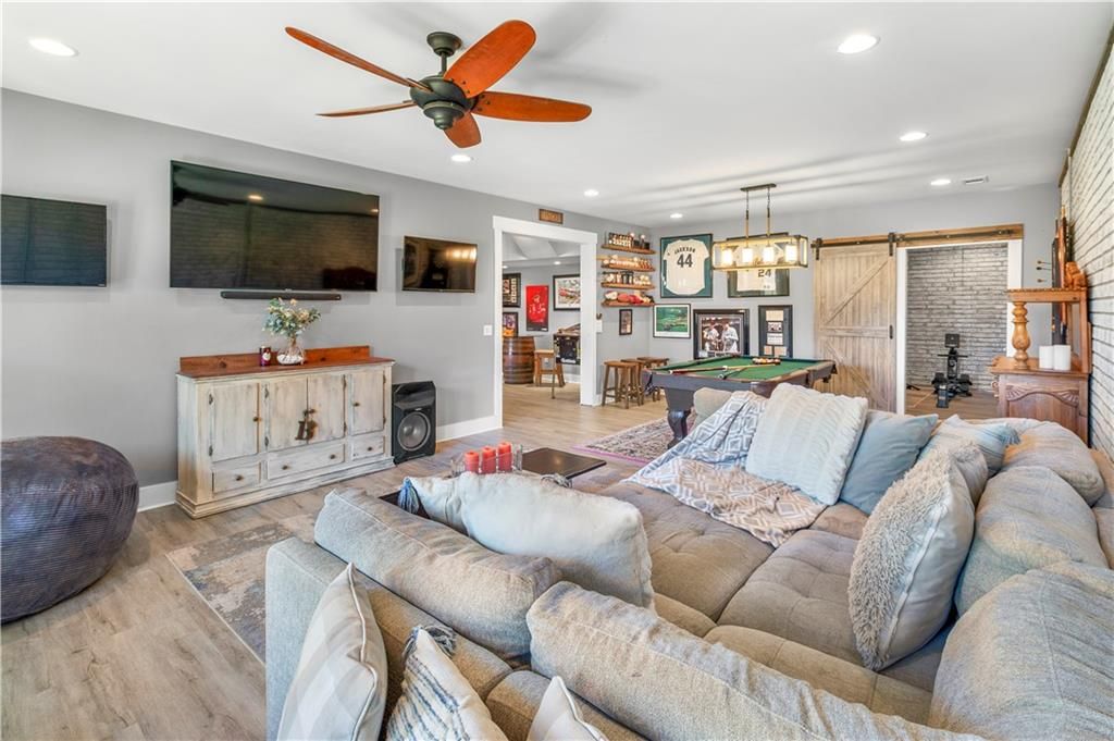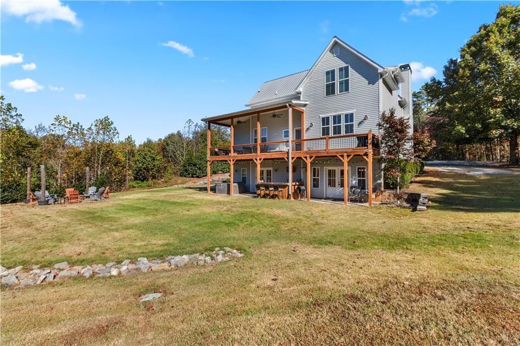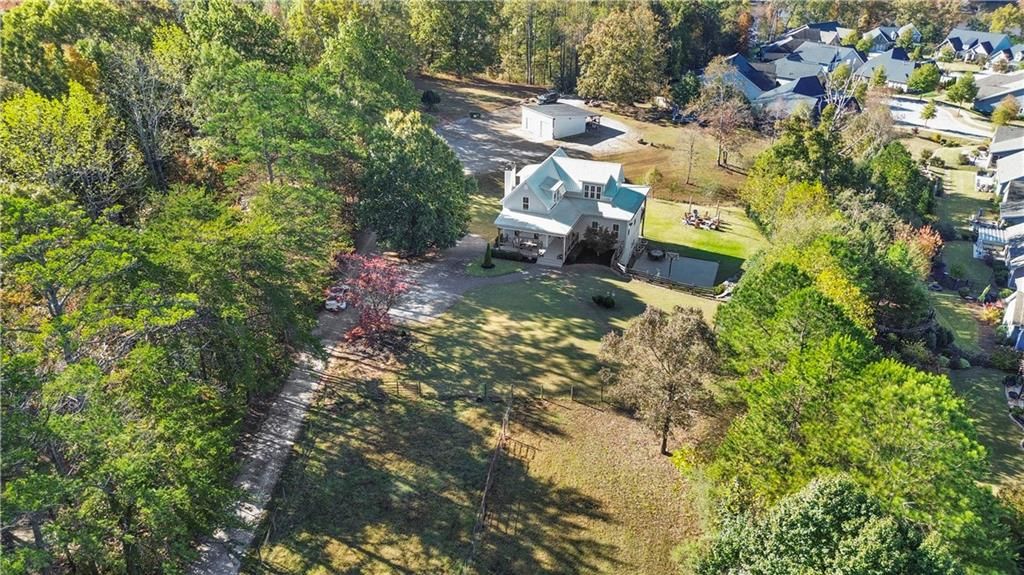 Welcome to this stunning custom-built farmhouse on 3.42 private acres in Flowery Branch! This beautiful home blends modern comfort with rustic charm and offers 3 bedrooms and 4.5 baths. One bedroom in the basement can easily be used as a fourth bedroom. Enjoy an open-concept floor plan with high-end finishes galore, abundant natural light, and inviting outdoor spaces. Relax on the porches or gather around the outdoor fire pit and bar, or soak in the hot tub and take in all the country vibes! The fully finished basement includes a private entrance, full kitchen, full bath, and gym perfect for guests or multigenerational living, and perfect for an In-Law Suite. Added bonus is the 30x30 shop that can be used for hobbies or cars, with a 50 AMP RV Hookup with electric & water. Plenty of space for farm animals and just minutes from Lake Lanier, shopping, and the gorgeous North Georgia mountains.