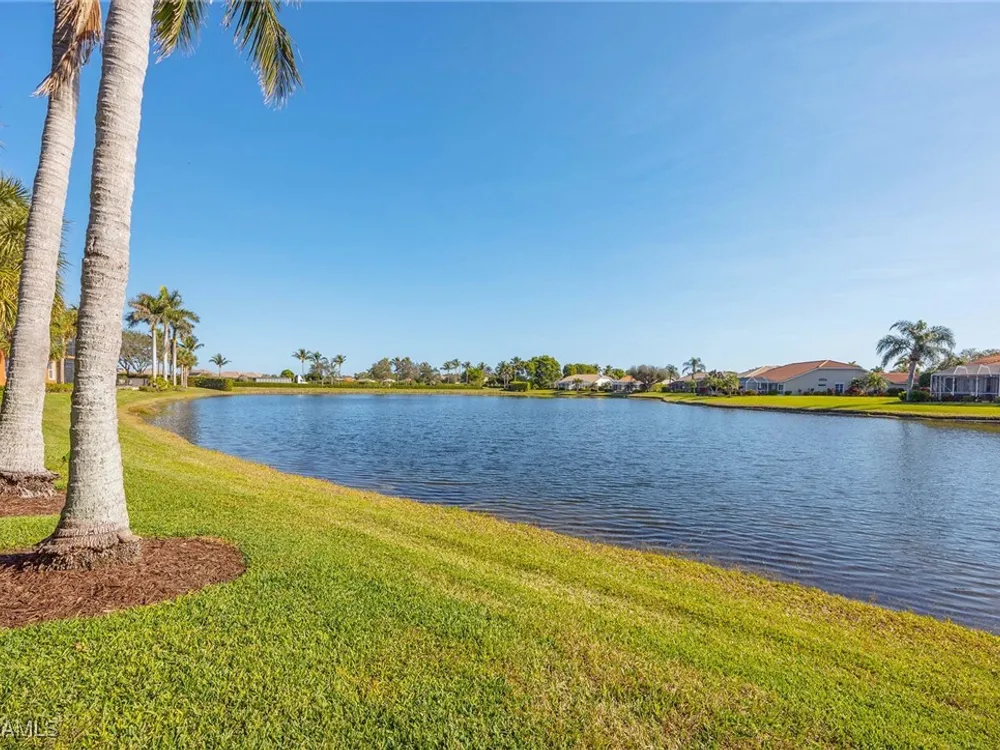 This first-floor coach home boasts a breathtaking lake view and has been meticulously upgraded with new flooring, fresh paint, new kitchen cabinets, new kitchen appliances and new kitchen countertops. With over 2,100 square feet under air, this spacious home features a large primary bedroom with two closets, a bath with dual sinks, a separate soaker tub and a shower. The second bedroom includes a full bath, and the den can easily be used as an office or a third bedroom. The home also offers a formal dining room, an eat-in kitchen and a large under-air storage area. Enjoy membership to the award-winning Players Club & Spa, which includes two resort-style pools, a lap pool, a huge fitness center, tennis courts, pickleball, bocce ball, two restaurants, a full-service spa and a full-time activity director. Lely Resort also offers two public golf courses and one private course.