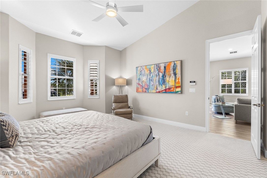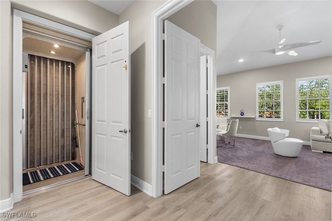 Spacious, beautifully maintained, and perfectly positioned in the heart of Lely Resort — this 3+Den, 3-bath second-floor Legacy condo lives like a single-family home with 2,686 sq. ft., a private elevator, and a 2-car garage. The open, light-filled layout includes a well-appointed kitchen with granite countertops and plenty of space for cooking and entertaining. The oversized third bedroom with ensuite bath makes an ideal private retreat for guests. Step onto the lanai and take in serene lake views showcased by the newly installed panoramic screen — the perfect backdrop for unwinding at any time of day. Additional upgrades include impact windows and doors, newer appliances, newer HVAC, water heater, and a new roof for true peace of mind. Legacy residents enjoy their own private pool, spa, and updated clubhouse, plus immediate membership to The Players Club & Spa — no waitlist required. Enjoy resort-style pools, 13 tennis courts, pickleball, bocce, fitness center, spa, dining options, and a lively social scene. Lely Resort also boasts three championship golf courses (one private, two public), offering an unmatched amenity-rich lifestyle. This is a rare opportunity to enjoy space, views, and resort-style living in one of Naples’ most desirable communities.