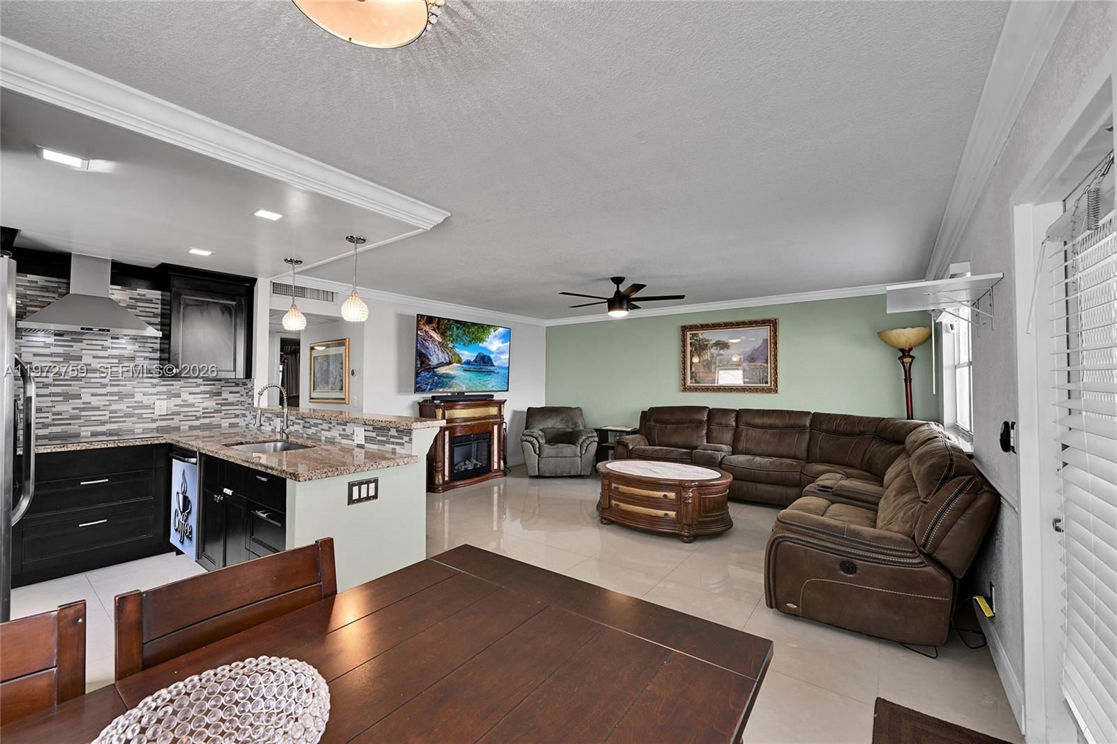 Beautifully maintained 2-bedroom, 2-bath ground-floor condo in the desirable 55+ community of Kings Point. This move-in-ready home features porcelain tile flooring throughout, granite countertops in the kitchen and bathrooms, stainless steel appliances, elegant crown molding, custom built closets and LED lighting. Newer AC (2021) & tankless electric water heater. Large enclosed porch with a full-size washer and dryer, plus the convenience of being just steps from your assigned parking space. Kings Point offers resort-style living with multiple clubhouses, shuttle service, live entertainment theater, indoor resistance and lap pools, heated outdoor pools, tennis, pickleball, golf course, café, bistro, beauty salon, library, and endless social activities. Ideally located near shopping, dining, downtown & highways, this home offers comfort, convenience, and an active lifestyle all in one. Furniture included.