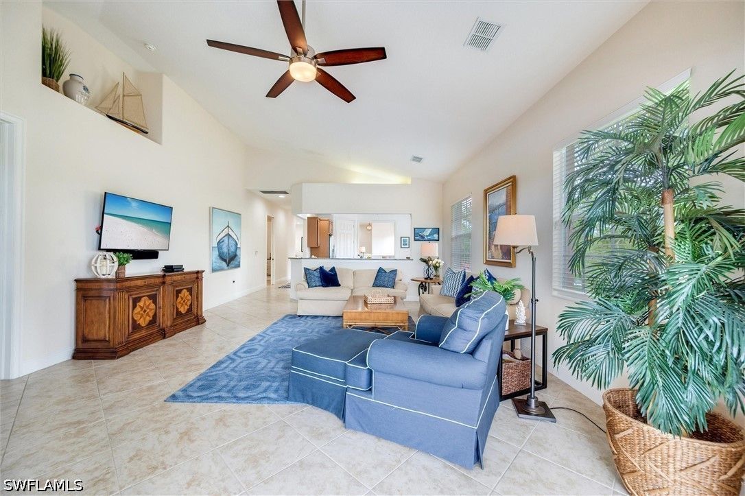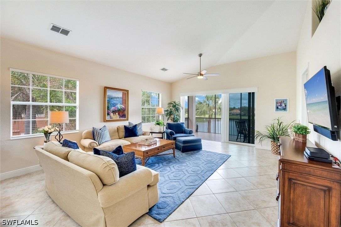 Experience the pinnacle of Lely Resort living in this exquisitely maintained second-floor residence in Legacy at Lely Resort, where the generous volume of a single-family home meets the effortless convenience of a condominium. Spanning nearly 2,700 square feet, the interior is defined by soaring vaulted ceilings and an abundance of natural light that creates an immediate sense of upscale luxury. The intelligent split-bedroom floor plan offers three bedrooms and three full baths, anchored by a versatile den with pocket doors that serves as the perfect sanctuary for a home office or a private guest retreat. The heart of the home is a stylish kitchen that balances function and elegance with granite countertops, shaker-style cabinetry, a central island, and a full suite of stainless-steel appliances. Adjacent to the living areas, the master suite provides a serene escape featuring dual closets and a spa-like bathroom complete with a soaking tub, a walk-in glass shower, and a private skylight. Total peace of mind is ensured by impact-resistant windows throughout and a substantial two-car attached garage. Outside, the screened lanai invites you to relax against a backdrop of tranquil eastern lake views and the morning sun. Ownership grants immediate access to the prestigious Lely Life through membership at the award-winning Players Club and Spa. This world-class facility features tropical walk-in pools, with aa 22-foot waterfall, 13 tennis courts with professional staff, pickleball courts and 6 bocce courts. Whether you are enjoying full-service dining at the indoor-outdoor bar, training at the fitness center, or visiting the Bark Park with your four-legged family members, the amenities are unmatched. With three championship golf courses nearby and a reputation for having the happiest residents in Naples, this residence is your invitation to vacation year-round. Live, Laugh and Love the Lely Life and say yes to the life you deserve at Lely Resort!