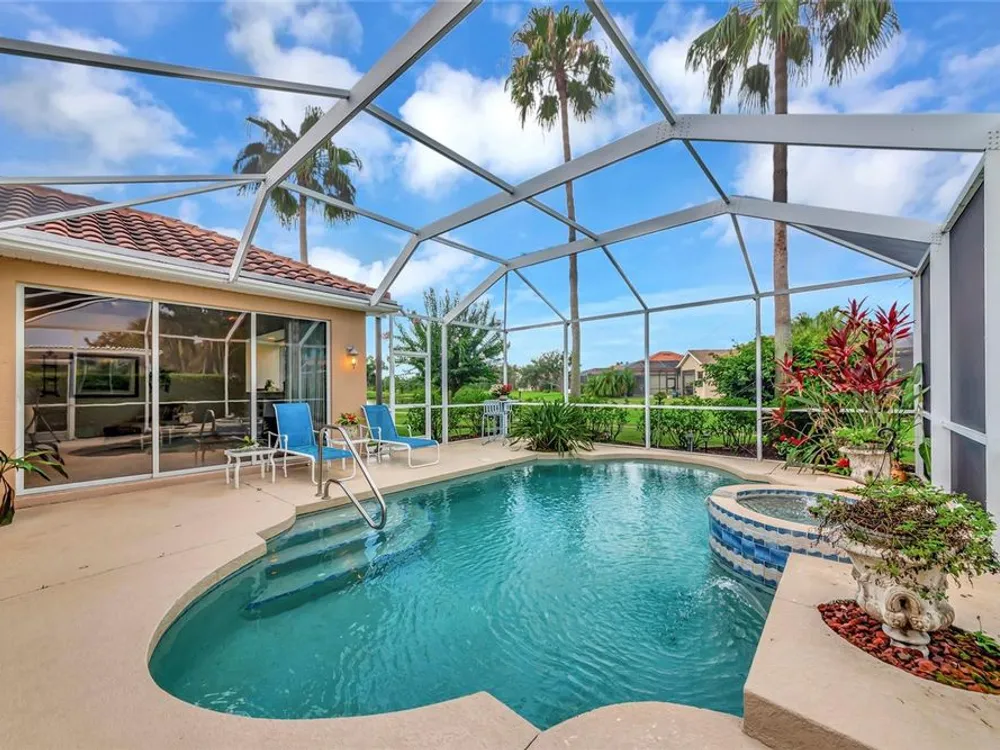Welcome to the beautiful Tara Preserve. This remarkable residence boasts 2544 square feet of thoughtfully crafted living space, ensuring you will never feel confined. You enter the home through a foyer with high ceilings, featuring the added elegance of a beautiful mirrored wall. The separate dining area includes a built-in buffet and another mirrored wall, allowing for either a formal or casual dining experience, depending on the owner's preference. The great room encompasses a spacious living area that integrates the kitchen, family room, and breakfast nook, which is adorned with a lovely bay window that overlooks the lanai and pool. Built-in cabinets and shelves provide additional storage flanking the front window. Unlike many homes, this property includes a second living room that can serve as an office, reading room, or game room. There are four bedrooms, with the fourth bedroom located in the second-floor loft currently utilized as a man cave, office, and computer room by the current owners. This space also serves as an excellent retreat for older grandchildren or guests, offering them a private area. Step outside to enjoy a refreshing dip in your heated pool, perfect for year-round enjoyment in Florida's sunny climate. Shopping and dining options are conveniently located at the end of Tara Blvd, just minutes away from the premium shopping and dining at University Town Center, Benderson Rowing, Lakewood Ranch Main Street, and a short drive to Anna Maria Island or Sarasota Beaches and Sarasota airport. The reasonable homeowners association fees cover amenities such as a community pool, tennis courts, pickleball courts, a community meeting room, basic cable, internet, and more. Additional features include a NEWER TILE ROOF APPROX 10 years old, HVAC NEW IN 2018,NEWER POOL PUMP & SALT CELL, & an energy-efficient tankless water heater, and a sprinkler system. (Membership to Tara Golf & CC is NOT mandatory, but buyers have the option to join for an additional fee.) The property is conveniently located near Tara Elementary School and Braden River High School. ALL THE ROOMS ON THE FIRST FLOOR EXCEPT ... the 4th bedroom/ bonus room.The first floor features volume ceilings in the living room & the foyer and a vaulted ceiling in the kitchen & the family room area.)