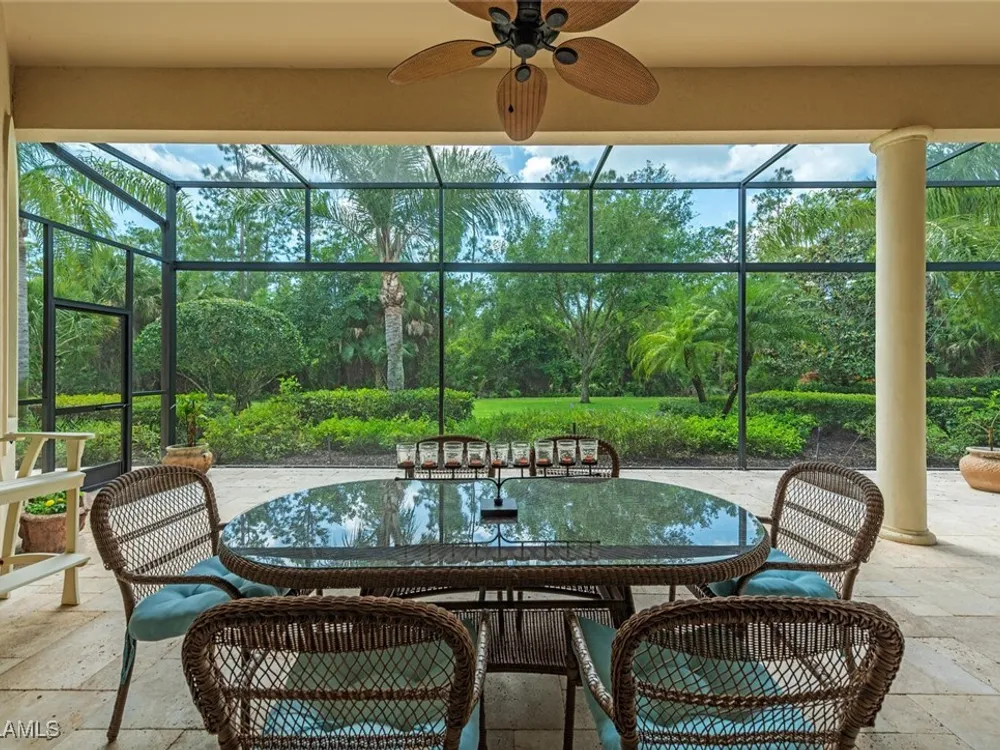 Are you looking for total privacy and tranquility then this exquisite Courtyard Home in "LAKOYA" at Lely Resort is your newfound paradise. The "Pinehurst II" floorplan features 3BR plus a DEN, 2.5 BA PLUS a CABANA with 1BR and 1BA. Beautiful decorated with personal attention to every detail by the owner sets this home apart. Offered turnkey furnished. Enter the courtyard, you are presented with the stunning, south-facing, heated pool and spa (gas). Ashlar-Stone on the lanai and throughout the house, except in the Den and all bedrooms which boast high-grade hardwood floors. Plantation shutters, crown molding, granite countertops, 3-car garage and many more upgrades. Enjoy the sunset from the extended lanai overlooking the preserve and watch the wildlife.
