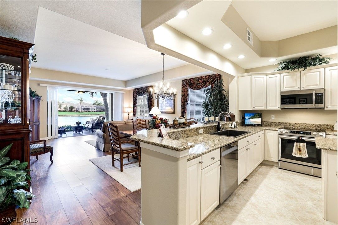 Enjoy effortless Florida living in this impeccably maintained first-floor coach home in Legacy at Lely Resort. Offering 2 bedrooms + den, 2 full baths, and serene lake views, this light-filled residence is ideally located just steps from the Legacy community clubhouse, pool, and spa. Desirable southern exposure fills the home with natural light throughout the day. The private screened lanai features a picture-frame enclosure, maximizing unobstructed water views and creating seamless indoor-outdoor living — perfect for relaxing or entertaining. The open-concept great room floor plan flows comfortably between the living, dining, and kitchen areas. A split-bedroom layout provides privacy for guests, while the versatile den functions well as a home office, media room, or additional sleeping space. Interior features include luxury vinyl plank and tile flooring, granite countertops, custom window coverings, updated ceiling fans, and an attached garage with extra storage. Ownership includes membership to The Players Club & Spa, offering resort-style amenities including tennis, pickleball, bocce, multiple pools, fitness center, spa services, dining, and social activities. Golf options include two public courses within Lely Resort, with private membership opportunities at The Classics Country Club (optional and separate). Conveniently located near downtown Naples, 5th Avenue South, shopping, dining, entertainment, Gulf beaches, and Marco Island. This home offers comfort, convenience, and an exceptional Southwest Florida lifestyle perfect for a seasonal or permanent resident.
