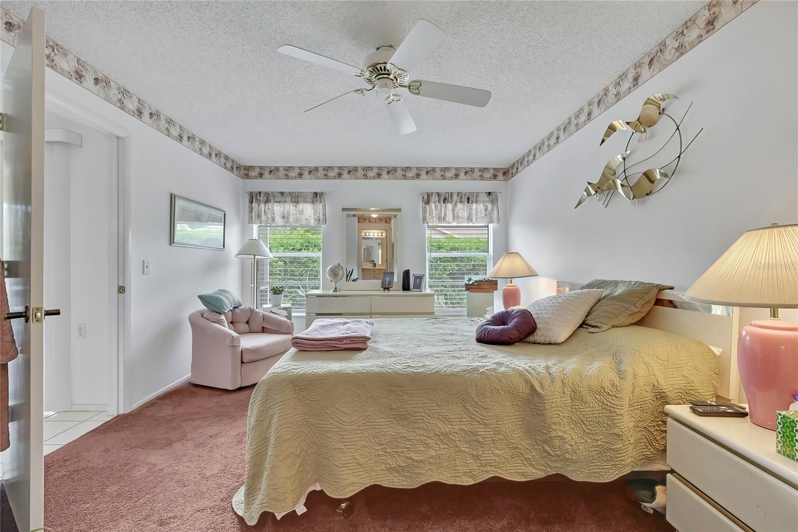 - Ceiling Fan(s), Eat-in Kitchen, High Ceilings, Main Level Primary, Thermostat, Window Treatments