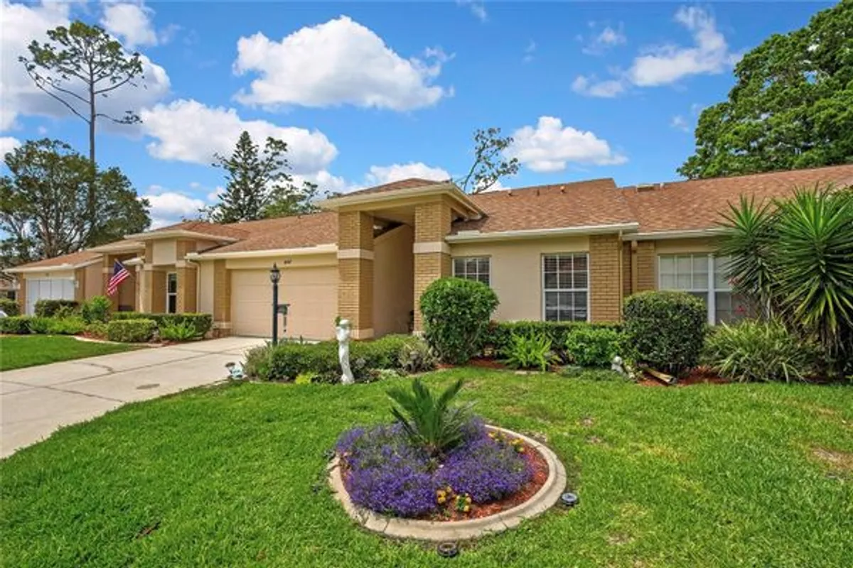 Welcome to Timber Greens! This charming 2-bedroom, 2-bath, 2-car garage villa is ideally located at the end of a cul-de-sac in this sought-after 55+ golf cart-friendly community. Inside, you’ll find a split-bedroom floor plan, high vaulted ceilings, and ceramic tile flooring in the great room, kitchen, nook, laundry room, porch, and both bathrooms. A screened porch provides the perfect place for morning coffee or the opportunity to relax in the evening Enjoy being close to the clubhouse and all the wonderful Timber Greens amenities, including an 18-hole golf course, community pool, tennis courts, pickleball courts, restaurant, and a wide variety of social activities and events. This is Florida living at its best in a vibrant, active community. HOA fee includes 24-hour, cable TV, common area taxes, community pool, escrow reserve fund, internet, exterior maintenance, grounds maintenance, clubhouse maintenance, security.