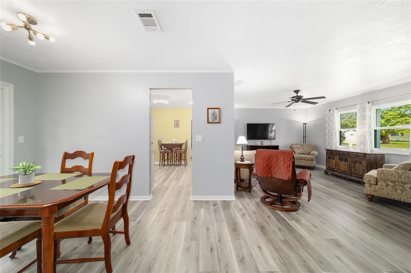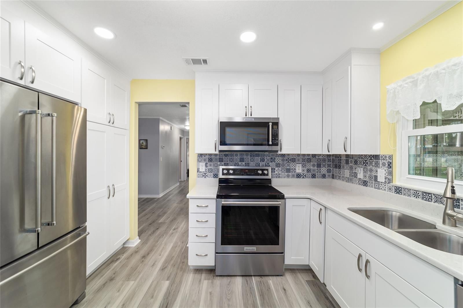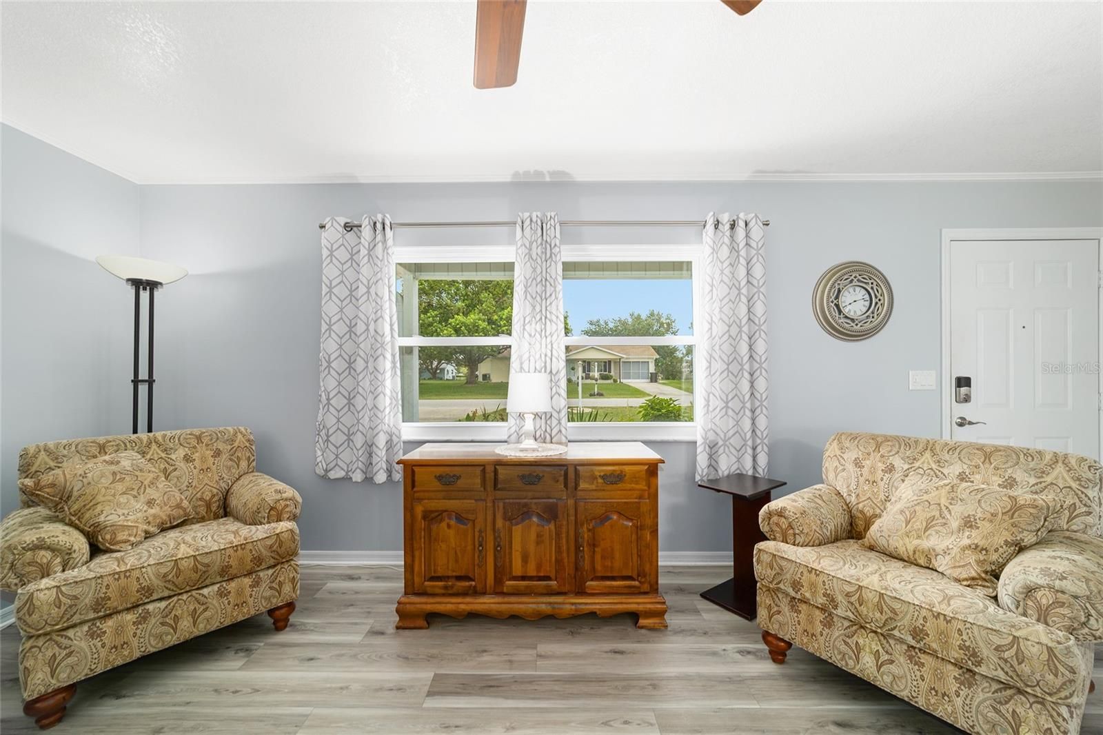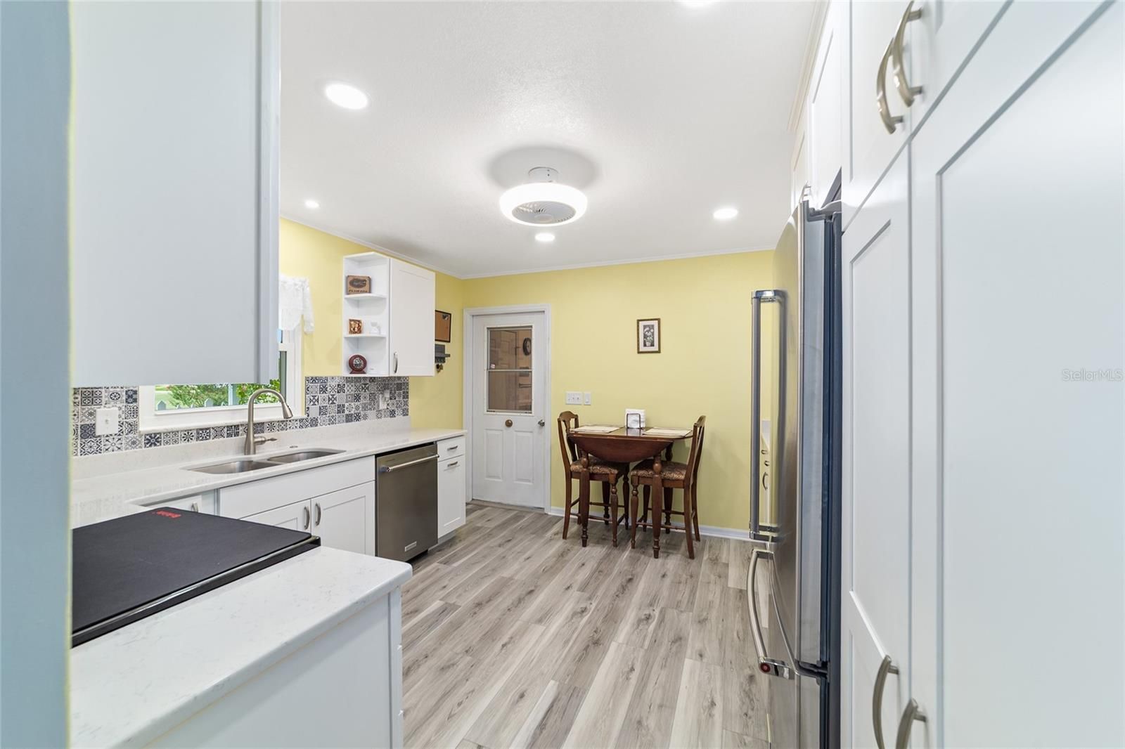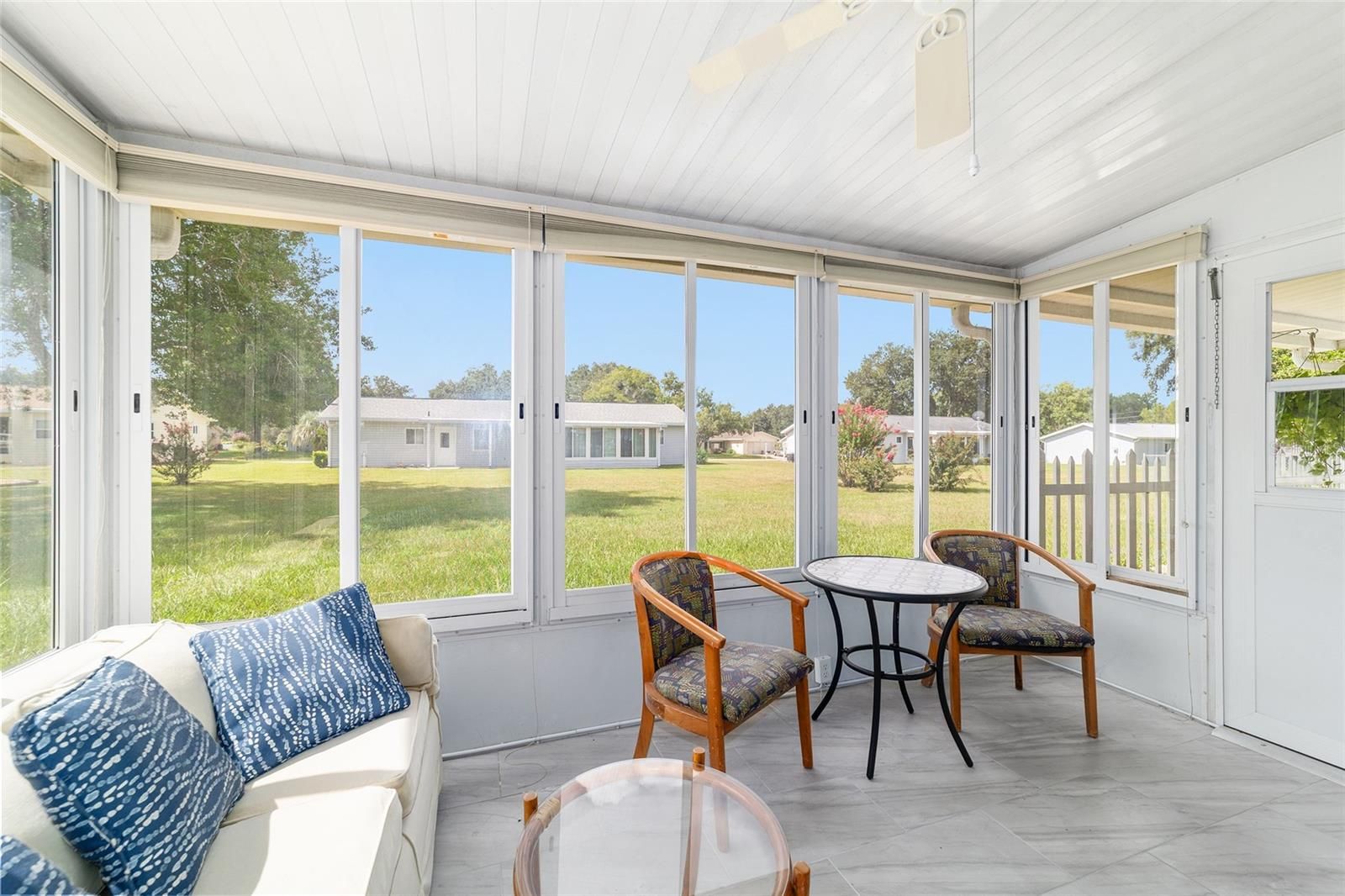 PRICE IMPROVEMENT!!! This beautifully RENOVATED 2-bedroom, 2-bathroom FULLY FURNISHED home is located in the desirable 55+ community of Spruce Creek North, just off SR 200 in Ocala. Conveniently close to dining, shopping, I-75, and top medical facilities, this home offers both comfort and accessibility. Inside, you'll find a UPDATED KITCHEN featuring SHAKER-STYLE CABINETS, QUARTZ COUNTERTOPS, HIGH END STAINLESS APPLIANCES (KITCHENAIDE) and a stylish TILE-BACKSPLASH, along with LUXURY PLANK VINYL FLOORING throughout the main living areas. BOTH BATHROOMS have been UPDATED with NEW VANITIES and QUARTZ counters. The enclosed lanai has been finished with new porcelain tile, providing a relaxing space to enjoy the outdoors. Major updates include PLUMBING, ROOF in 2021, WINDOWS in 2022, A/C UNIT in 2023, and an upgraded ELECTRICAL PANEL in 2025. The home is move-in ready and comes fully furnished. The affordable HOA fee includes access to the clubhouse, trash pickup, basic cable, common area maintenance, and security patrol. This is a fantastic opportunity to own a beautifully updated home in a welcoming and active community.