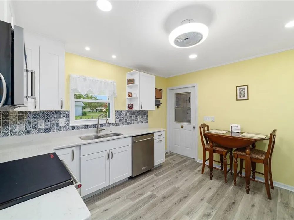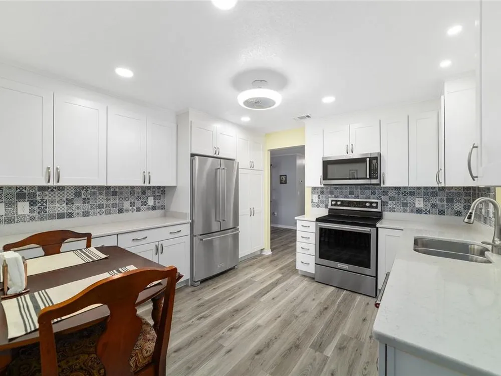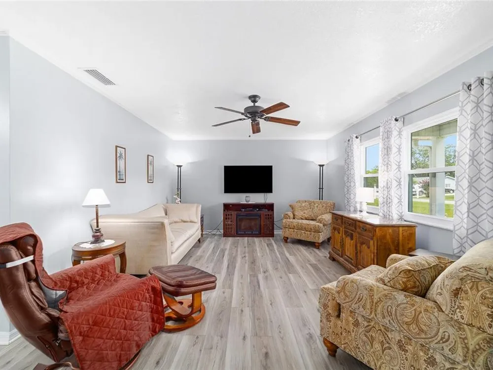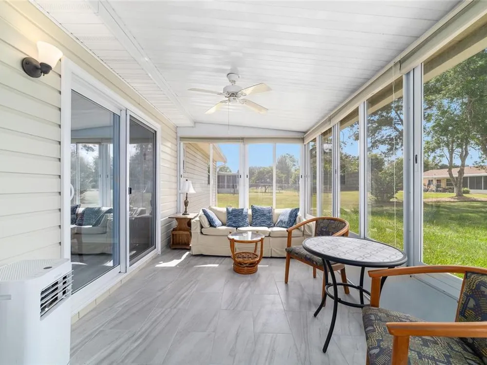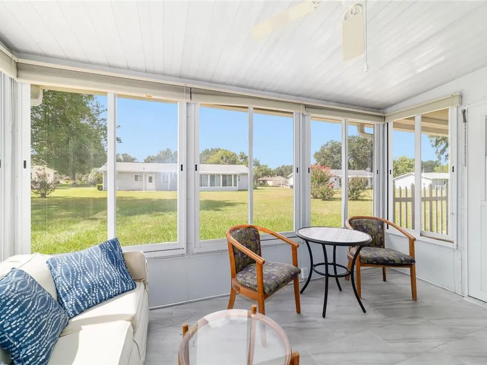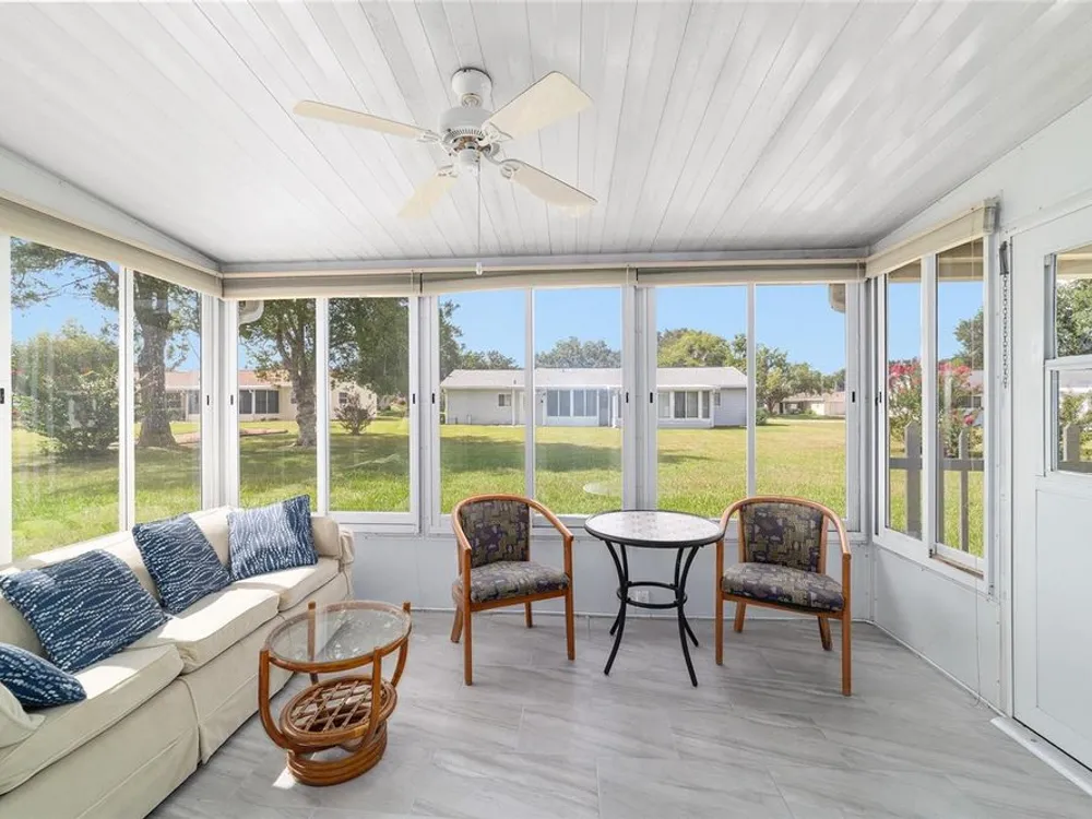 DUE TO NO FAULT OF THE SELLER THIS HOME IS BACK ON THE MARKET. This beautifully renovated 2-bedroom, 2-bathroom FULLY FURNISHED home is located in the desirable 55+ community of Spruce Creek North, just off SR 200 in Ocala. Conveniently close to dining, shopping, I-75, and top medical facilities, this home offers both comfort and accessibility. Inside, you'll find a UPDATED KITCHEN featuring SHAKER-STYLE CABINETS, QUARTZ COUNTERTOPS, HIGH END STAINLESS APPLIANCES (KITCHENAIDE) and a stylish TILE-BACKSPLASH, along with LUXURY PLANK VINYL FLOORING throughout the main living areas. BOTH BATHROOMS have been UPDATED with NEW VANITIES and QUARTZ counters. The enclosed lanai has been finished with new porcelain tile, providing a relaxing space to enjoy the outdoors. Major updates include a Updated PLUMBING, new ROOF in 2021, new WINDOWS in 2022, a new A/C UNIT in 2023, and an upgraded ELECTRICAL PANEL in 2025. The home is move-in ready and comes fully furnished. The affordable HOA fee includes access to the clubhouse, trash pickup, basic cable, common area maintenance, and security patrol. This is a fantastic opportunity to own a beautifully updated home in a welcoming and active community.