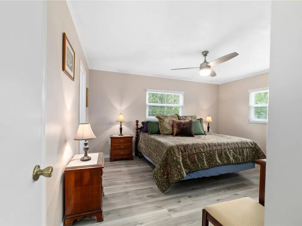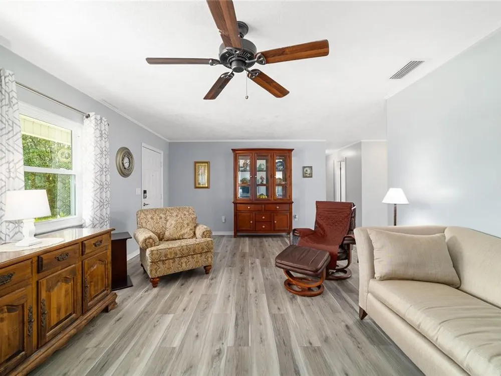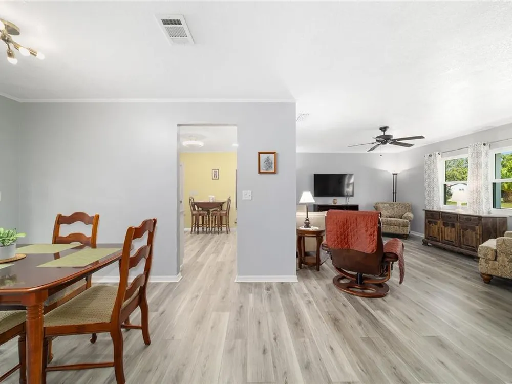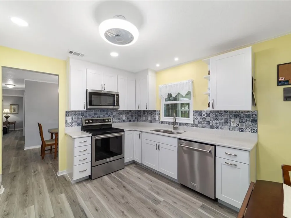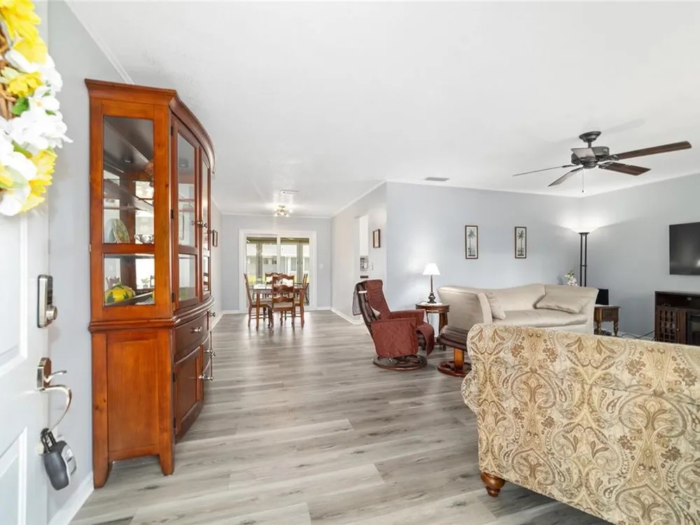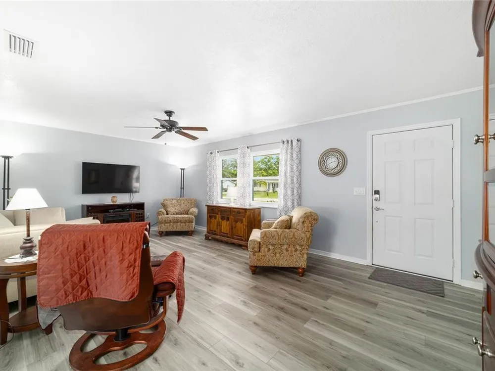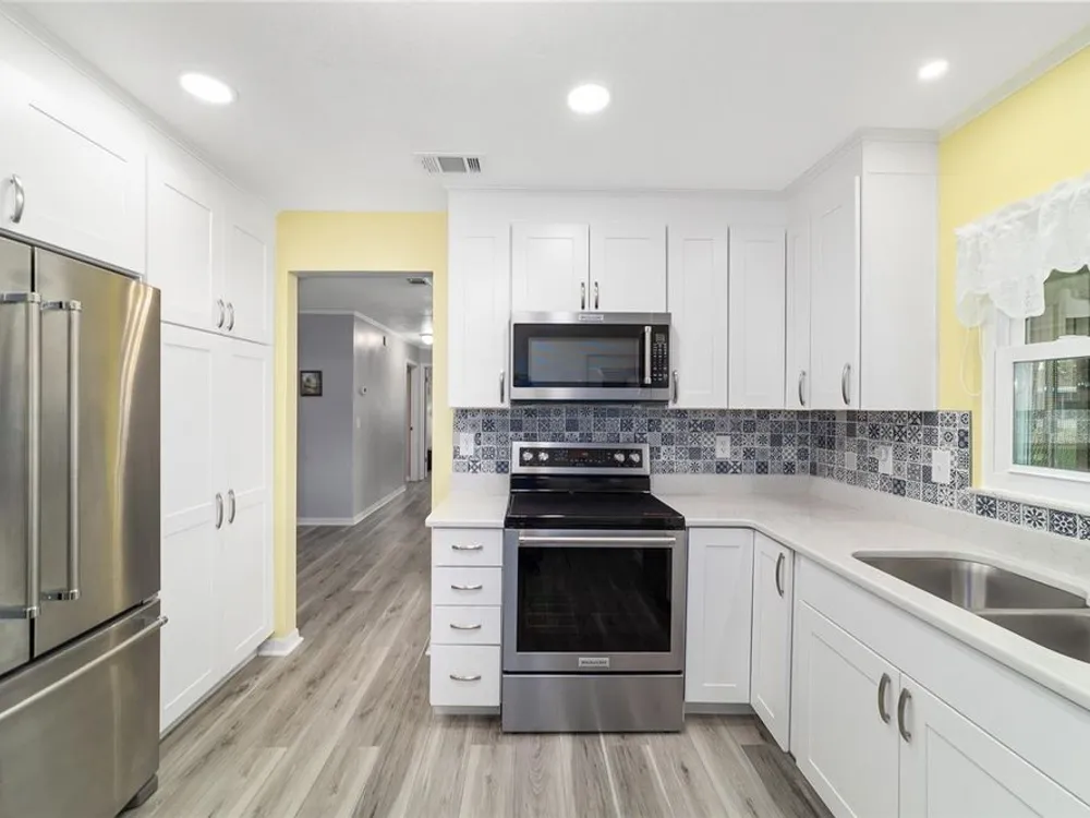 DUE TO NO FAULT OF THE SELLER THIS HOME IS BACK ON THE MARKET. This beautifully renovated 2-bedroom, 2-bathroom FULLY FURNISHED home is located in the desirable 55+ community of Spruce Creek North, just off SR 200 in Ocala. Conveniently close to dining, shopping, I-75, and top medical facilities, this home offers both comfort and accessibility. Inside, you'll find a UPDATED KITCHEN featuring SHAKER-STYLE CABINETS, QUARTZ COUNTERTOPS, HIGH END STAINLESS APPLIANCES (KITCHENAIDE) and a stylish TILE-BACKSPLASH, along with LUXURY PLANK VINYL FLOORING throughout the main living areas. BOTH BATHROOMS have been UPDATED with NEW VANITIES and QUARTZ counters. The enclosed lanai has been finished with new porcelain tile, providing a relaxing space to enjoy the outdoors. Major updates include a Updated PLUMBING, new ROOF in 2021, new WINDOWS in 2022, a new A/C UNIT in 2023, and an upgraded ELECTRICAL PANEL in 2025. The home is move-in ready and comes fully furnished. The affordable HOA fee includes access to the clubhouse, trash pickup, basic cable, common area maintenance, and security patrol. This is a fantastic opportunity to own a beautifully updated home in a welcoming and active community.