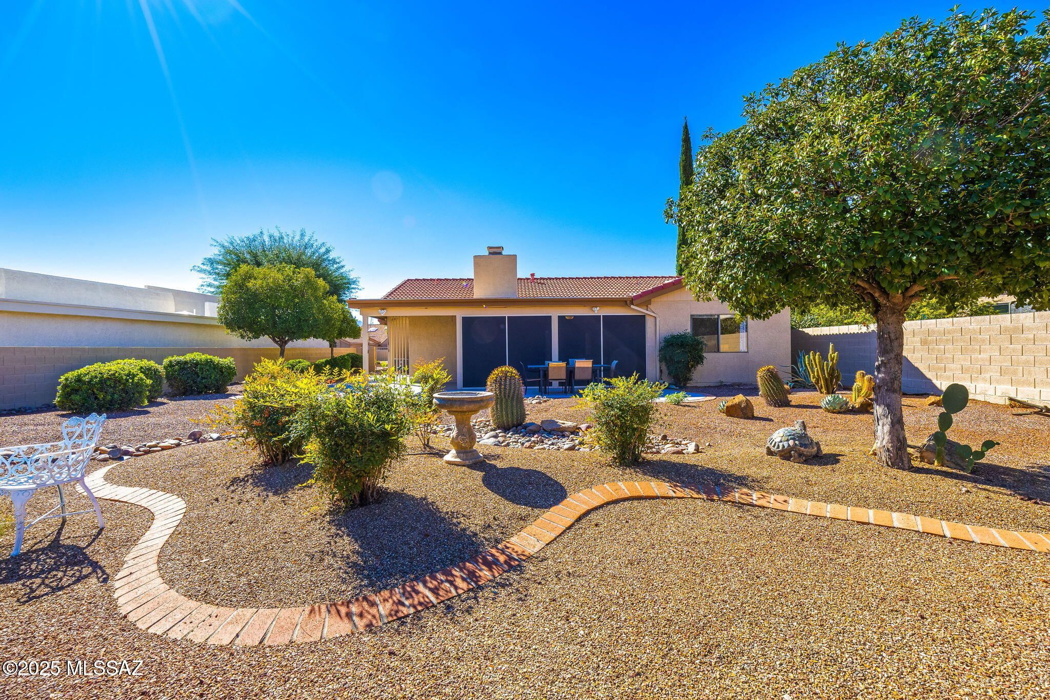 Enjoy the convenience and lifestyle offered by a 1/4 mile walk to the amenities of Saddlebrooke One. With golf, racquet sports, swimming pools, fitness, dining and other amenities at your fingertips, it's easy to be out and about! This home offers residents a low maintenance full time experience or would work well for a lock and leave seasonal property. Greeted by a freshly painted exterior and entry courtyard, the home exudes charm. Inside, this 1,570 sq ft plan includes 2 bedrooms, 2 bathrooms and great flow. Remodeled in 2019, the home showcases newer flooring, updated systems (HVAC & water heater), a tiled shower, and a refreshed kitchen. The large 1/4 acre lot offers excellent privacy and space for pets or future enhancements.