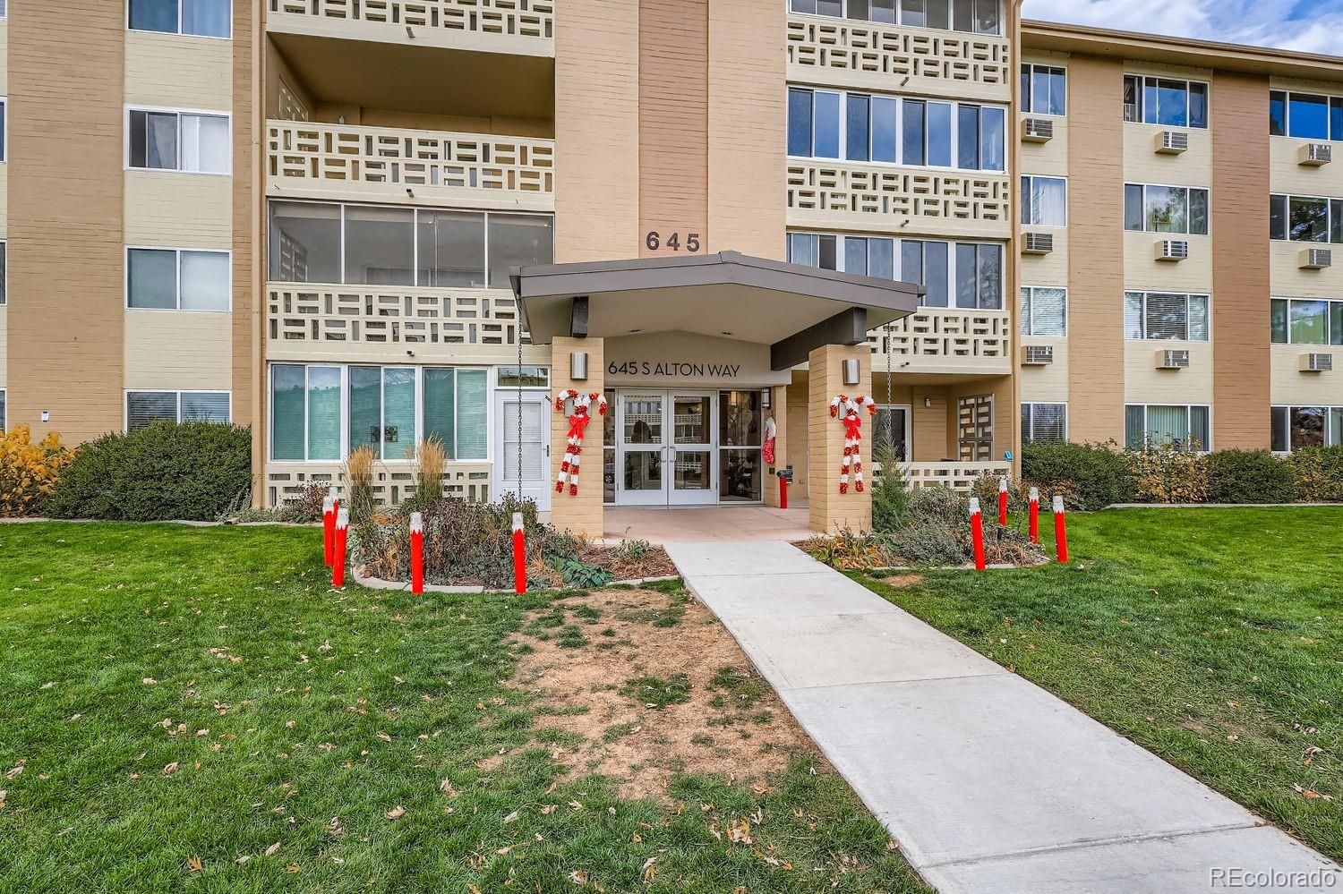 Welcome to 645 S Alton Way, Unit 12-A, a desirable first-floor end unit in the highly sought-after Windsor Gardens Age 55 & Over community. This well-maintained condo offers a bright and comfortable living space with a large glass-enclosed Lanai that provides beautiful views and plenty of natural sunlight throughout the day. (Lanai is not included in MLS square footage; many units only feature a screened lanai.) Inside, you’ll find brand-new carpet, two new ceiling fans, a new garbage disposal, and updated kitchen, Under Cabinet Lighting and bathroom finishes. Step outside and enjoy direct access to the Greenbelt and High Line Canal Trail, located just beyond the building — perfect for walking or biking. Windsor Gardens is known for its wonderful amenities, including both indoor and outdoor pools, a par-3 Golf Course, a Clubhouse with ongoing community activities, and a Restaurant located in the Community Center. HOA INCLUDES Real Estate Taxes & Heat, 1 Car Garage, adding to the convenience and value of ownership. This unit is priced well, move-in ready, and in excellent condition. Call George or Norm today to schedule your private viewing of 645 S Alton Way, Unit 12-A