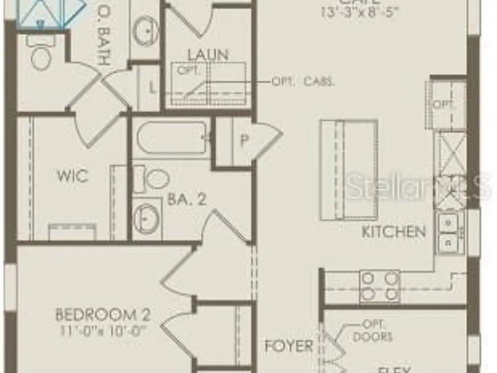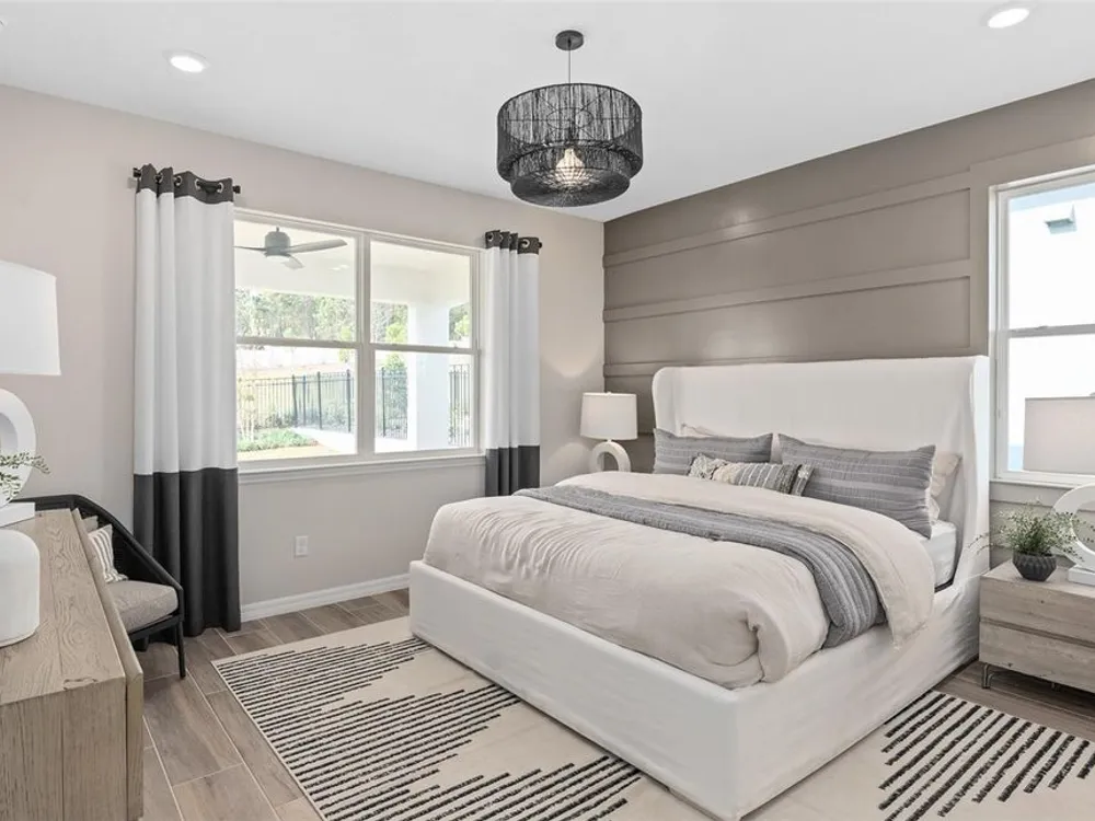 Del Webb Sunbridge is a gated 55+ active adult natural gas community offering new construction single family and villa homes with a low-maintenance lifestyle – and a Central Florida location in the center of it all. Del Webb Sunbridge offers an abundance of resort-style amenities with social events and activities centered in the 27,000-square foot clubhouse and planned by a full-time Lifestyle Director. With a zero-entry pool with lap lanes, resistance pool, poolside hammocks, and heated spa, sports courts, a movement studio, walking trails and more. Meet new friends at a resident club, take a painting class at one of the many art studios, attend a concert or show at the amphitheater, grab a bite at the on-site tavern & grille, or chat at the fire pits and grille pavilion. Get spoiled at Del Webb Sunbridge - after all, this is your time! Your home's exterior and yard maintenance are included, and fiber network provides up to gigabit internet speed. Del Webb Sunbridge’s resort amenities, sports courts, and Lifestyle Director with nearby Lake Nona truly make this the ideal neighborhood and a perfect location to call home. The one-story Contour home by Del Webb features 2 bedrooms, an enclosed flex room, 2 bathrooms, a 2-car garage, and an extended covered lanai—ideal for both comfortable living and easy entertaining. As you step inside, you’re greeted by a naturally lit foyer, thanks to the glass insert in the front door, setting the tone for the rest of the home. The heart of this home is the stunning kitchen, designed for both beauty and function. It’s appointed with Soft-Close White Cabinetry, elegant Quartz countertops, and a decorative tile backsplash. The upgraded Whirlpool appliances—including a natural gas range and refrigerator—along with a stainless-steel single-bowl sink, make this space a chef's dream. Whether preparing meals or hosting guests, this kitchen inspires. The open-concept design flows seamlessly into the café and gathering room, both flooded with natural light from ample windows. A sliding glass door opens to the extended covered lanai, merging indoor and outdoor living for an inviting and relaxing experience. The owner's suite, located at the back of the home for maximum privacy, offers a true retreat. The spa-inspired en suite bath features a dual vanity with quartz countertops, an enclosed toilet, a frameless glass-enclosed shower with a built-in bench, a linen closet, and a spacious walk-in closet. At the front of the home, the secondary bedroom and bathroom are paired with the versatile flex room, providing privacy and space for guests or loved ones. The flex room can serve as a home office, hobby space, or anything that fits your lifestyle. The laundry room includes built-in cabinetry for added storage, making everyday tasks easier. Every detail of this home has been thoughtfully curated, from the matte black hardware and plumbing fixtures to the Sherwin Williams Agreeable Gray interior paint and wood-look tile flooring throughout the entire home. Don’t miss the chance to make this exceptional home yours. Schedule a tour today!