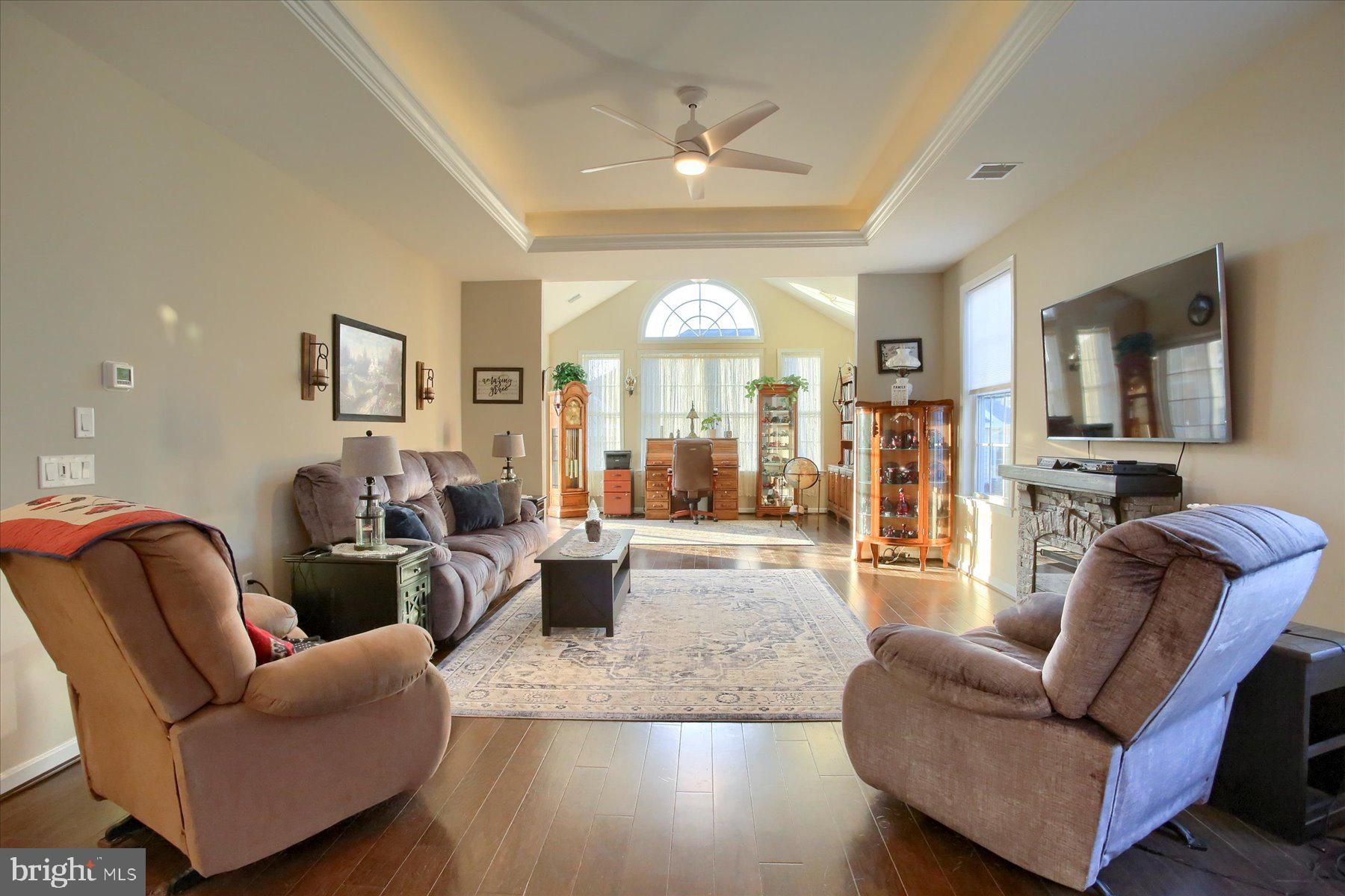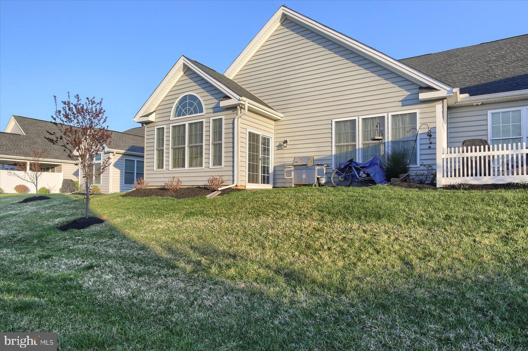 Come to Traditions of America and discover modern, low-maintenance living in this beautiful condo association home featuring an open concept living area flooded with natural light from numerous windows. The main living room is elevated by a sophisticated tray ceiling, flowing seamlessly into a bright sunroom with a dramatic cathedral ceiling. The tranquil primary bedroom also boasts a high cathedral ceiling, offering a relaxing retreat with an en suite bathroom featuring a spacious, tiled step-in shower. Move-in ready, this home offers comfort and elegant design. It's only 5 years old, 2 bedrooms and 2 baths, 2 walk-in closets, 2 good to be true? This home is worth a tour, call your agent and come take a look, you will love all the amenities Traditions has to offer. You may be able to cancel the gym membership with all this beautiful community has to offer.